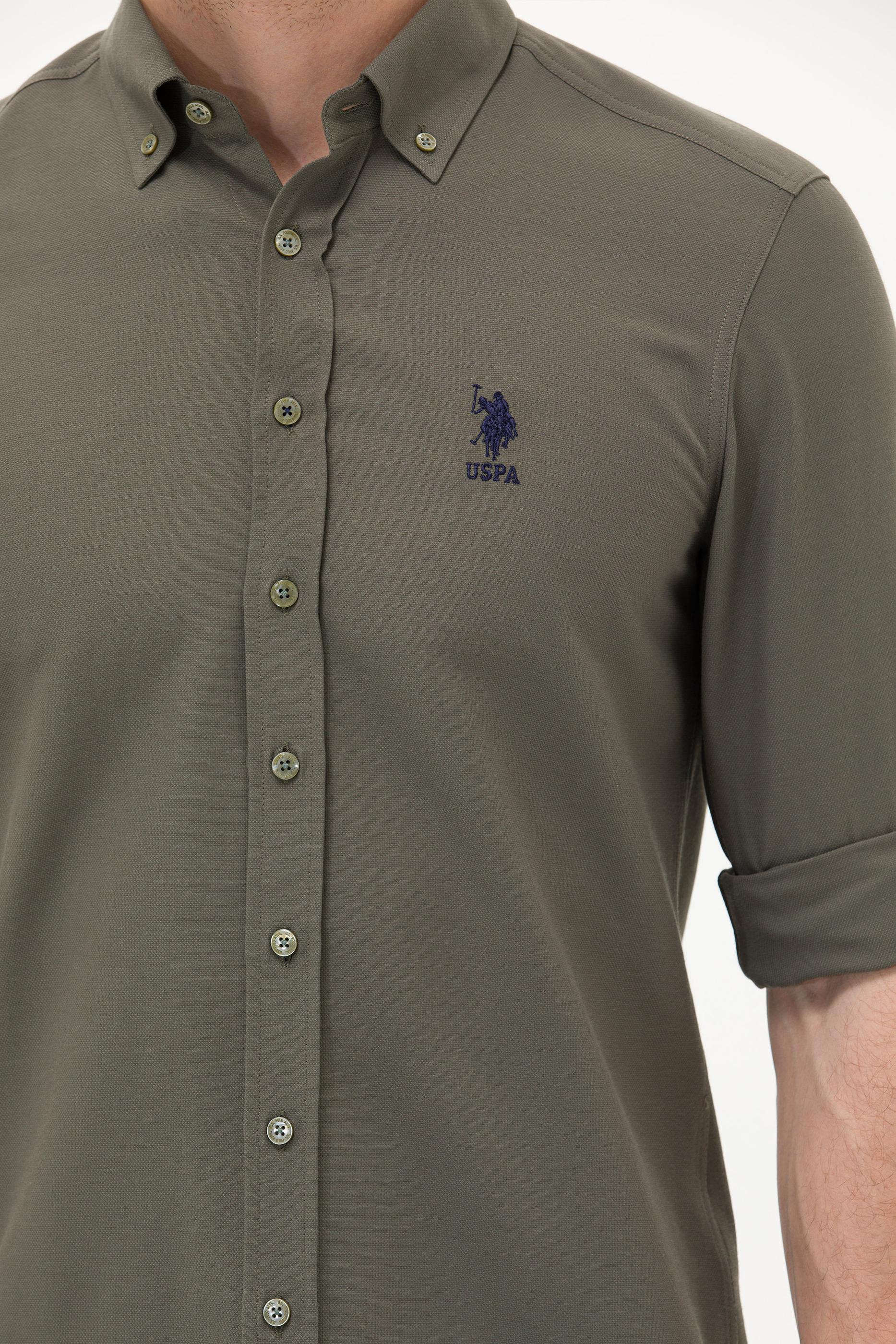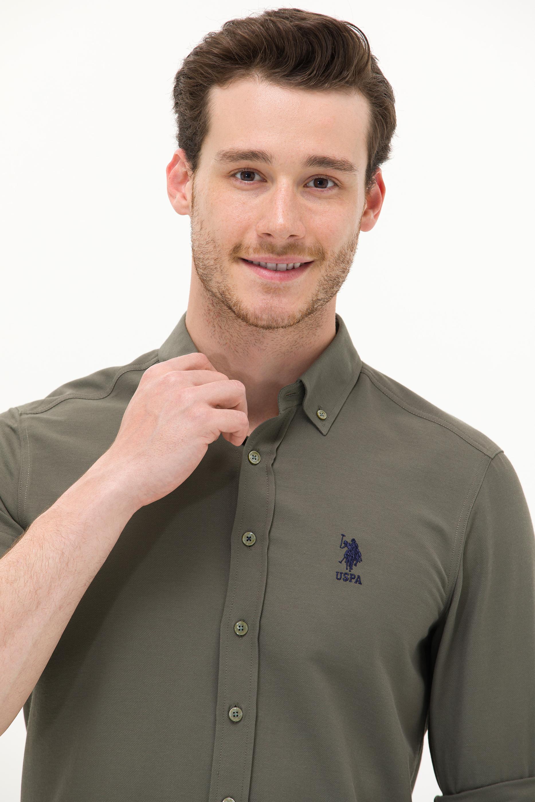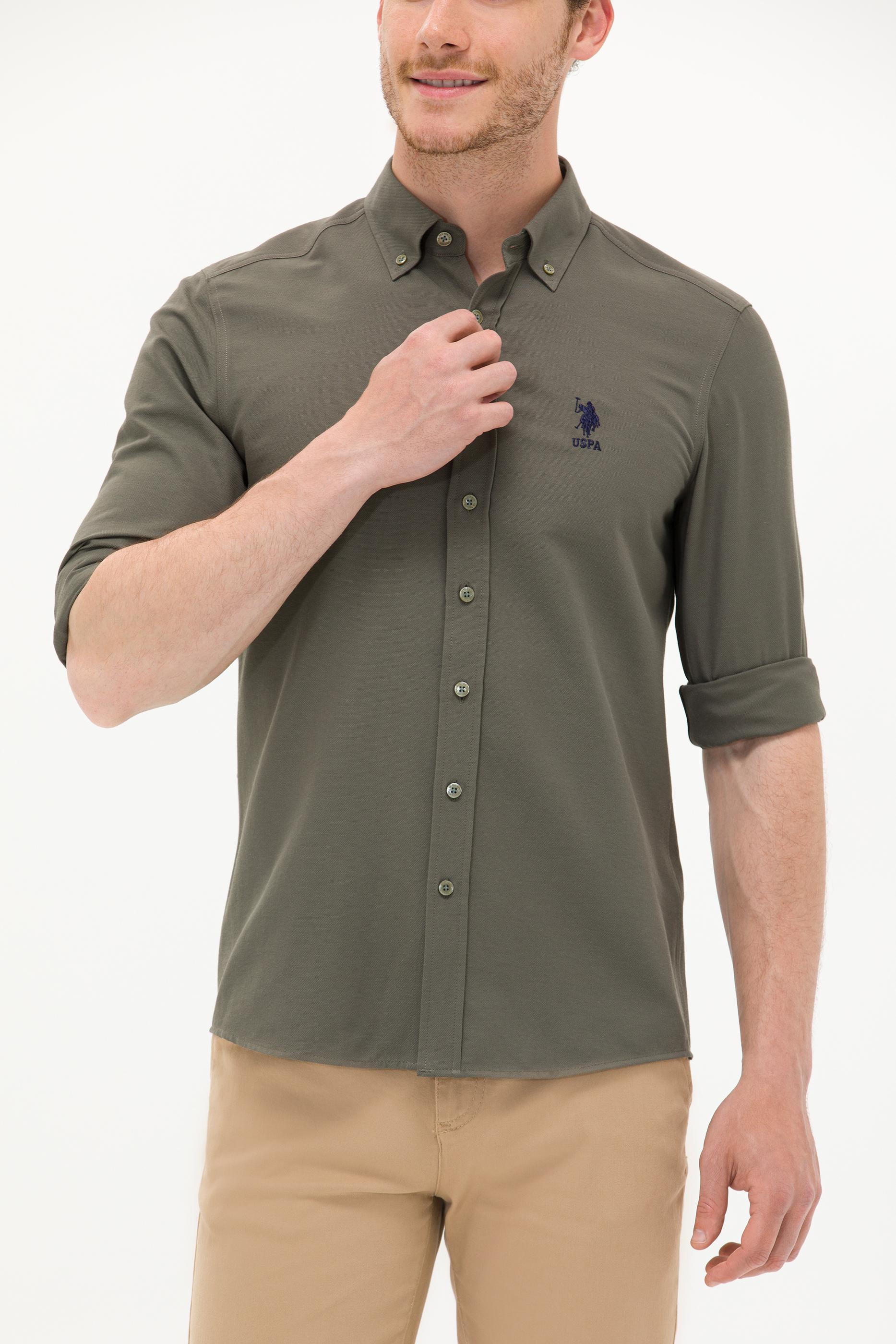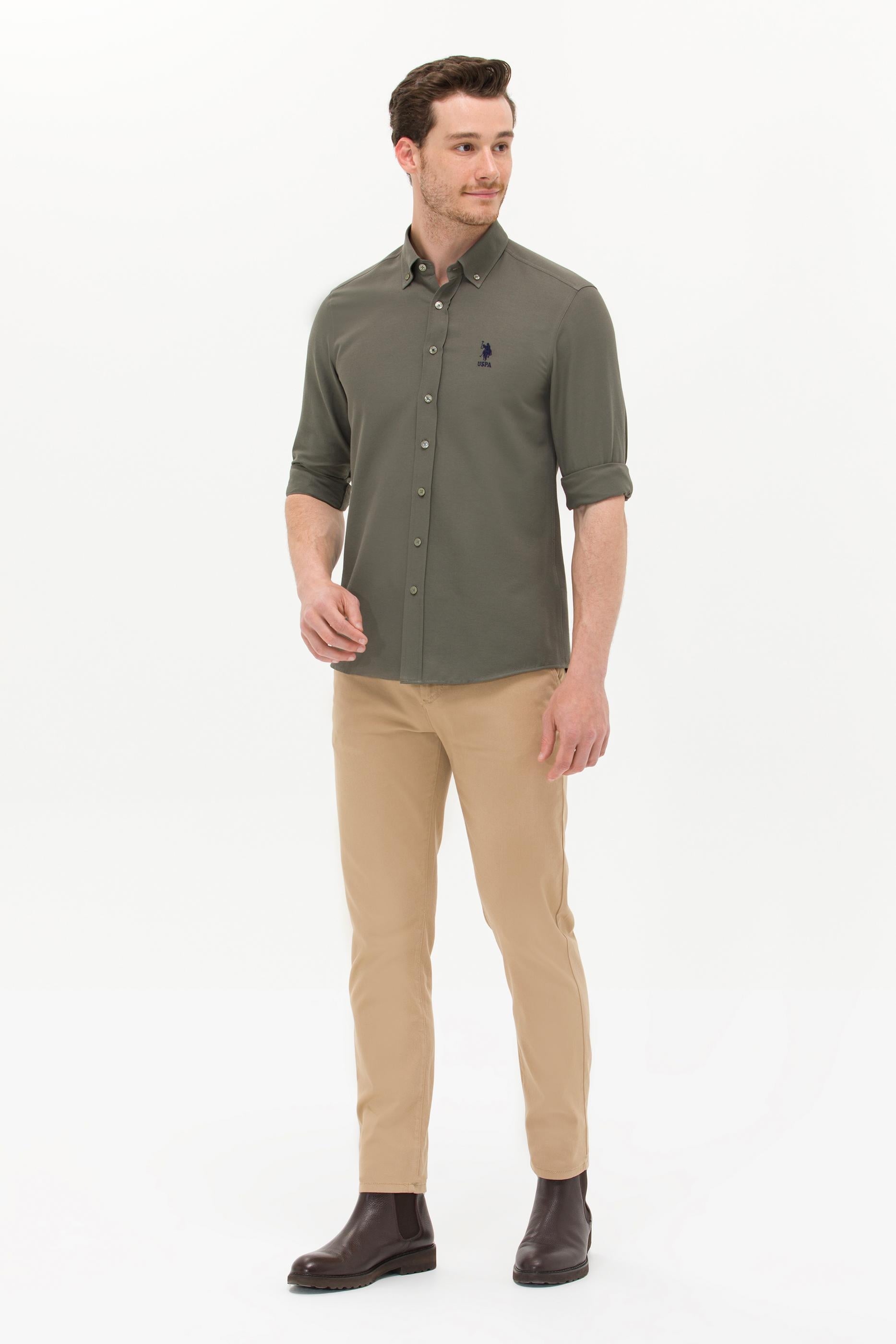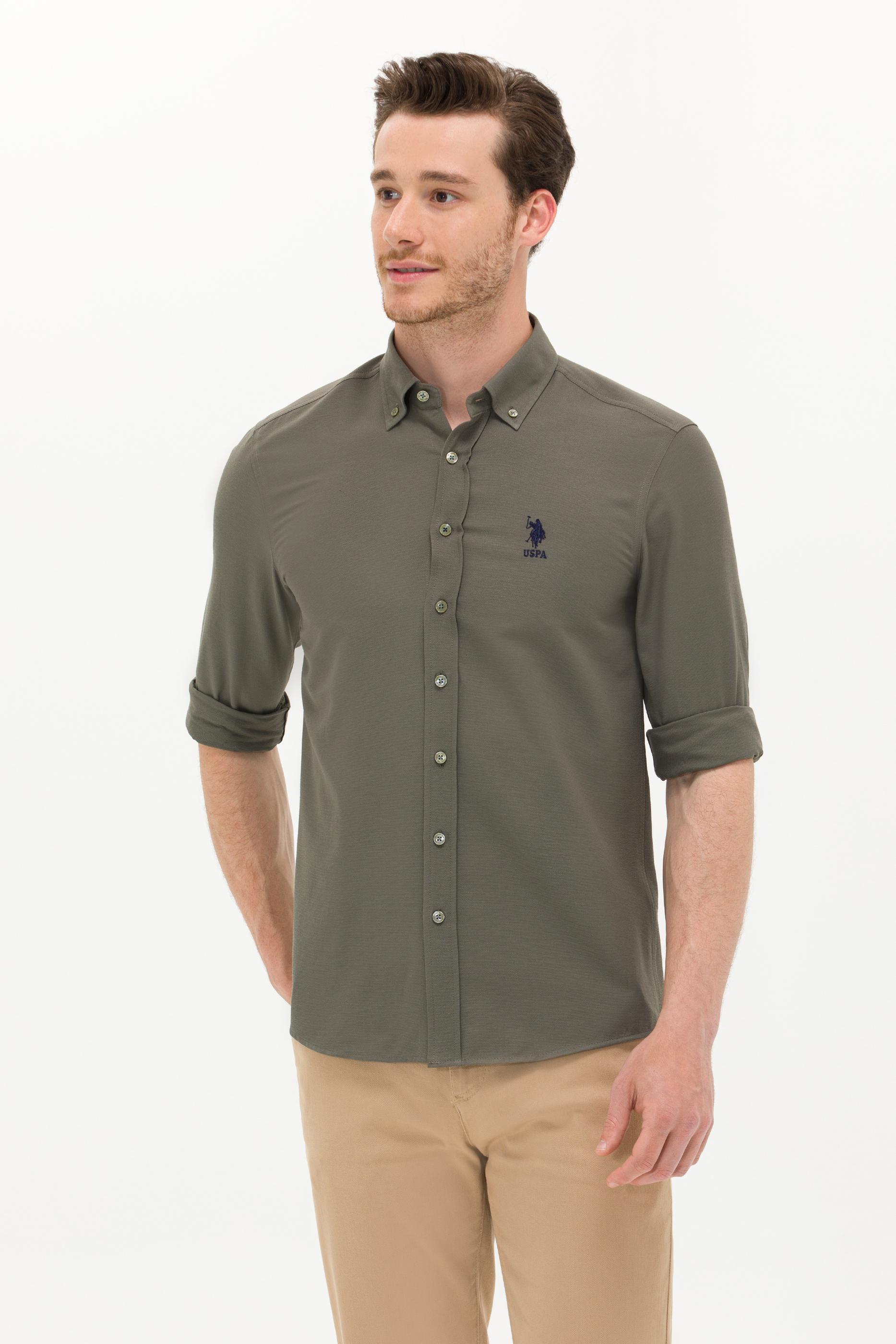 Erkek Koyu Haki Uzun Kollu Basic Gömlek