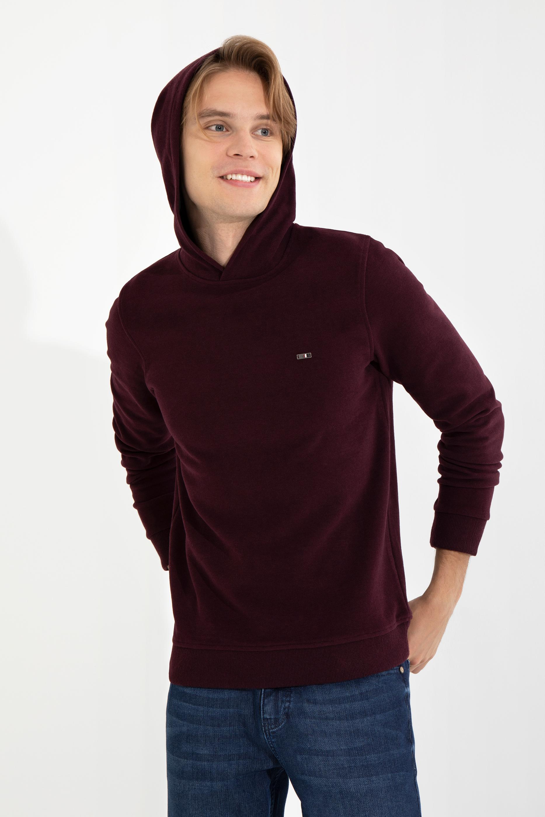 - Erkek Bordo Kapüşonlu Sweatshirt