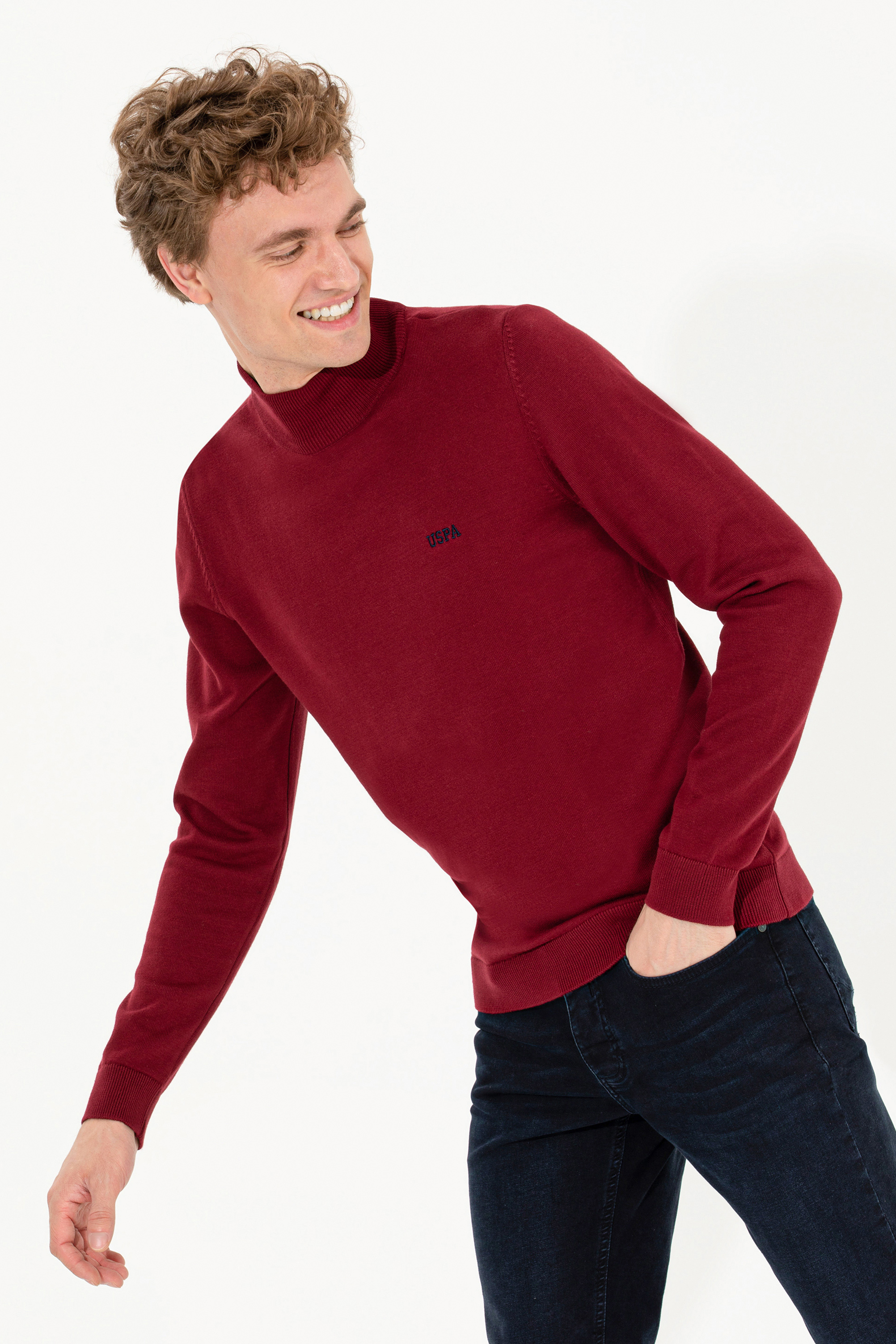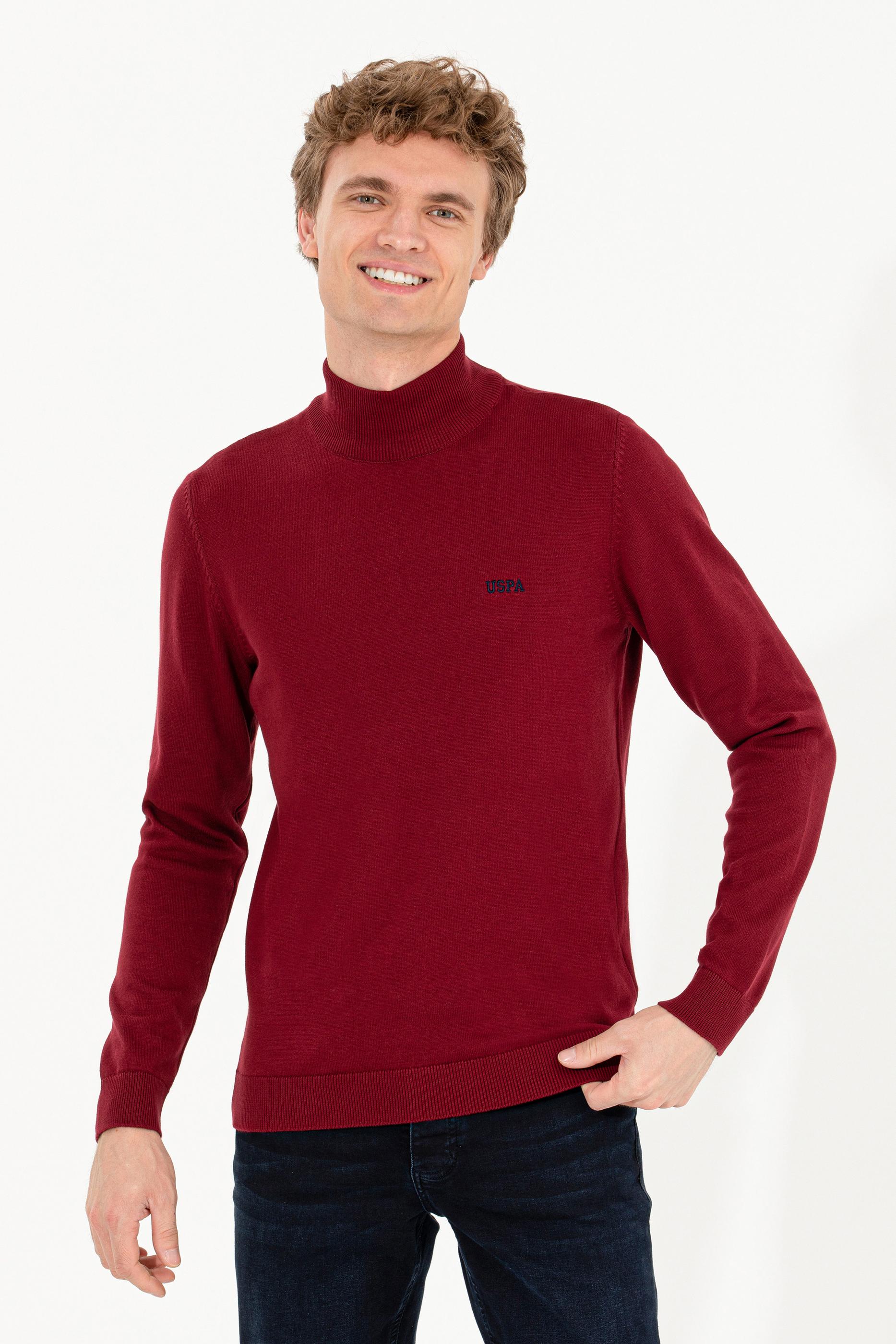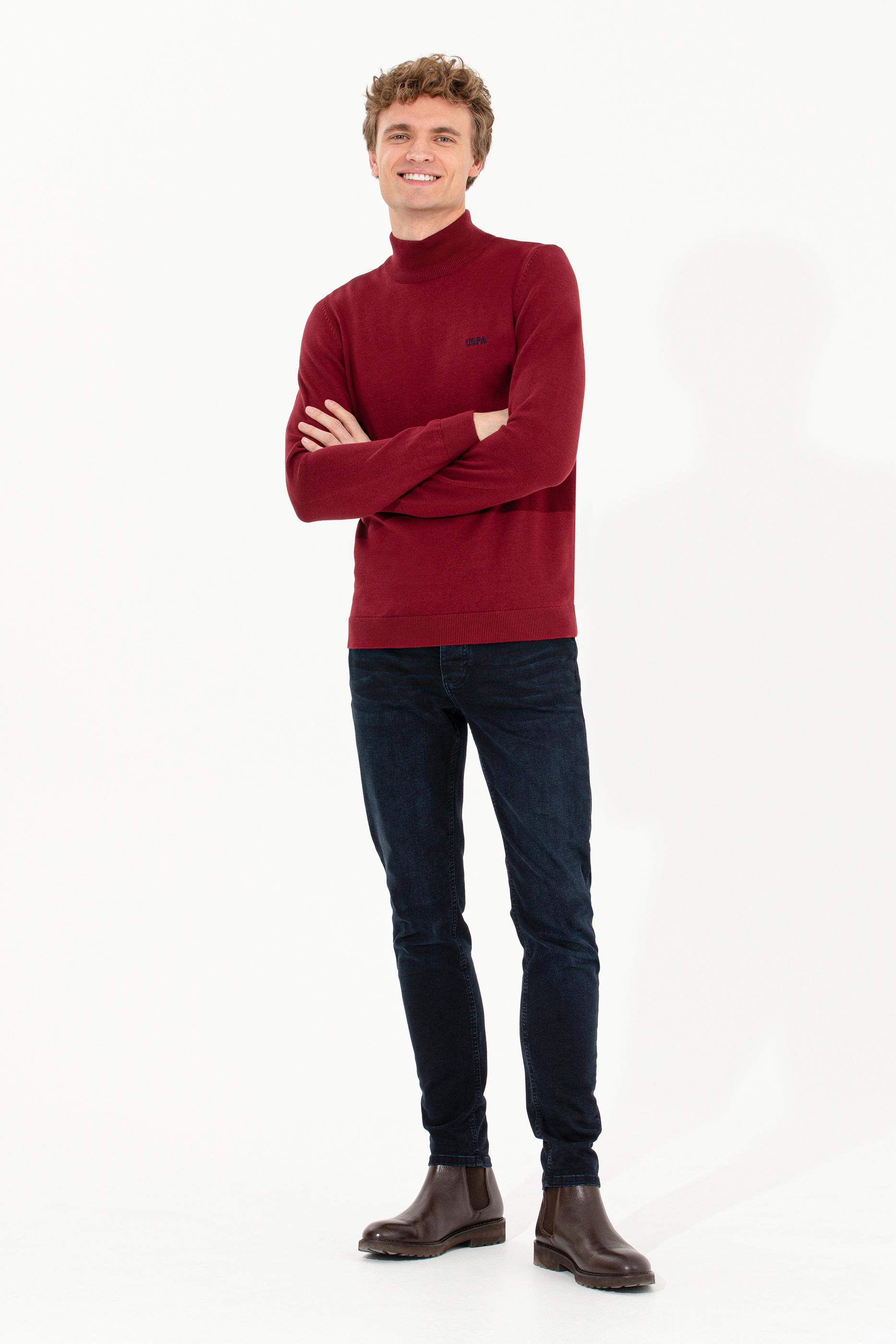 - Erkek Bordo Balıkçı Yaka Basic Triko Kazak