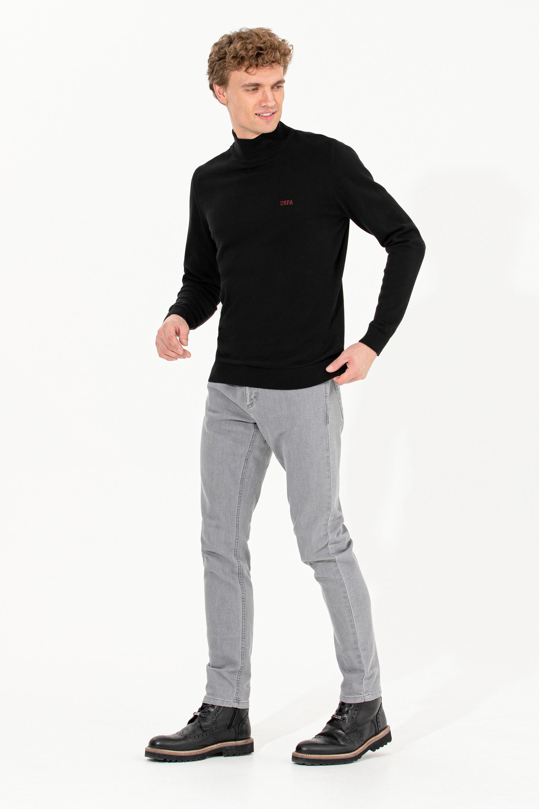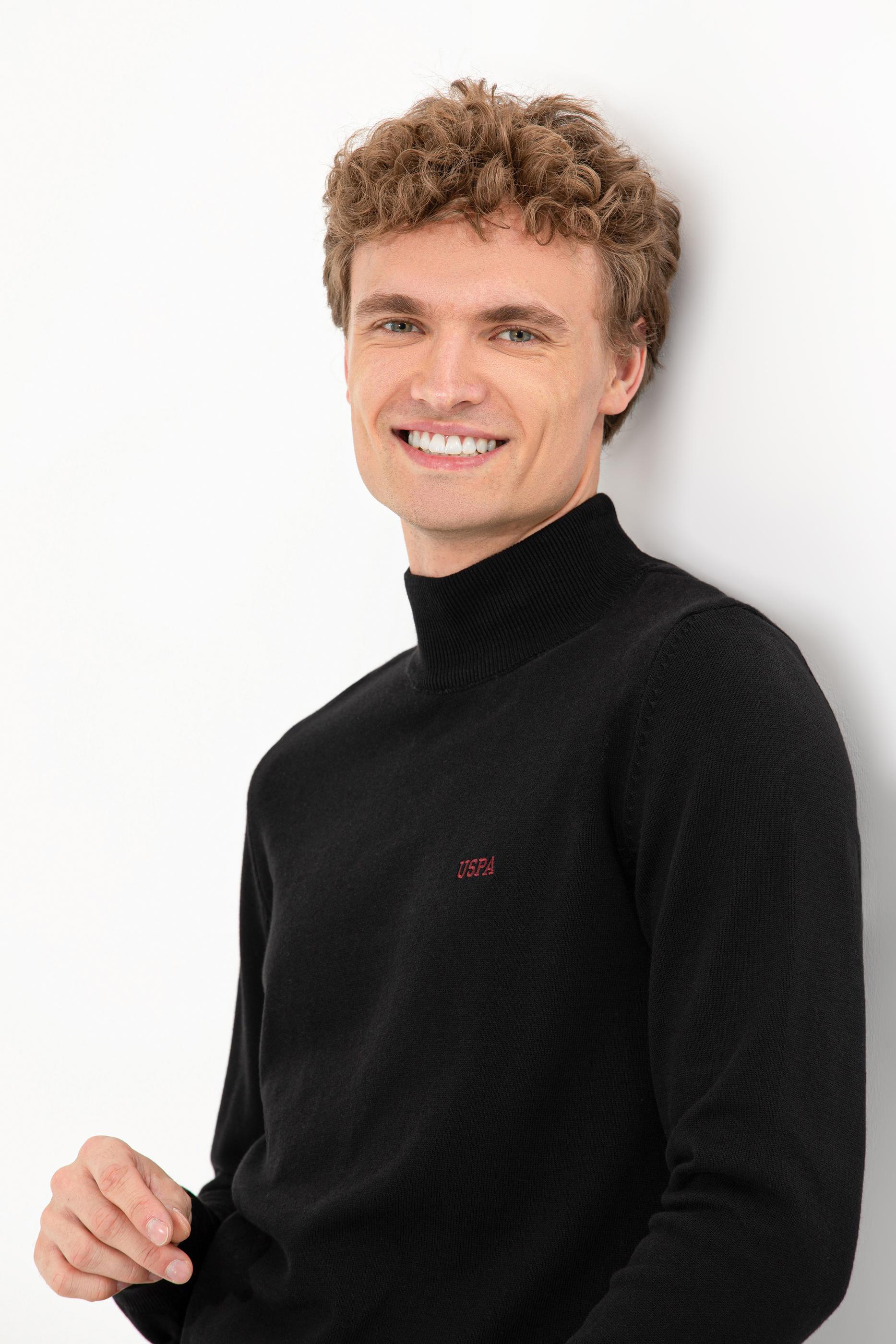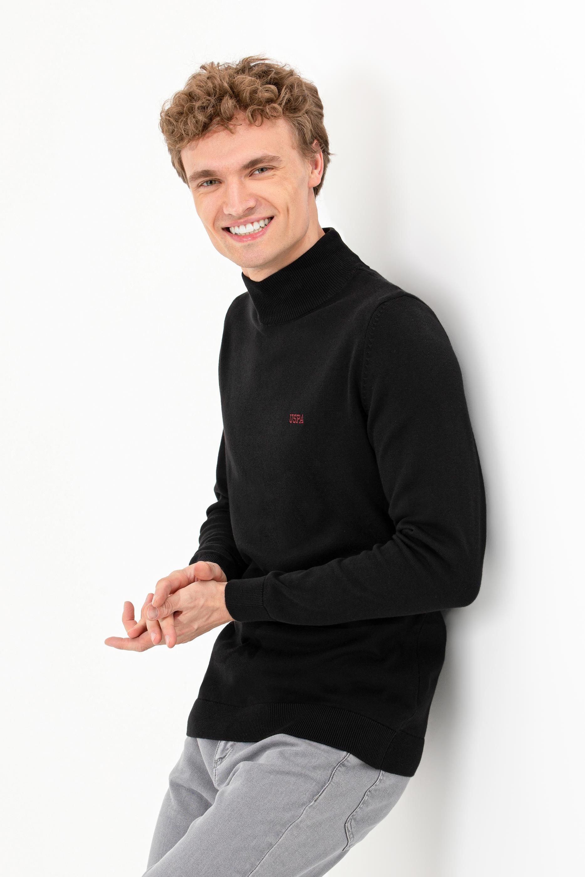 Erkek Siyah Balıkçı Yaka Basic Triko Kazak
