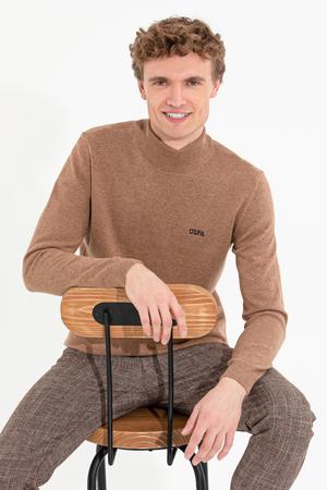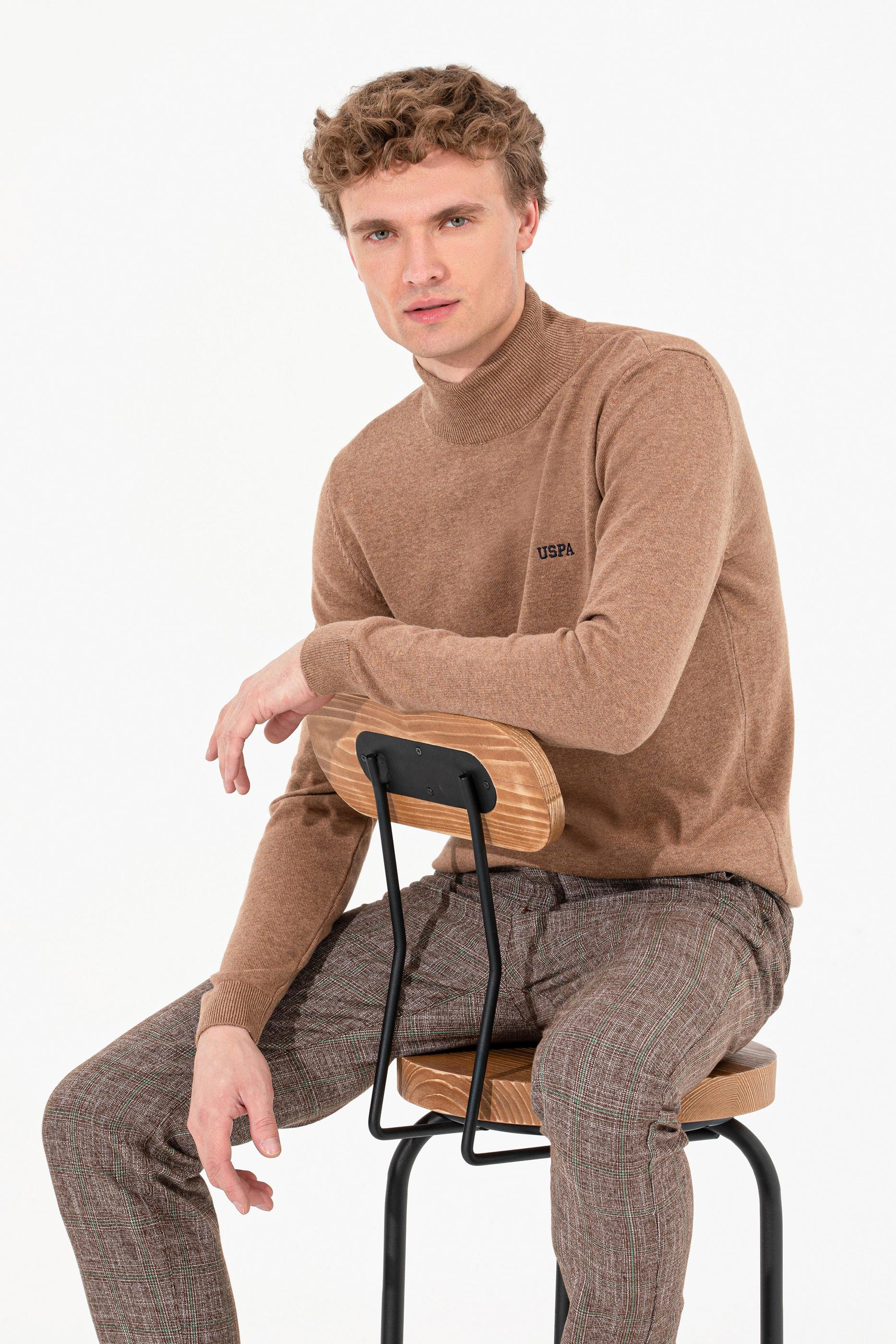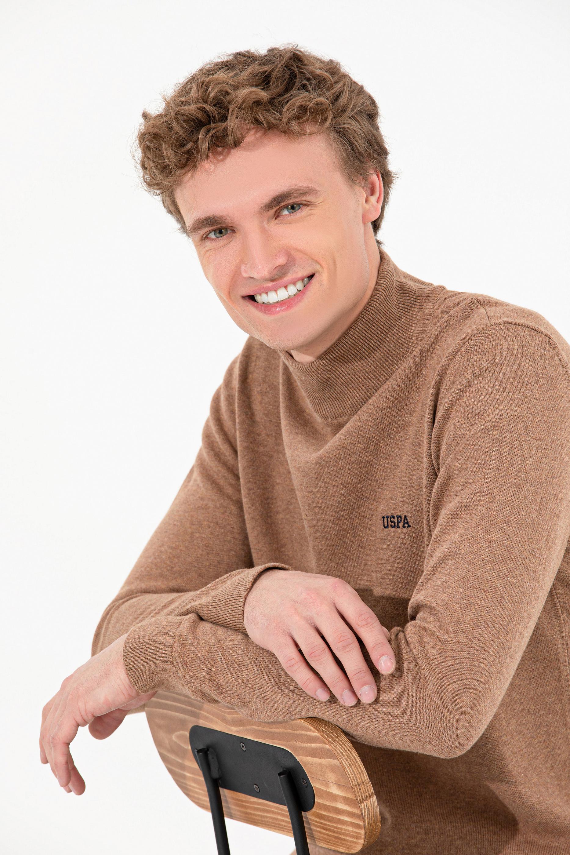 Erkek Camel Melanj Balıkçı Yaka Basic Triko Kazak
