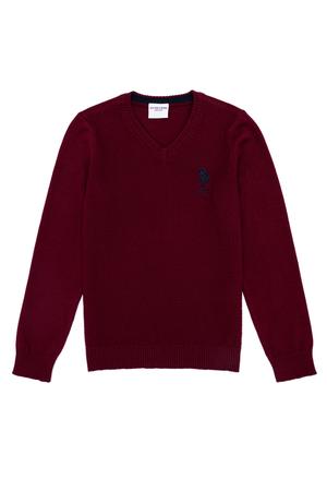 Erkek Çocuk Bordo V Yaka Triko Kazak
