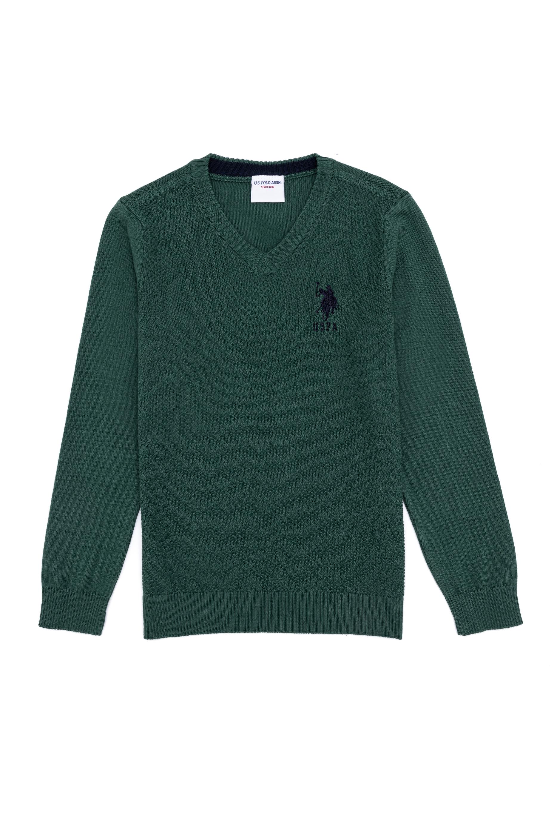 Erkek Çocuk Yeşil V Yaka Triko Kazak