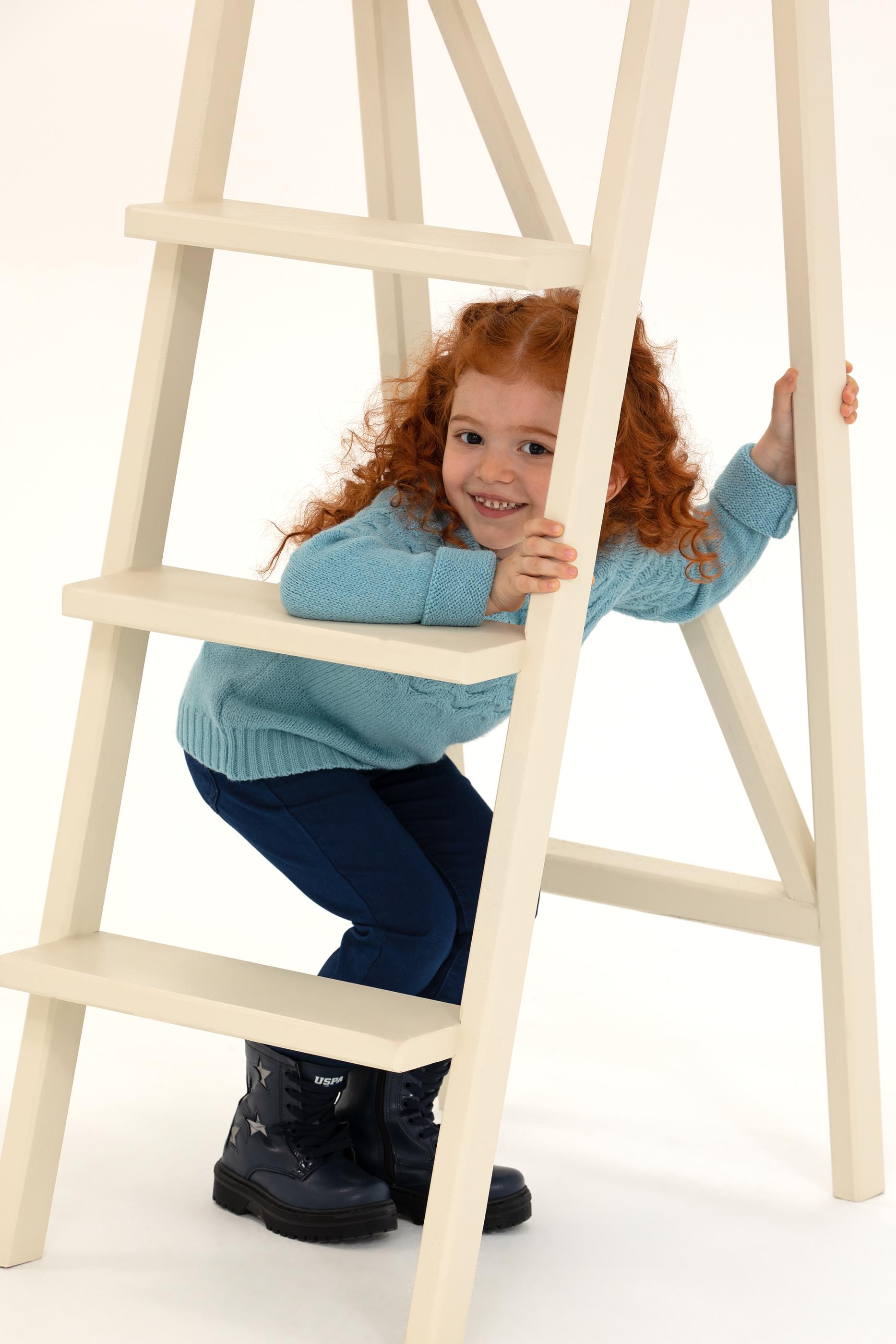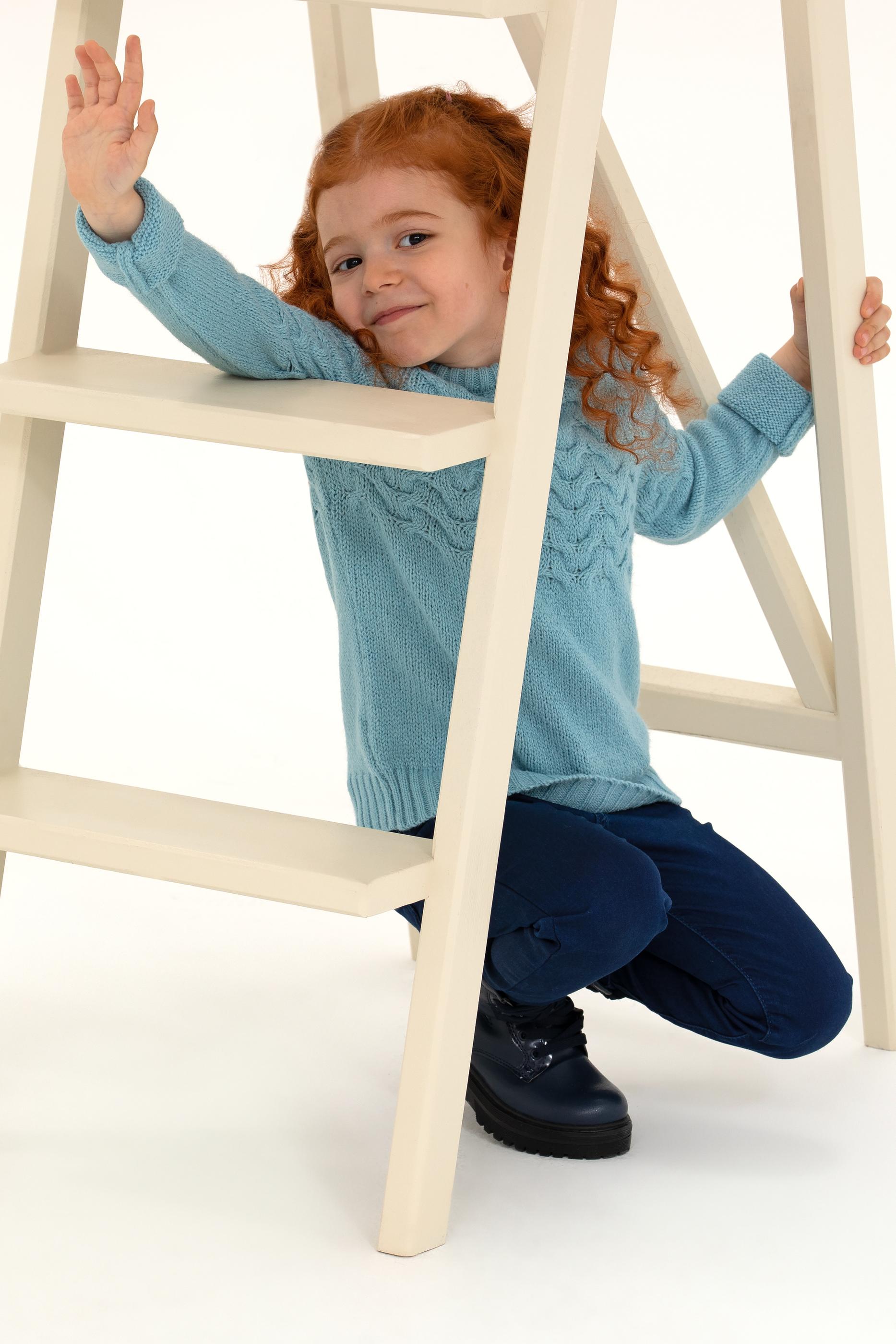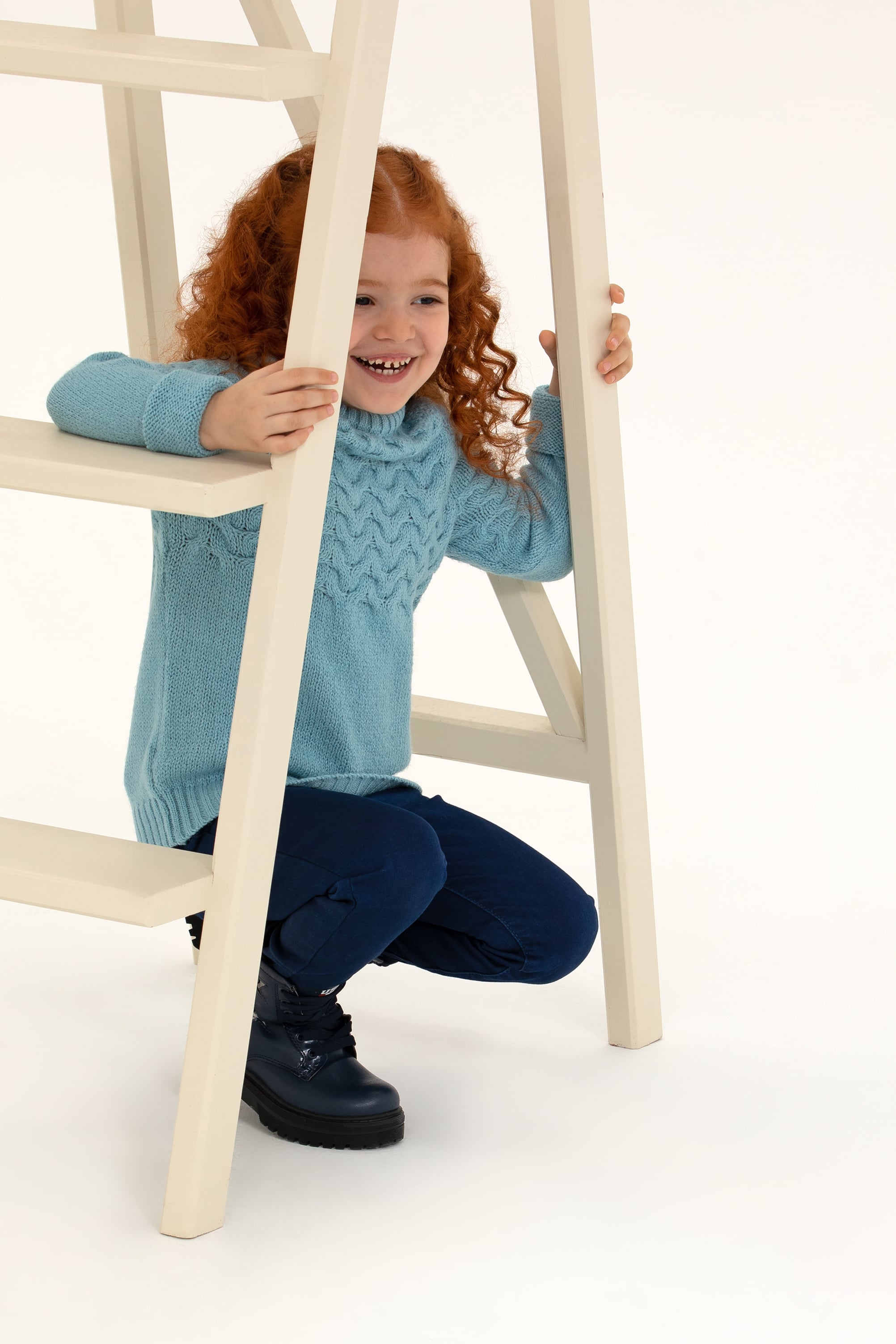 Kız Çocuk Mavi Bisiklet Yaka Kazak