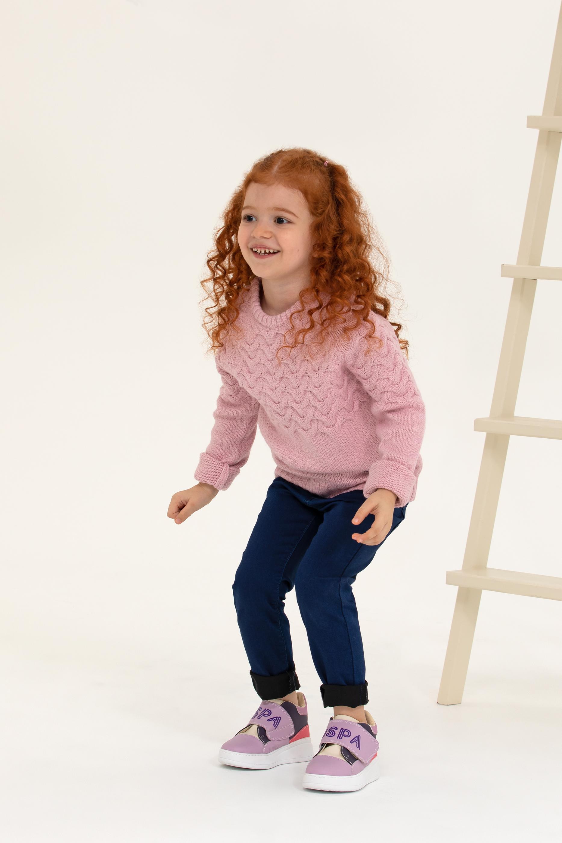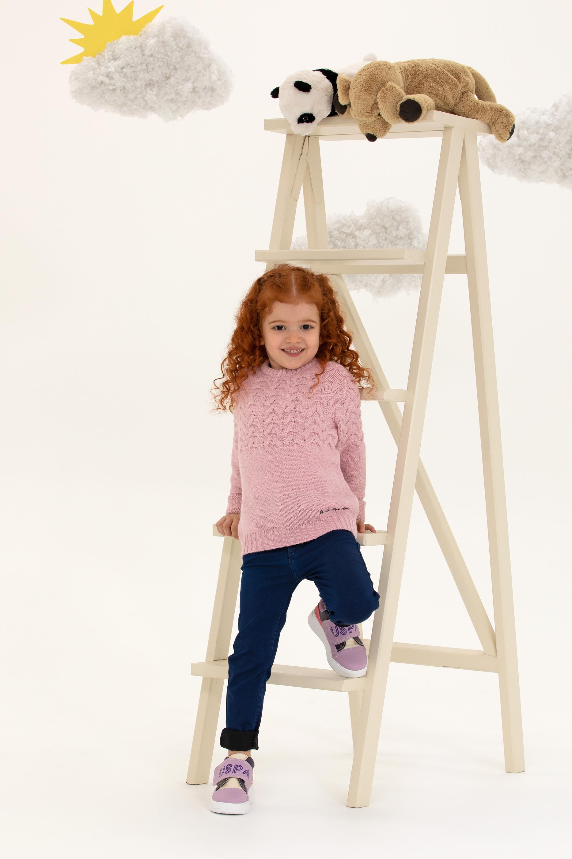 Kız Çocuk Manolya Bisiklet Yaka Kazak