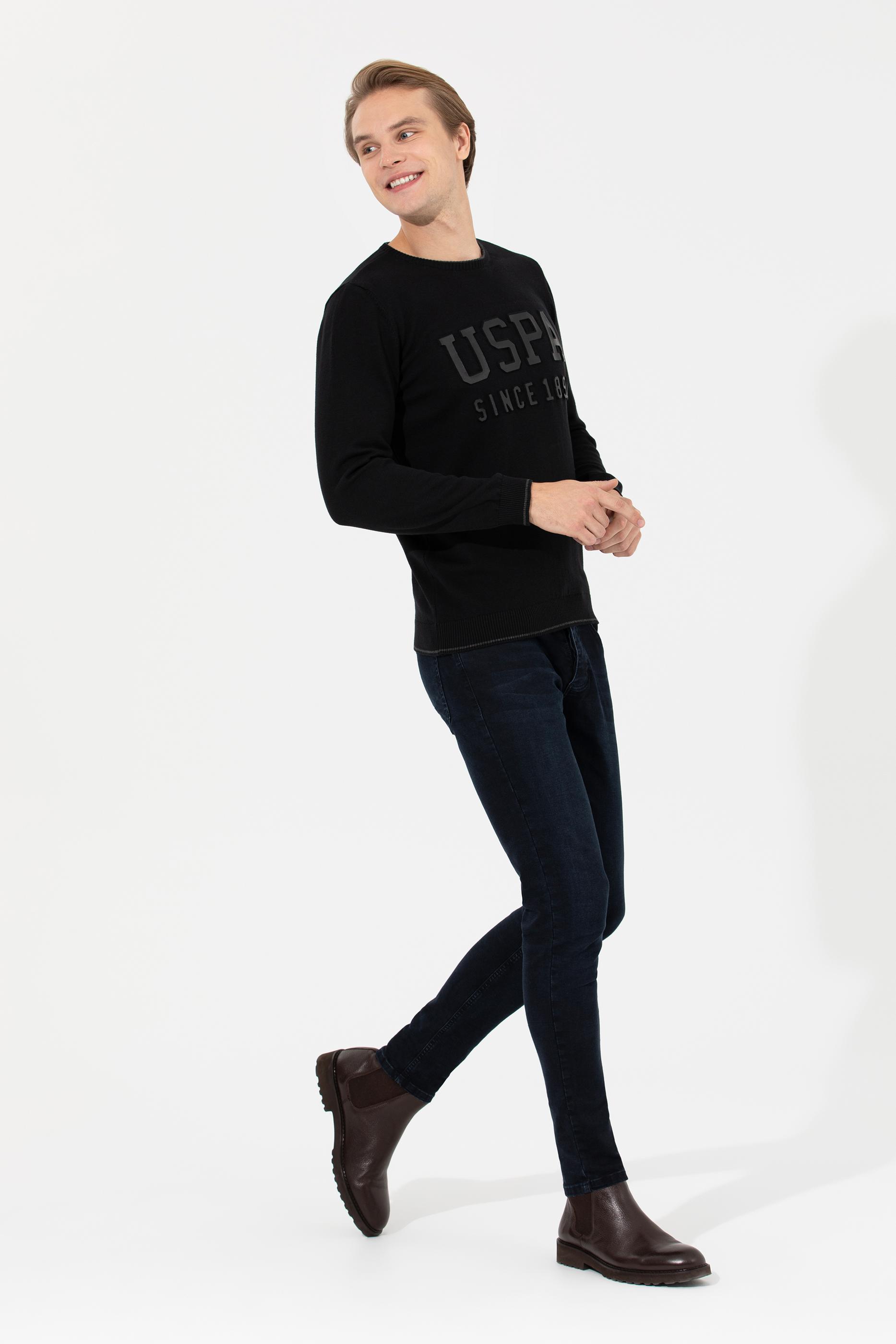 Erkek Siyah Bisiklet Yaka Triko Kazak
