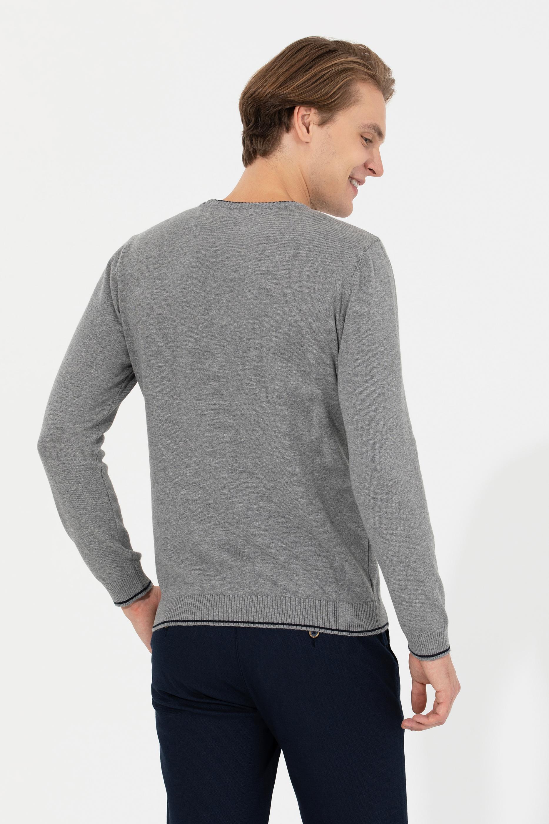 Erkek Gri Melanj Bisiklet Yaka Triko Kazak - 50258076023