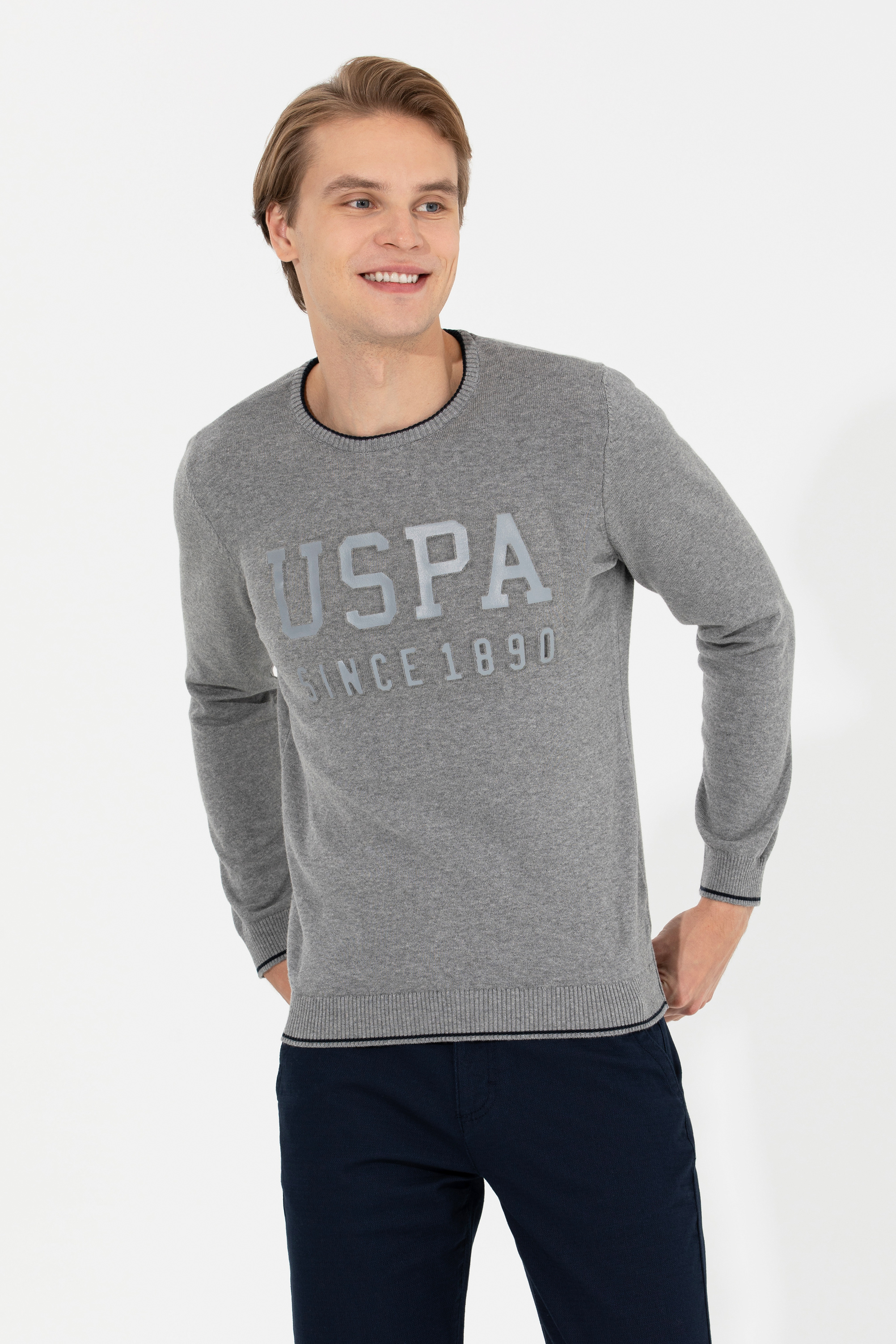 Erkek Gri Melanj Bisiklet Yaka Triko Kazak