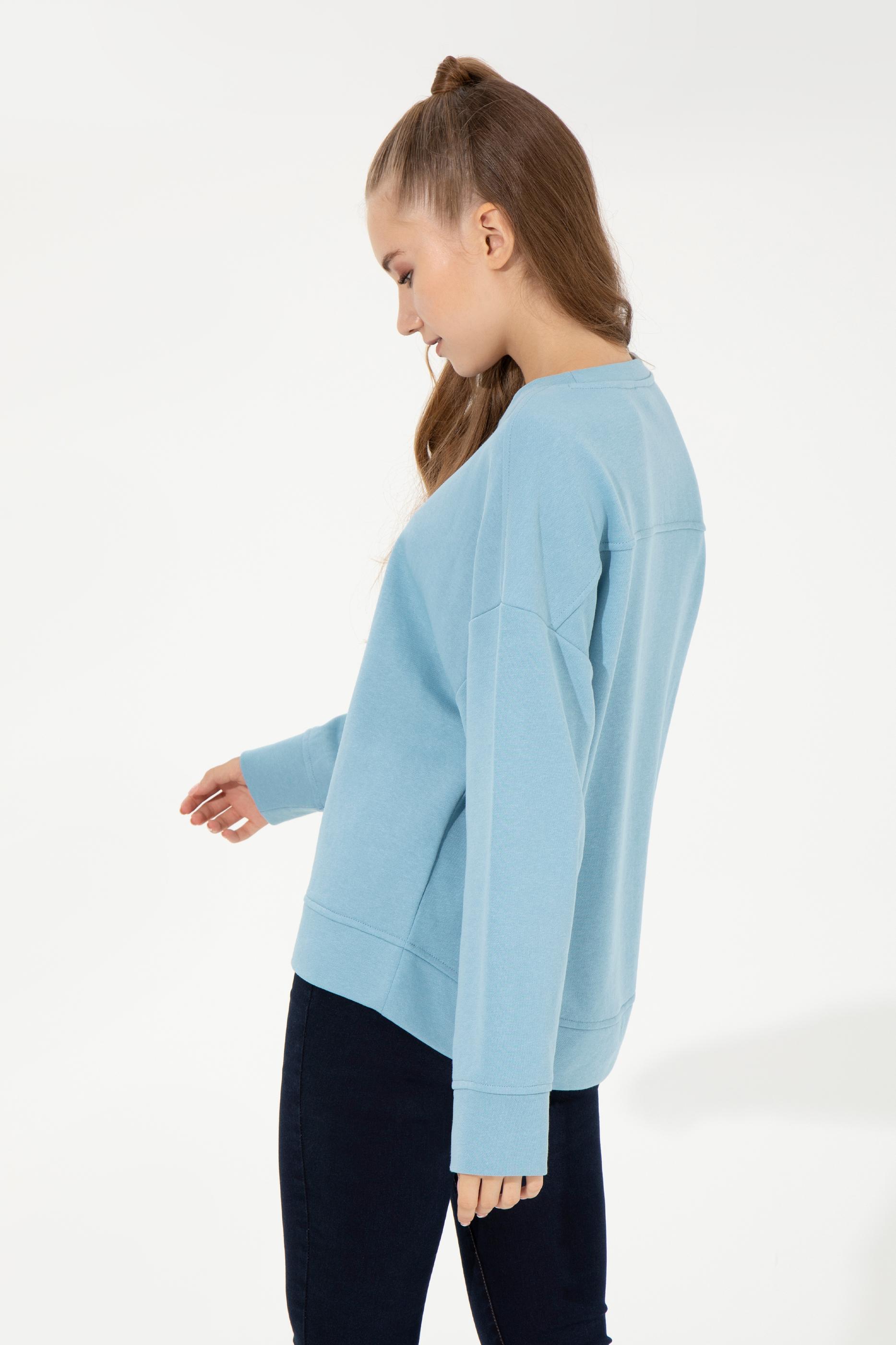 - Kadın Mavi Bisiklet Yaka Basic Sweatshirt