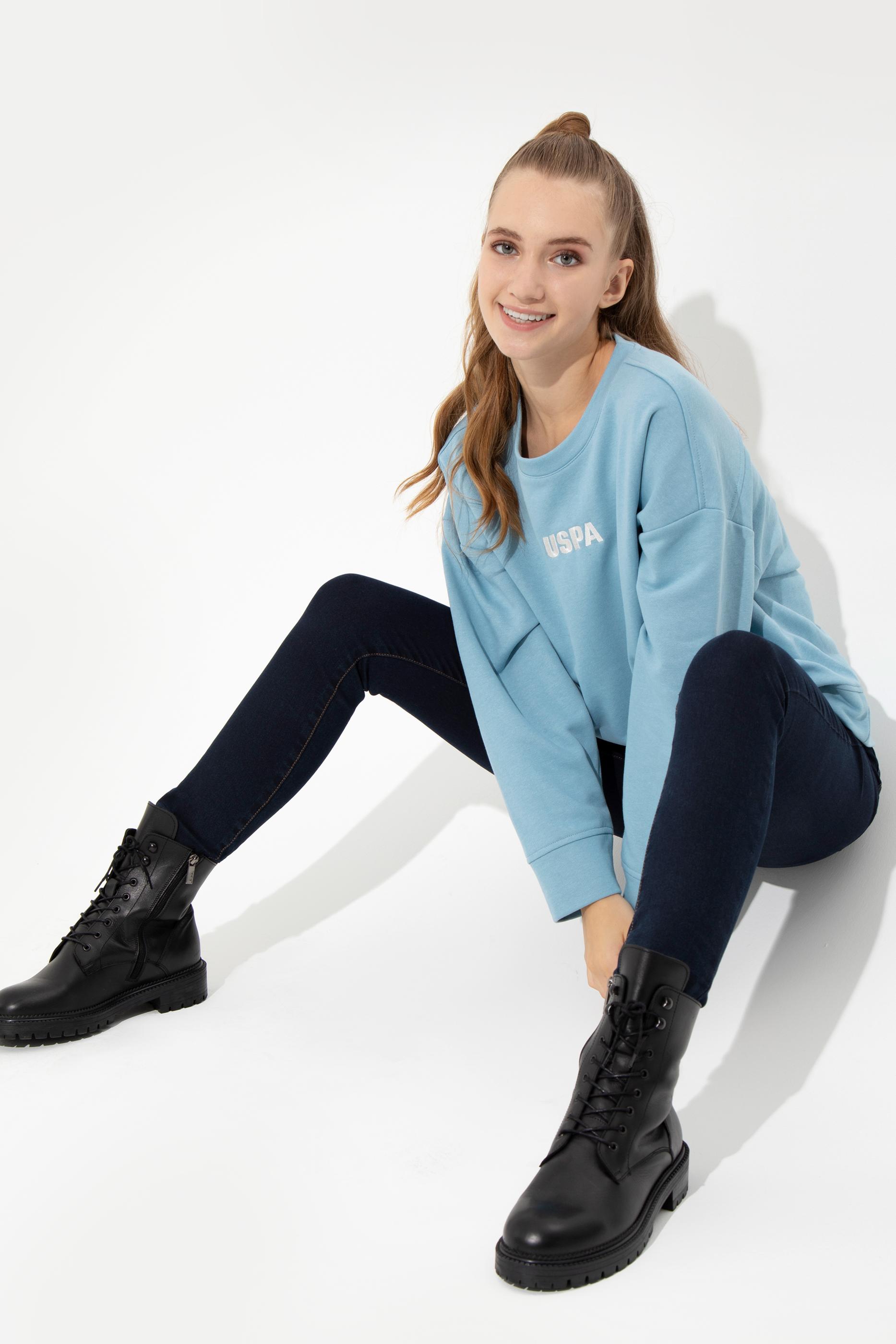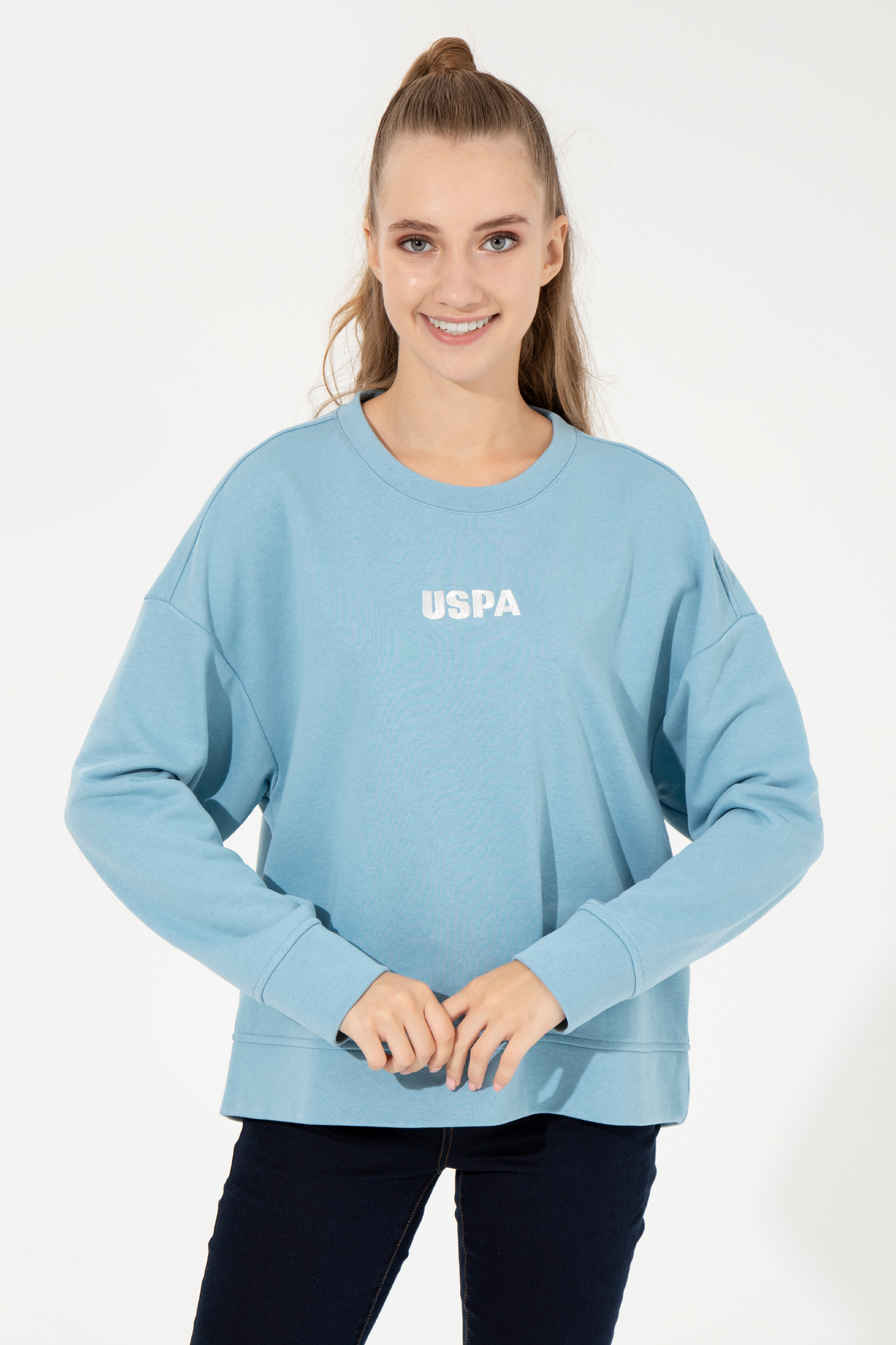 Annelerin rahatlığını düşünerek tasarladığımız basic sweatshirt modelinde kız çocuklarını da unutmadık. Kadın sweatshirt modelimiz pamuk ve polyester karışımı kumaştan üretiliyor. Böylelikle terletmeden sıcak tutarken esnekliğiyle de rahat hareket etmeyi sağlıyor. Bol kesimiyle oversize sweatshirt modelimiz salaş bir şıklık sunuyor. USPA yazılı sweatshirt modelimiz mavi rengiyle zarif bir görünüm oluşturuyor.