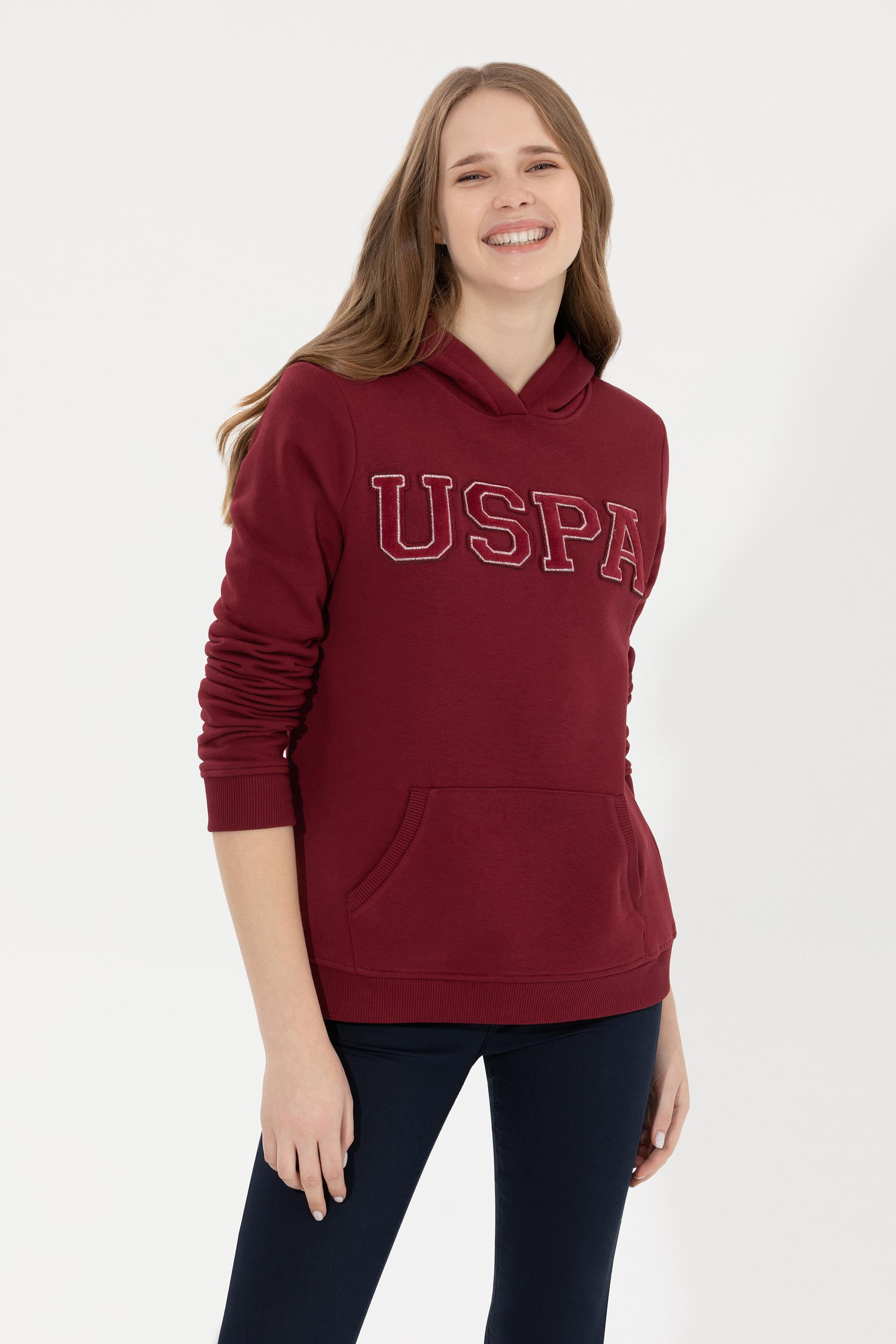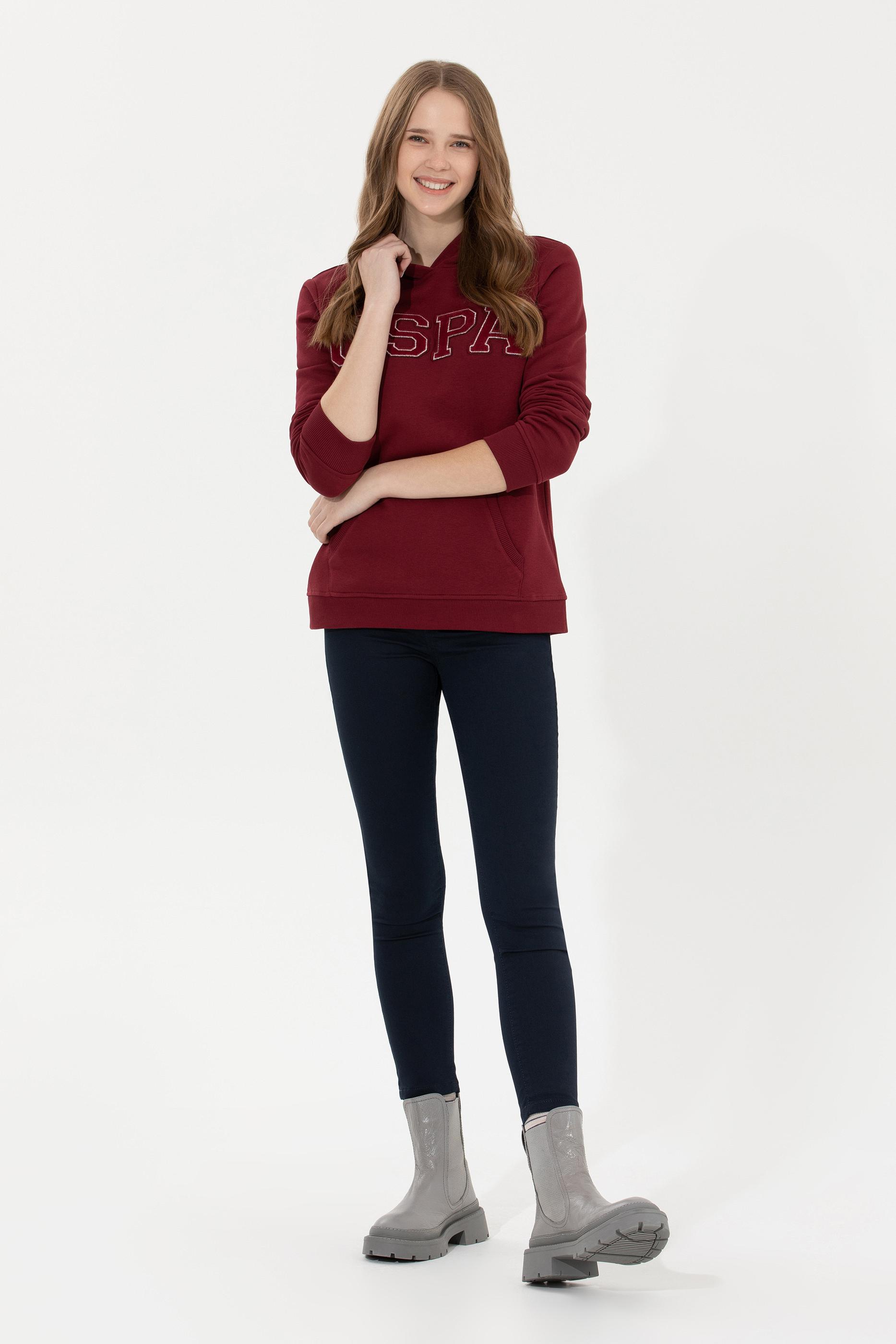 Kadın Vİşne Kapüşonlu Basic Sweatshirt