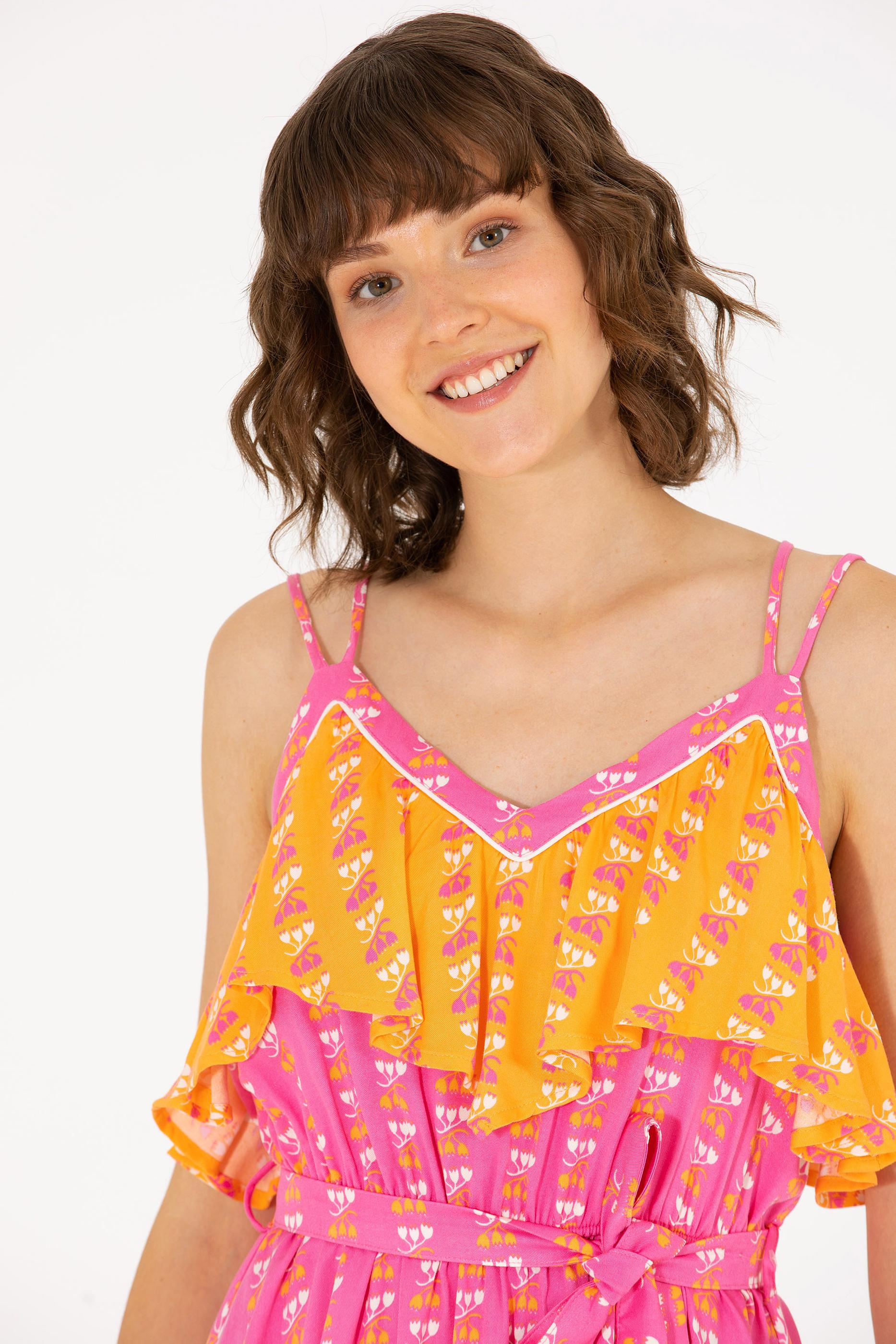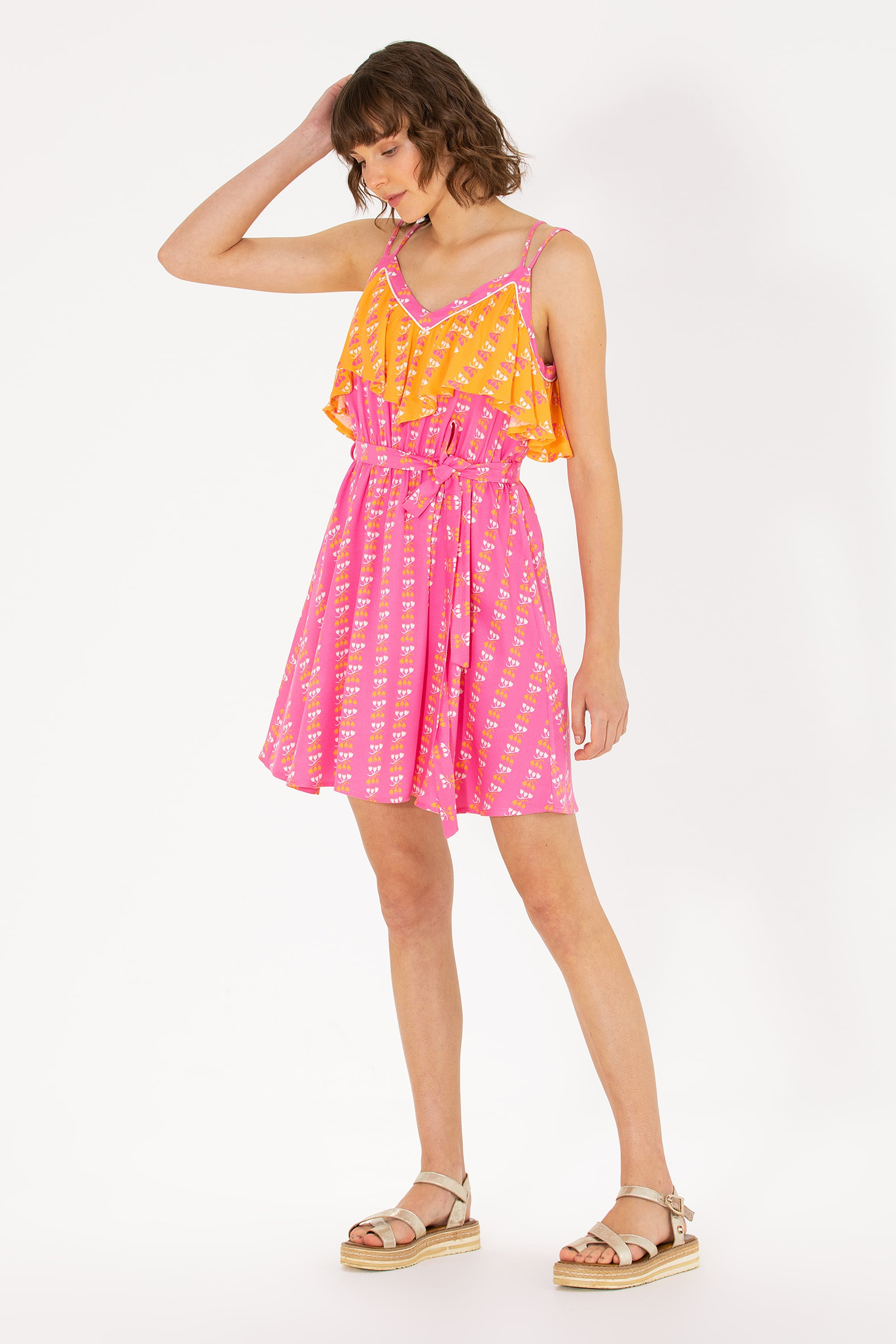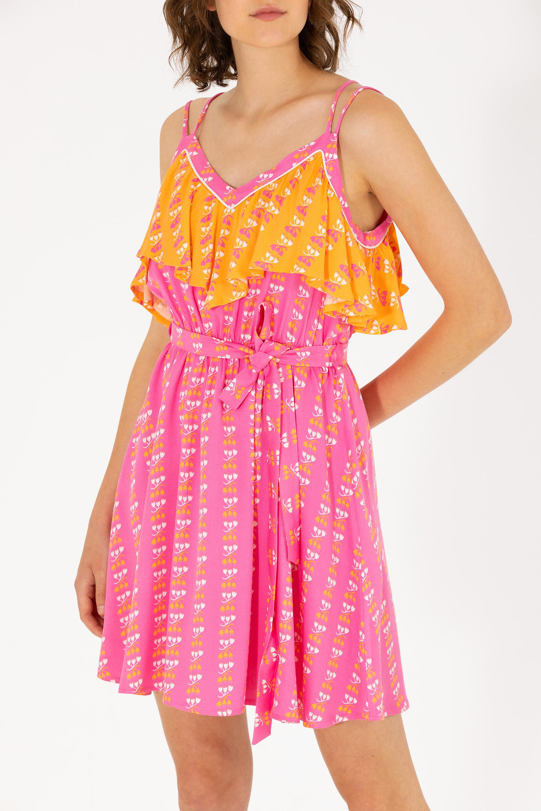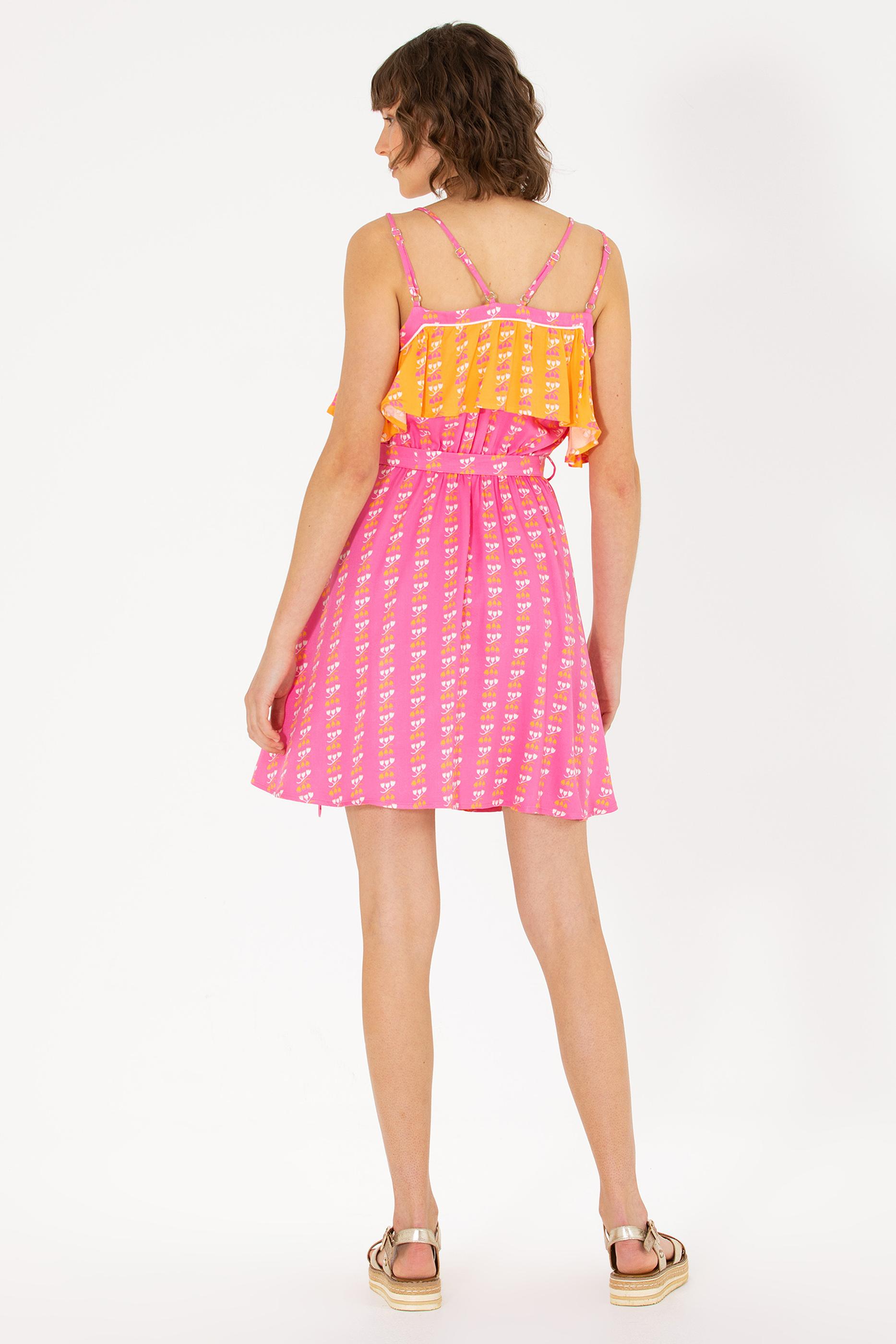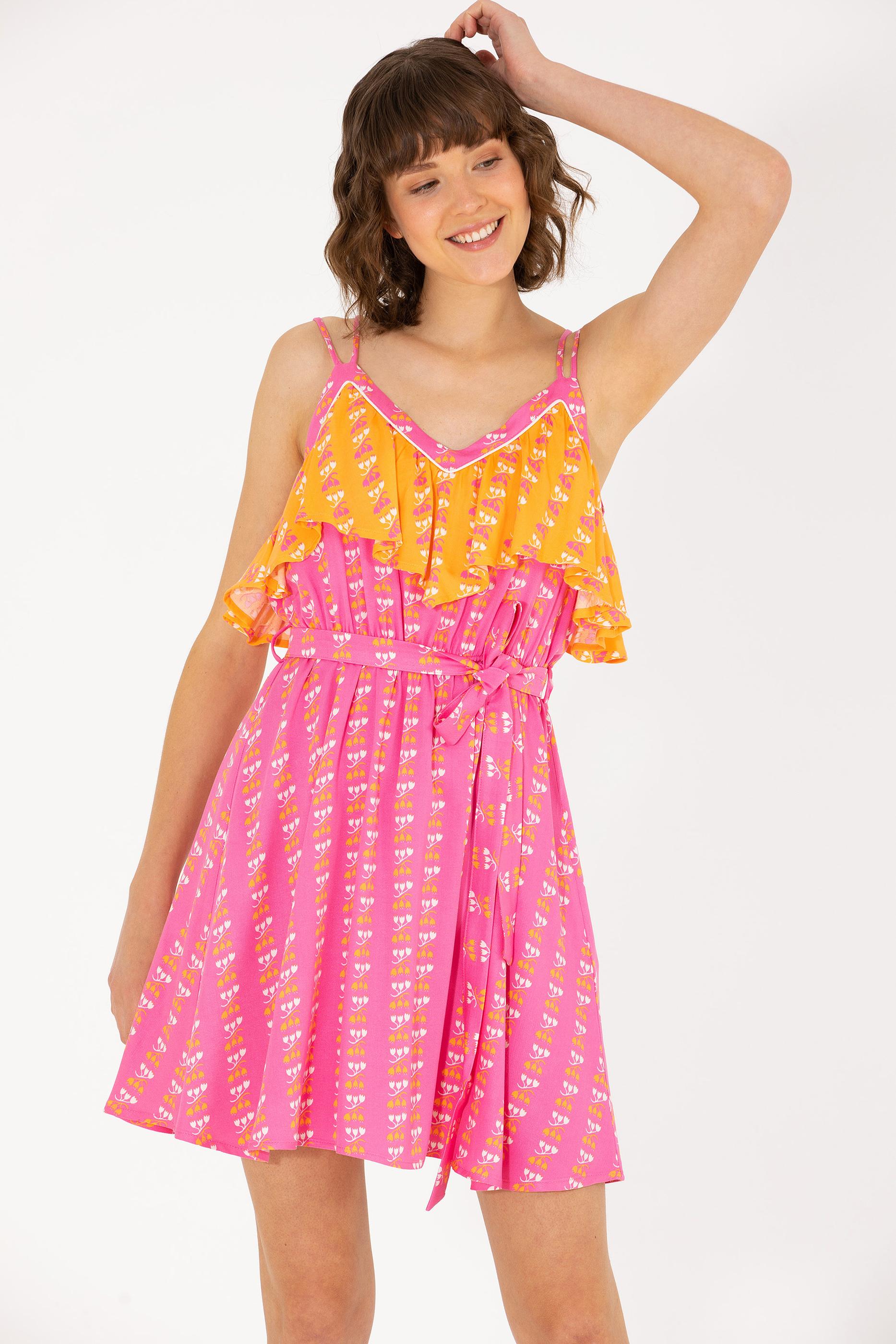 - Kadın Fuşya Mini Boy Dokuma Elbise