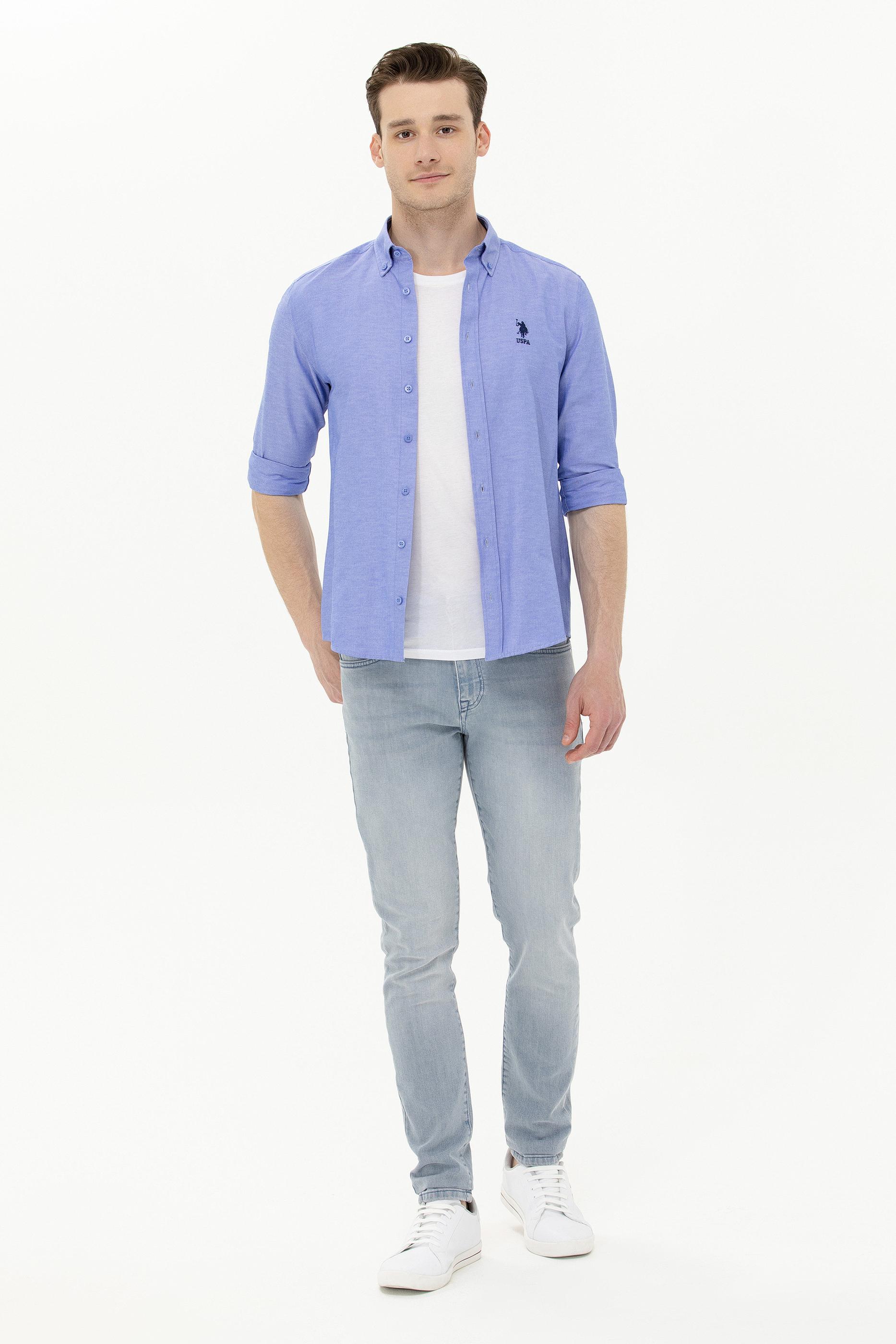 Erkek Mavi Uzun Kollu Basic Gömlek