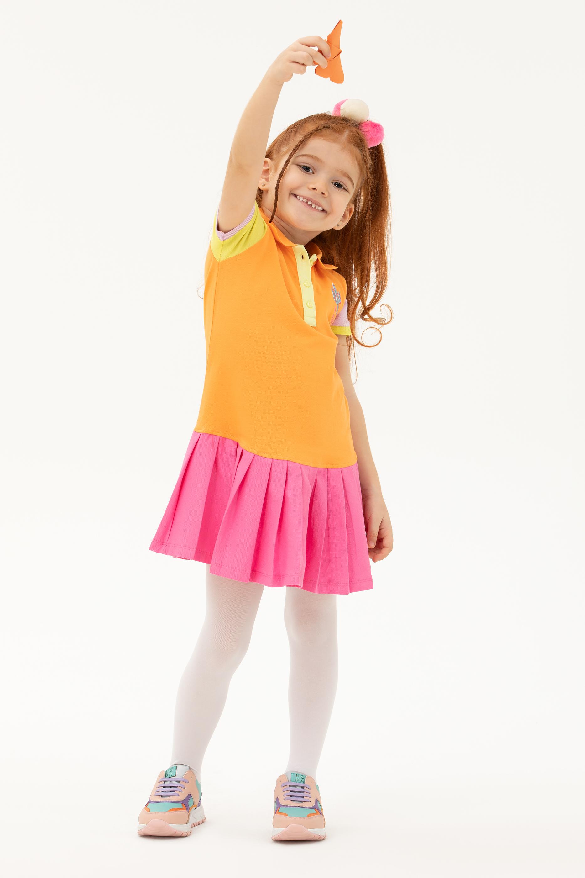 "name": "Kız Çocuk Turuncu Örme Elbise",