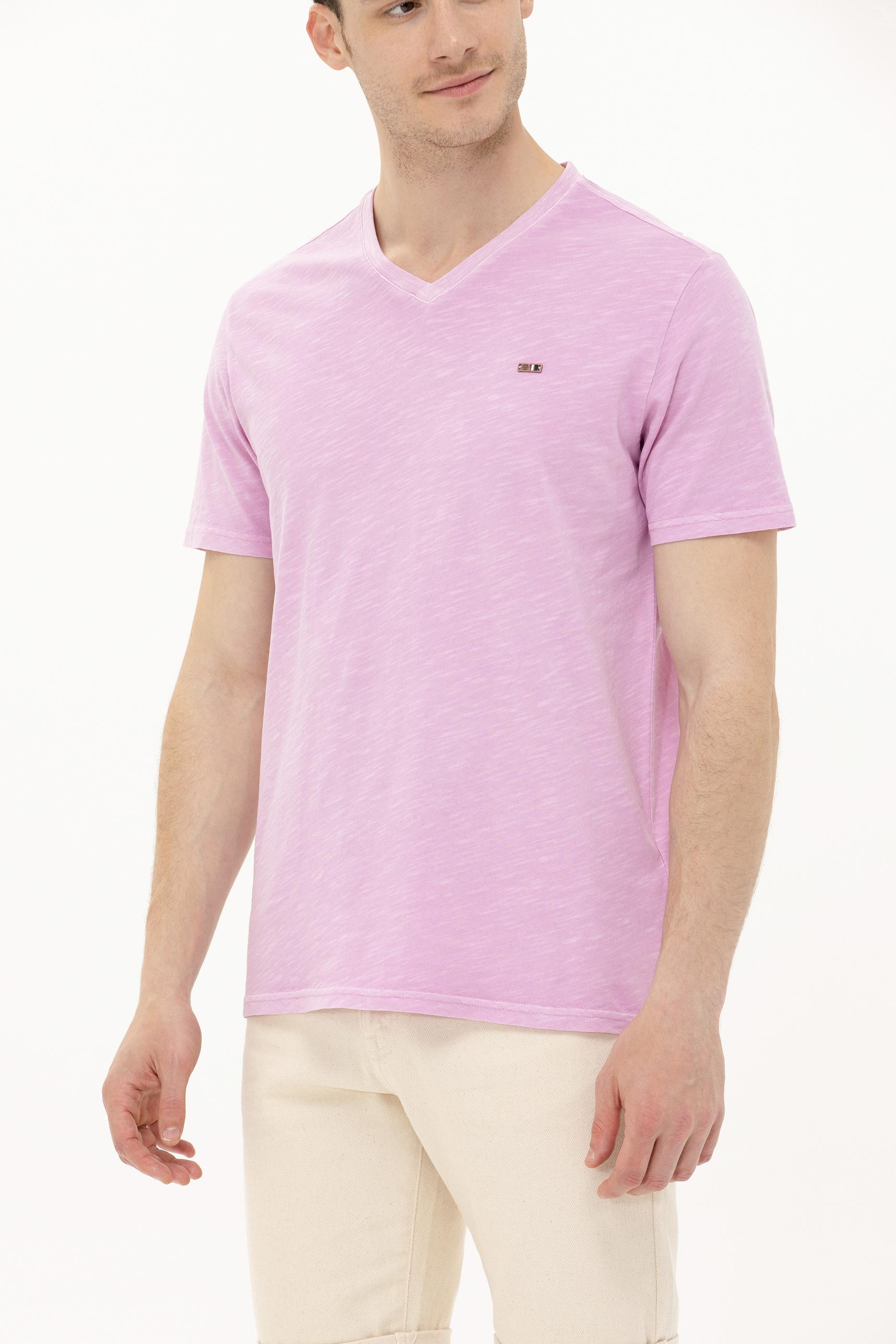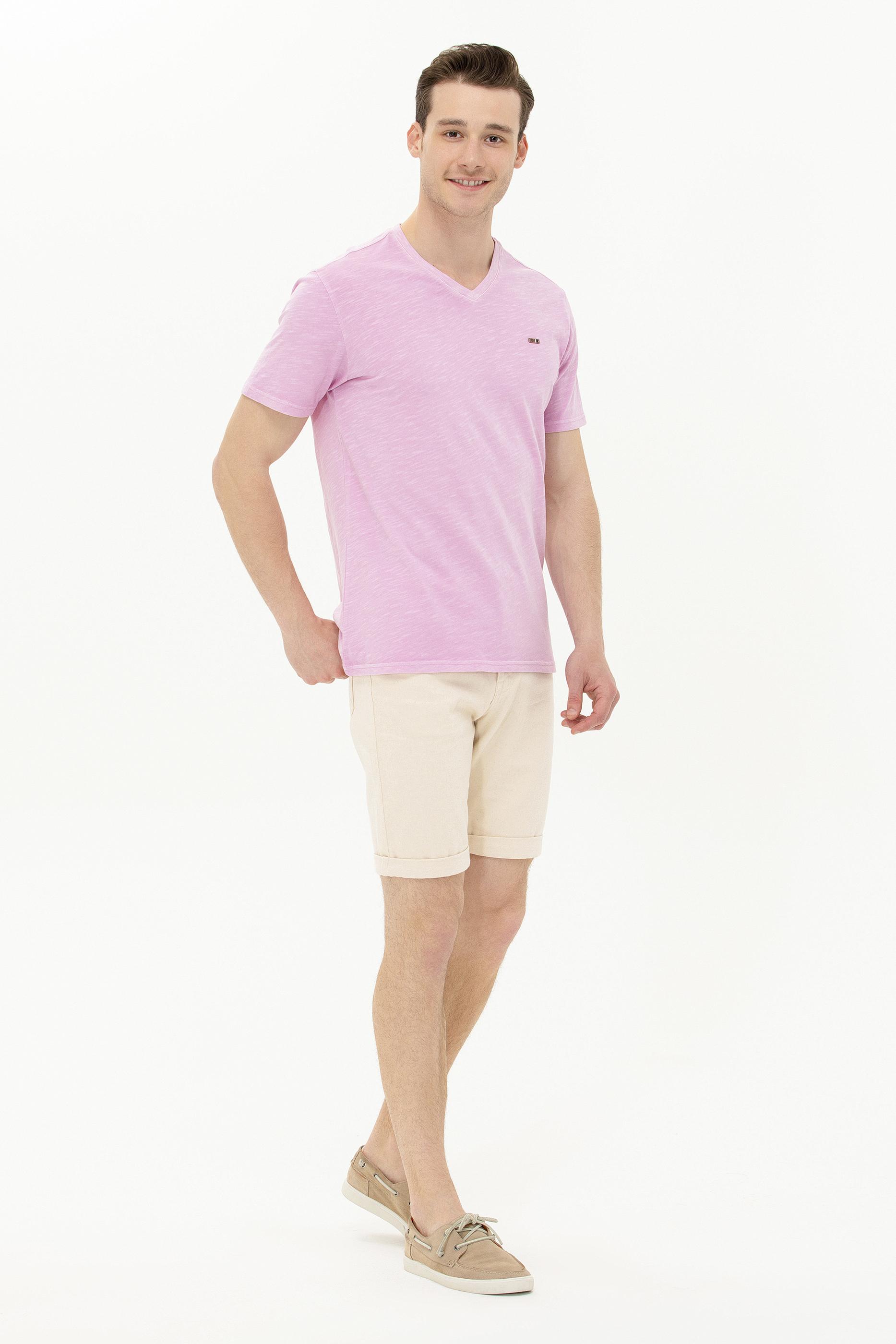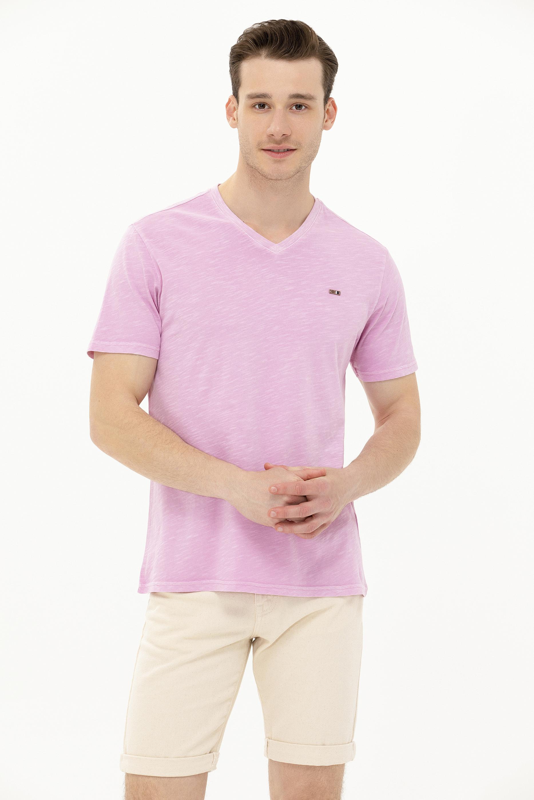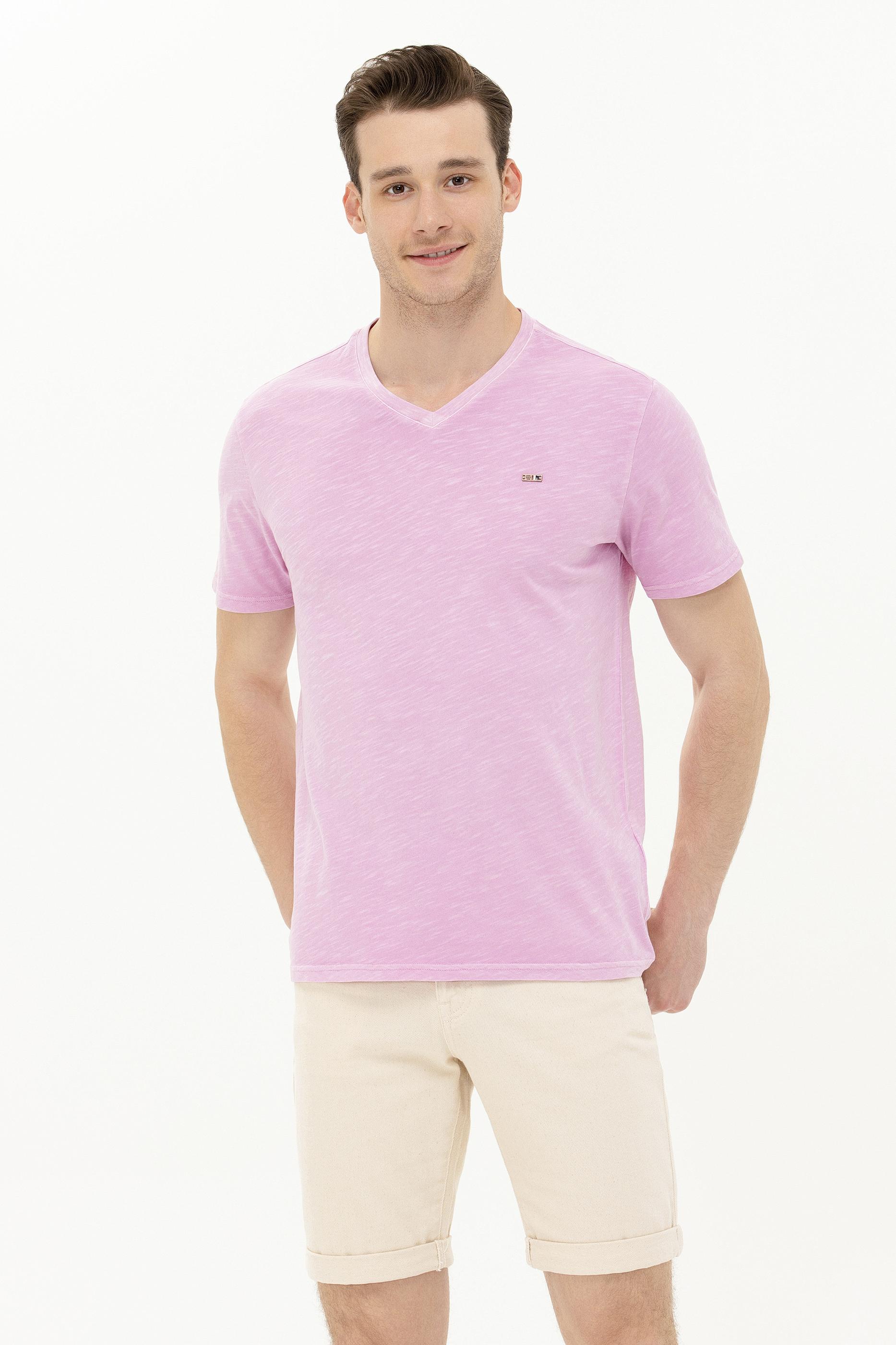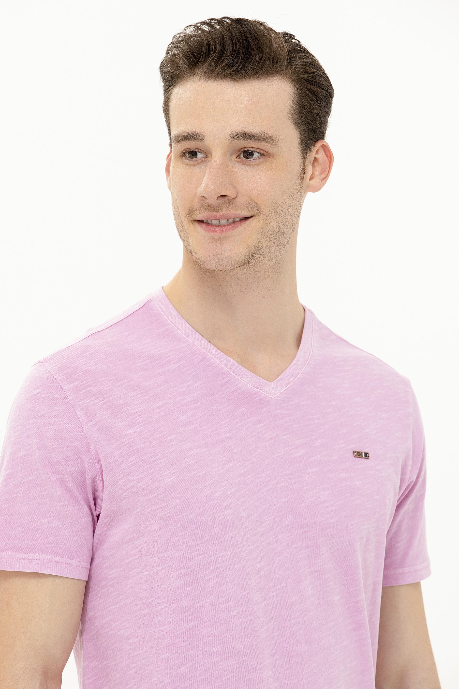 Erkek Manolya Basic V Yaka Tişört