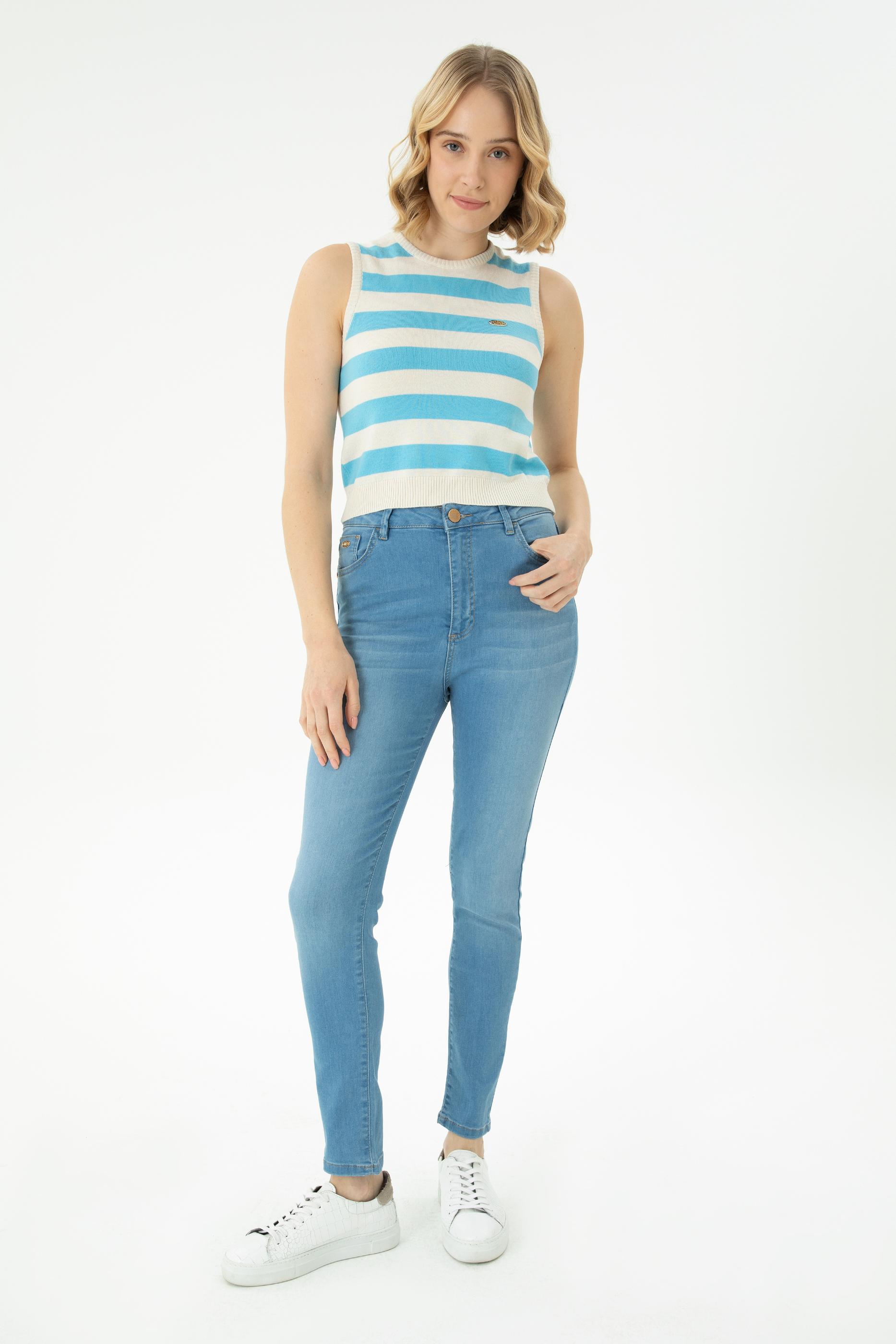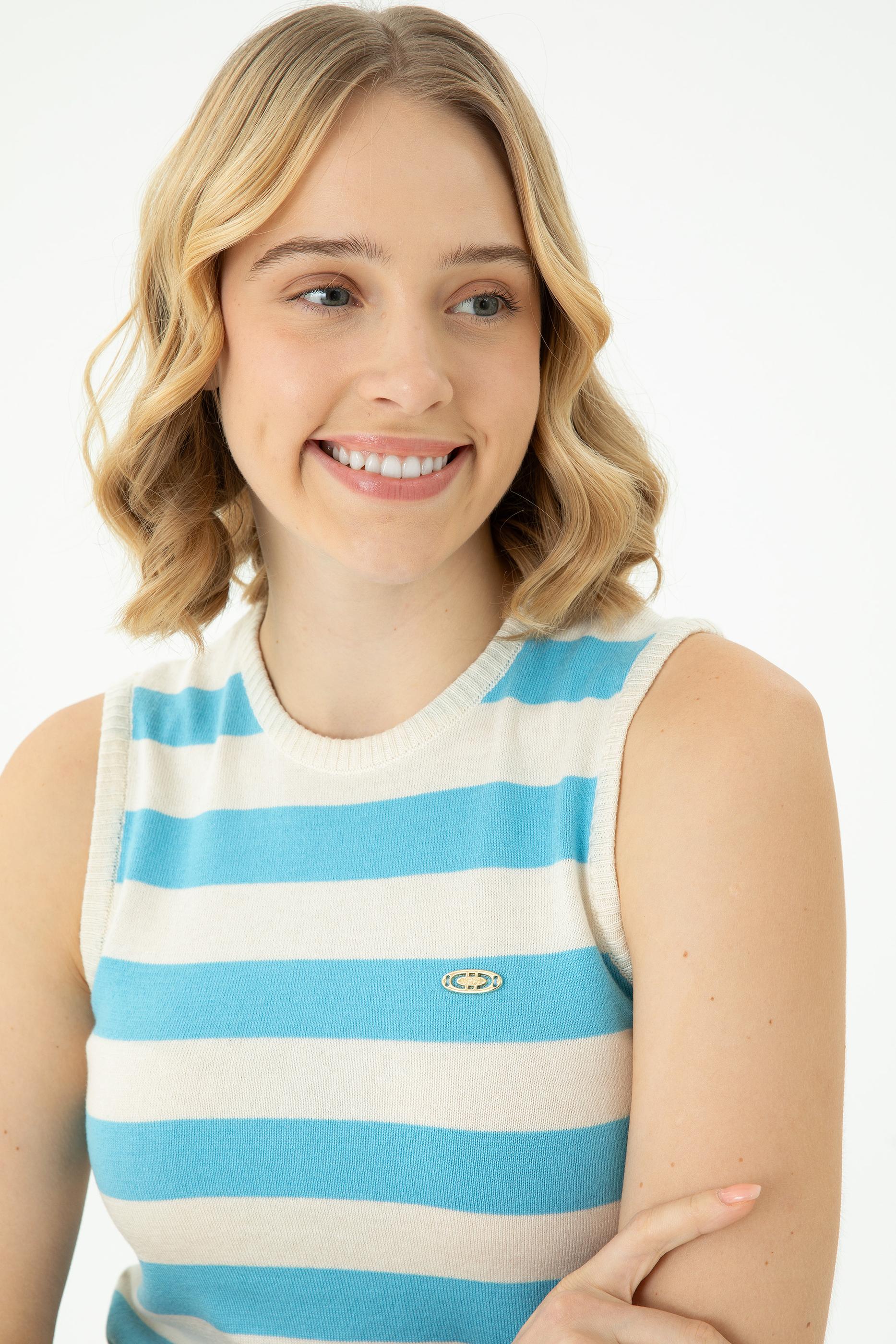Kadın Turkuaz Bisiklet Yaka Kazak