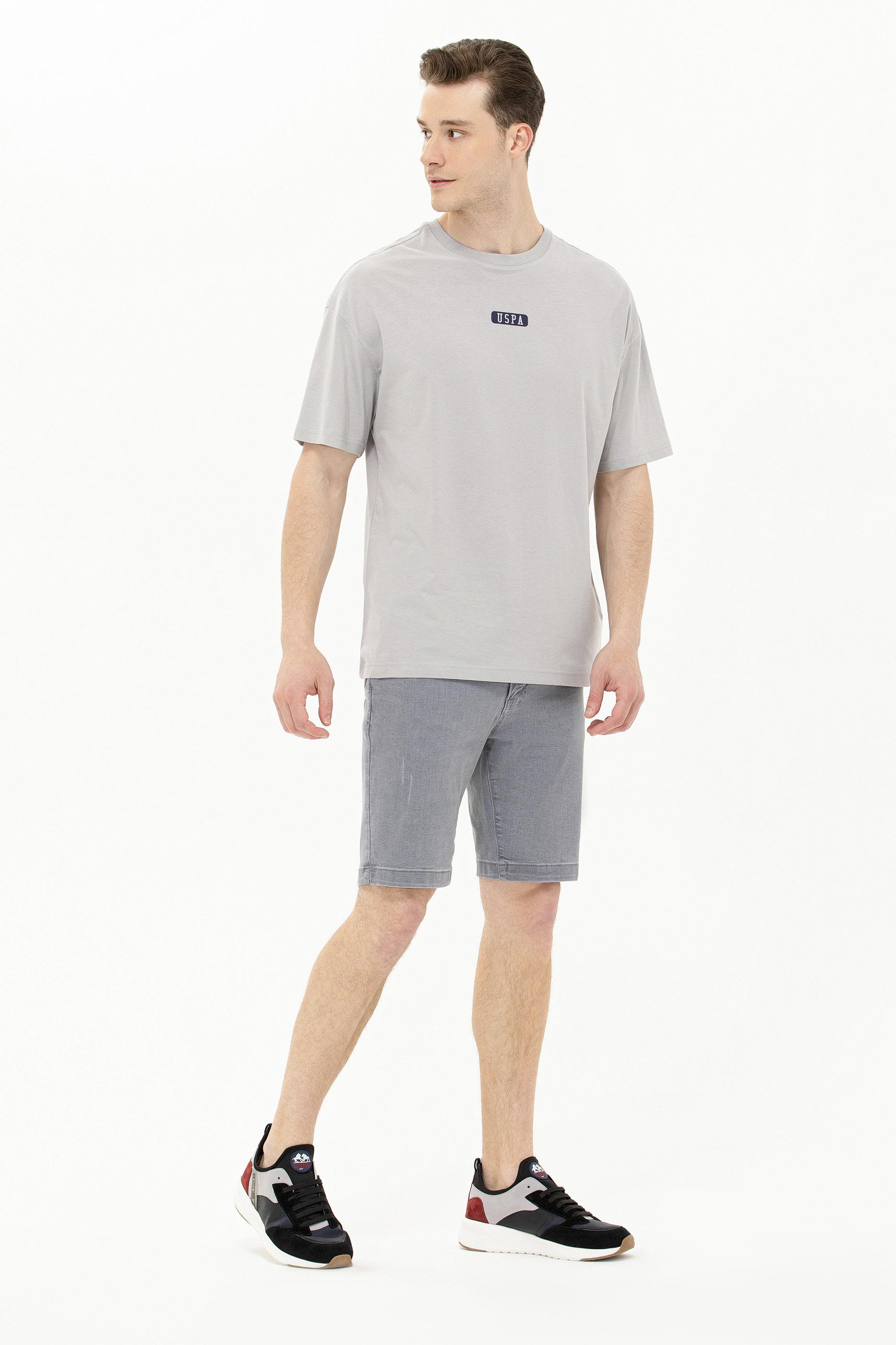 - Erkek Gri Oversize Bisiklet Yaka Tişört