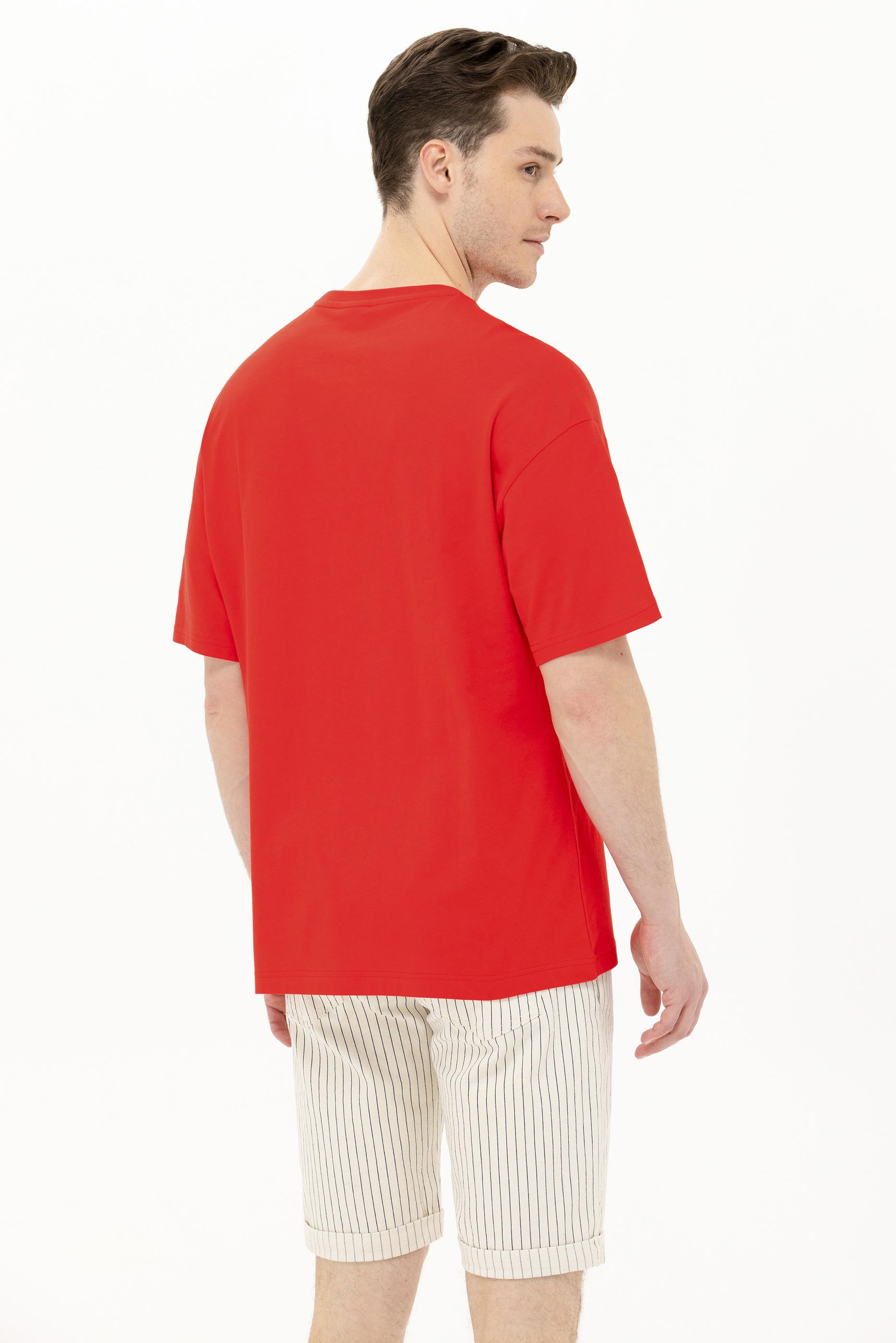 Erkek Kırmızı Oversize Bisiklet Yaka Tişört