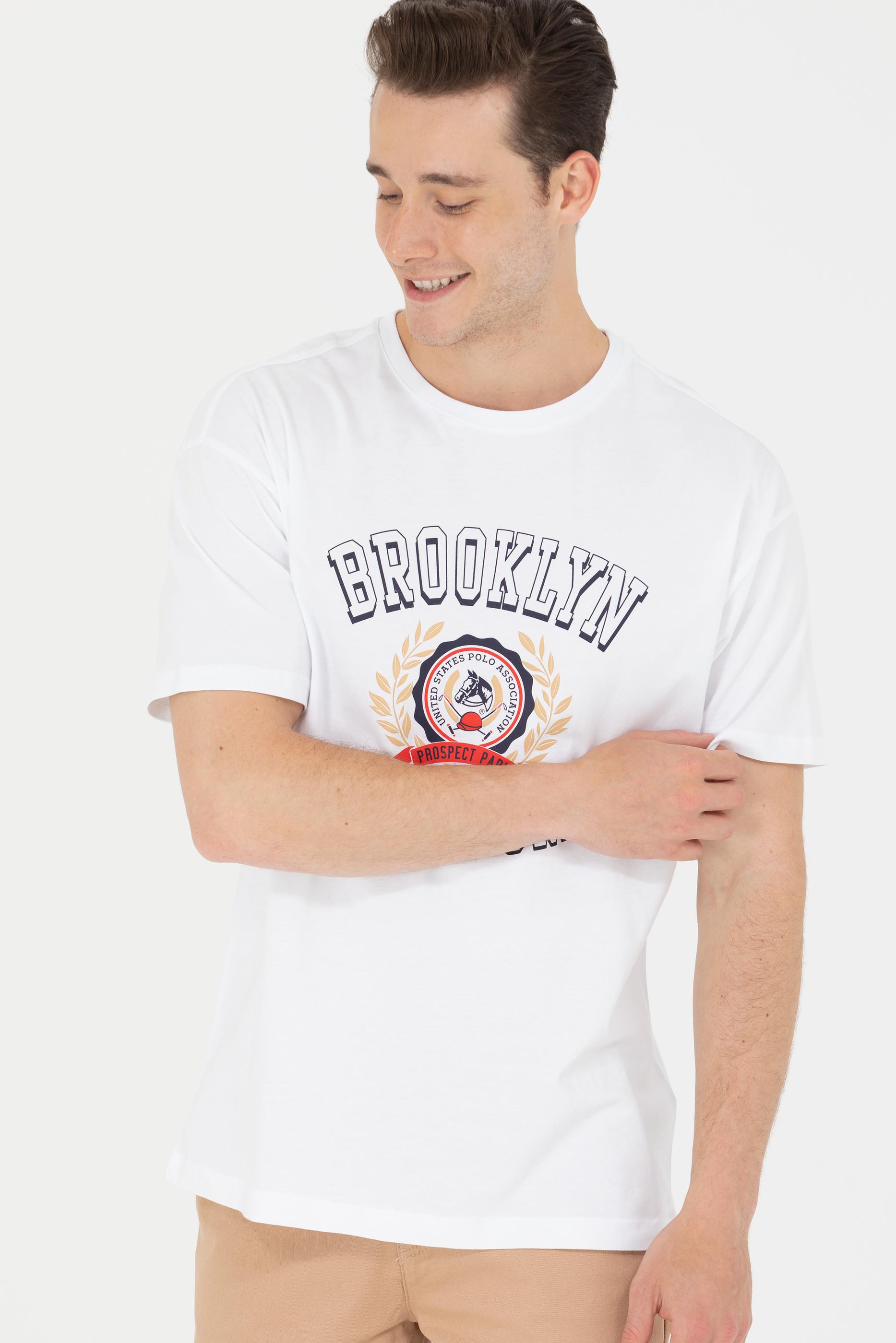 Erkek Beyaz Comfort Bisiklet Yaka Tişört