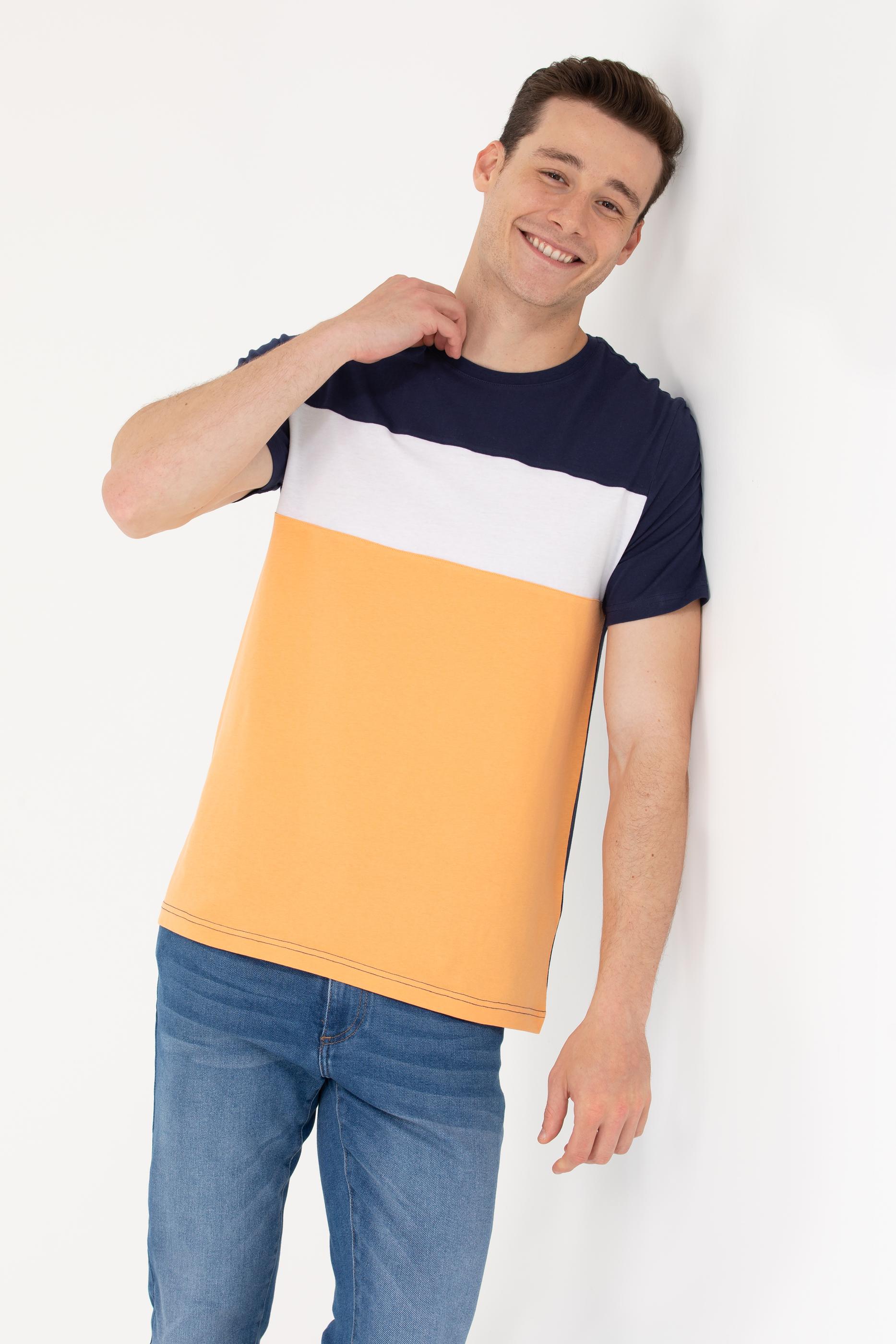 Erkek Turuncu Bisiklet Yaka Tişört - 50264953030