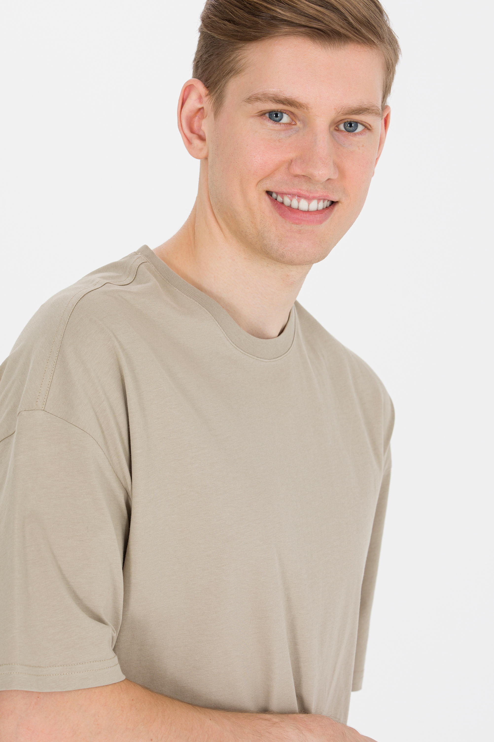 - Erkek Haki Comfort Long Bisiklet Yaka Tişört