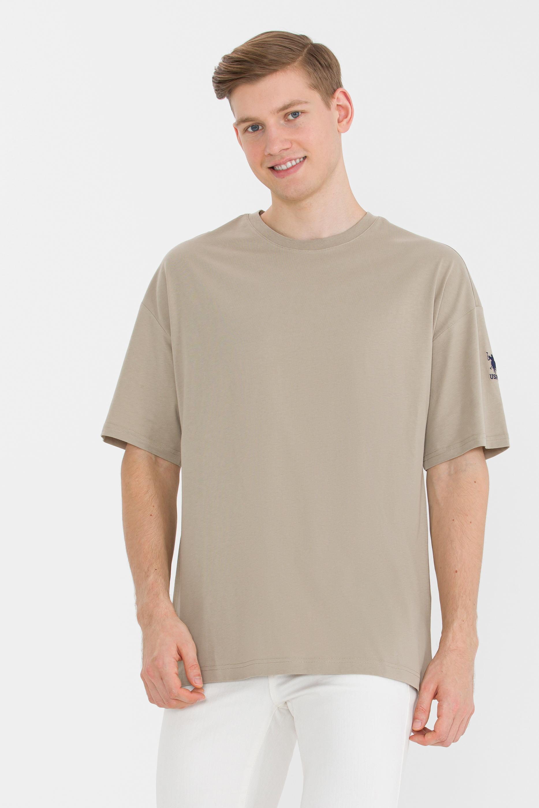 Erkek Haki Comfort Long Bisiklet Yaka Tişört