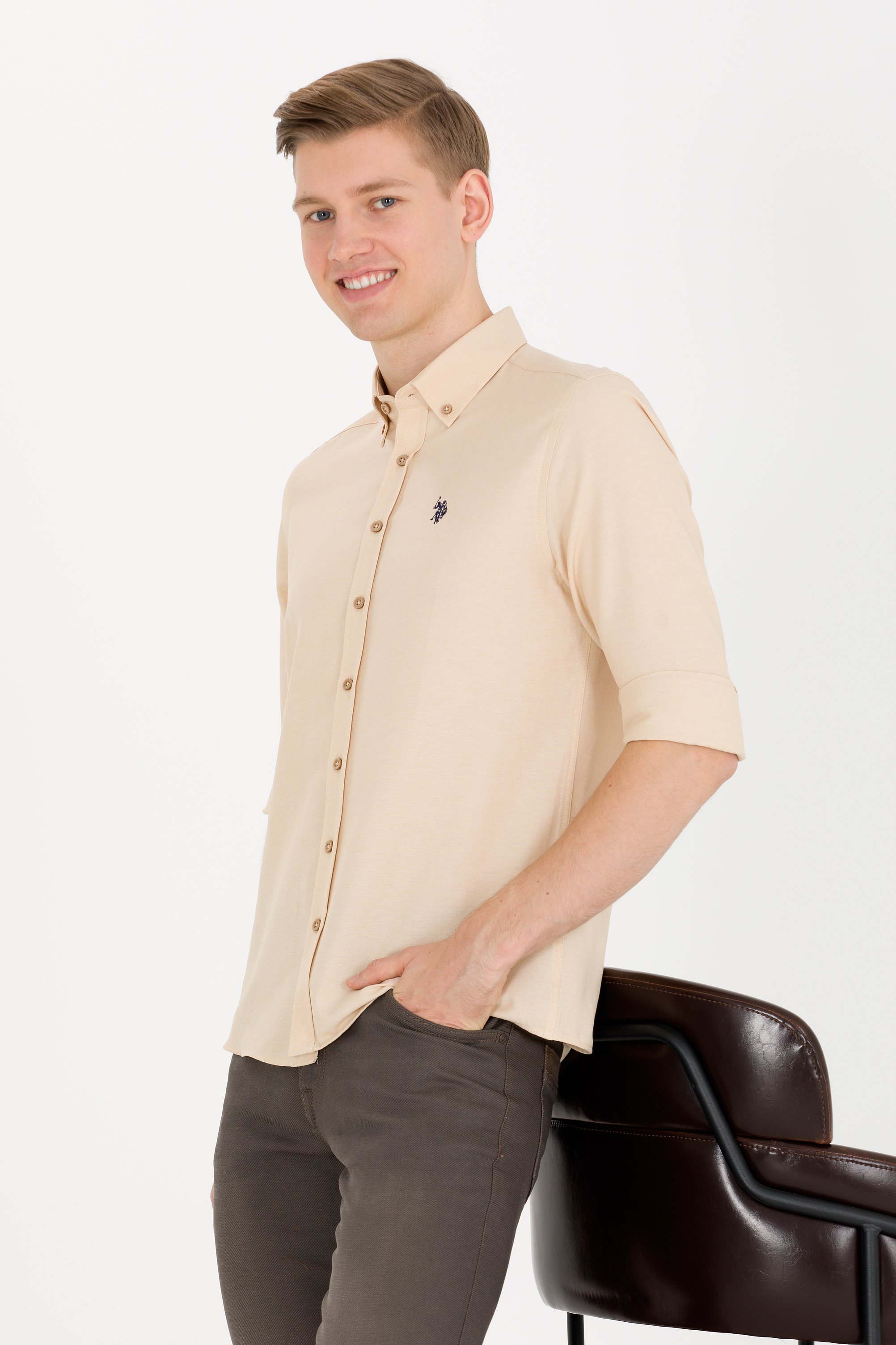 Erkek Camel Uzun Kollu Basic Gömlek