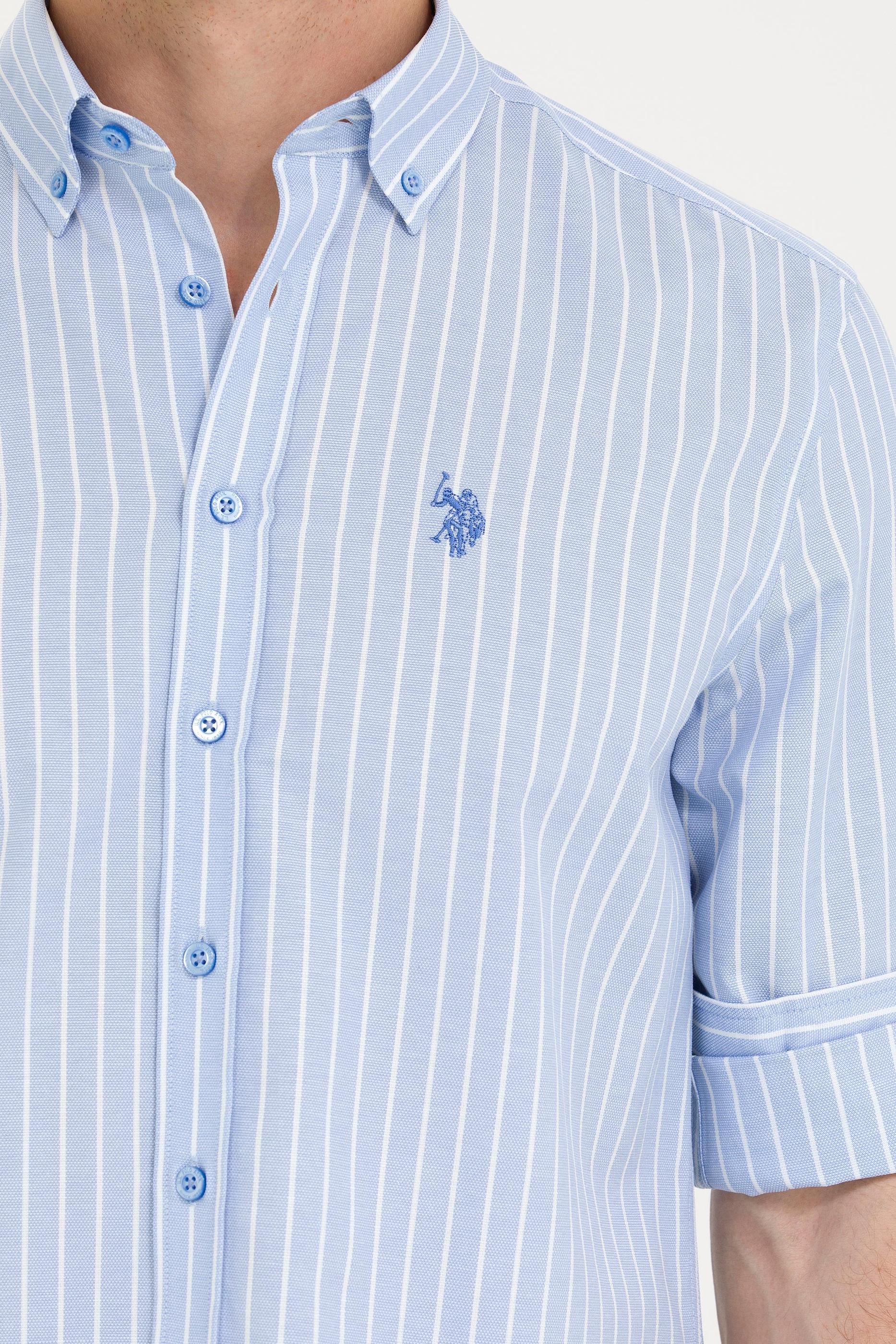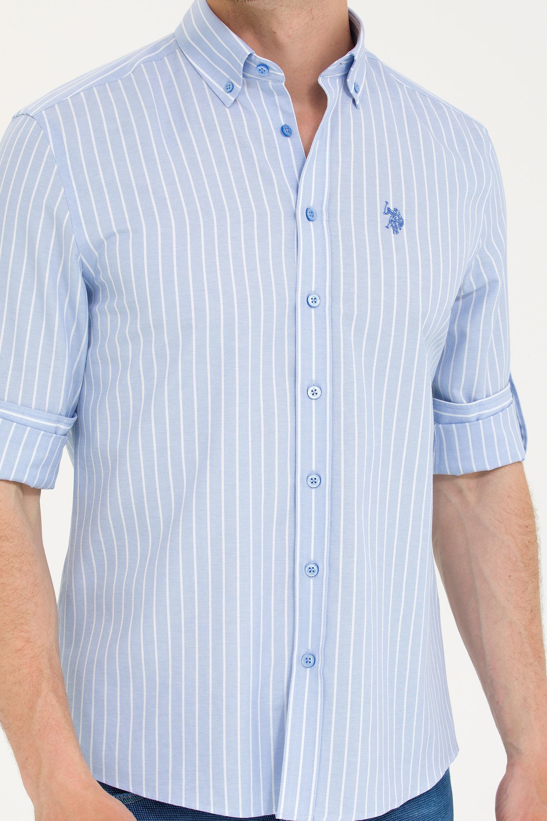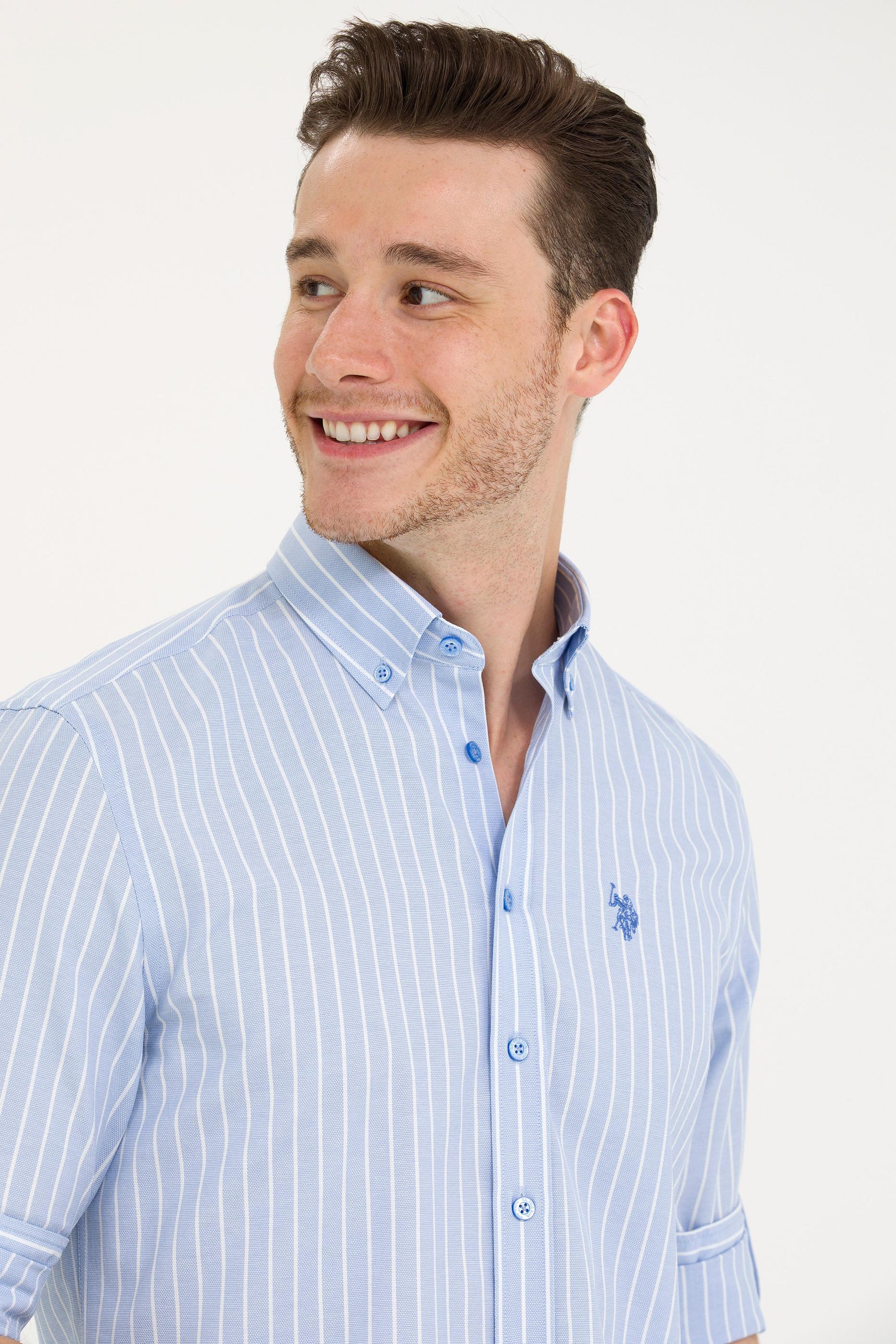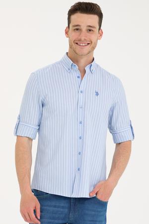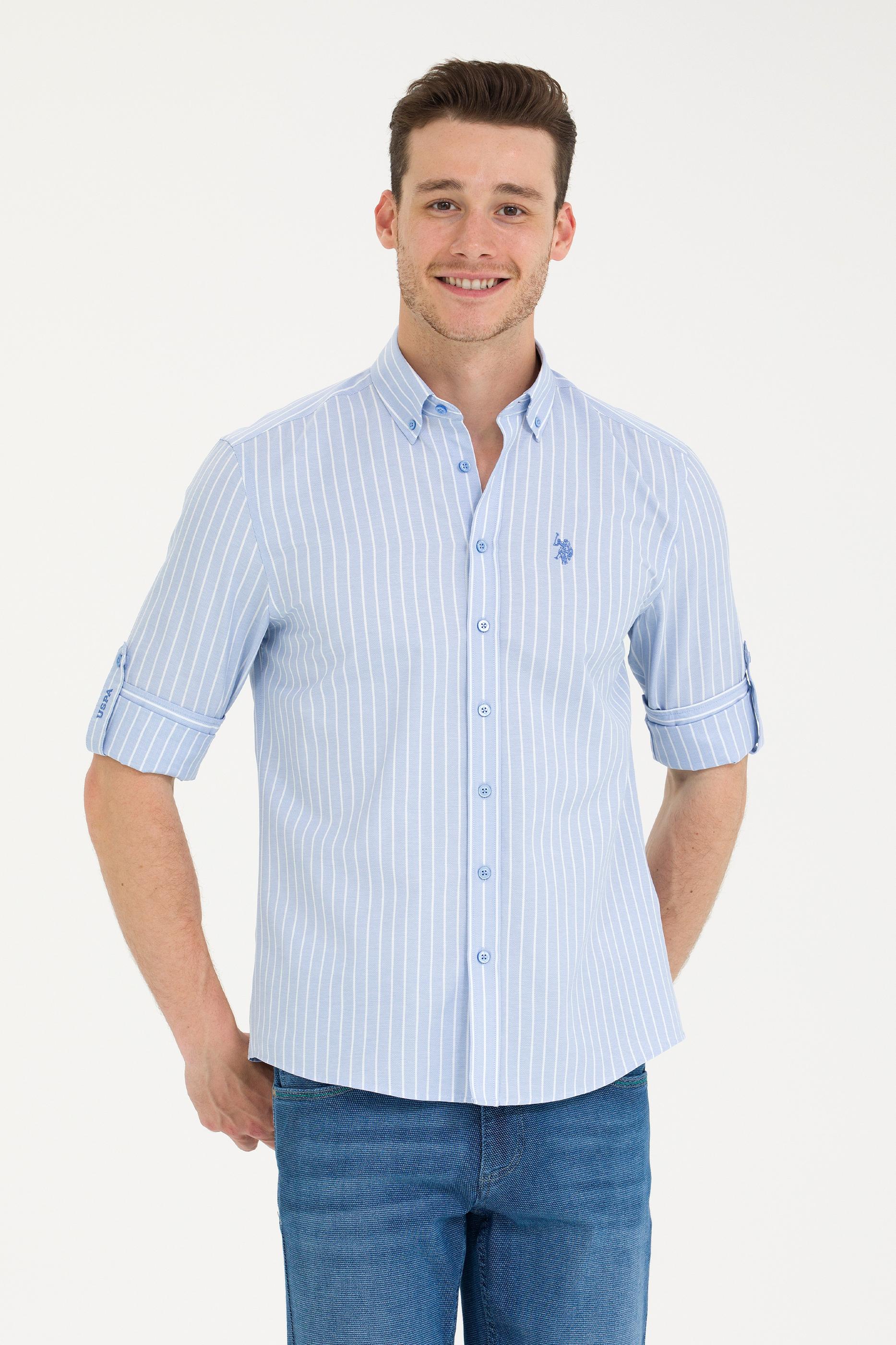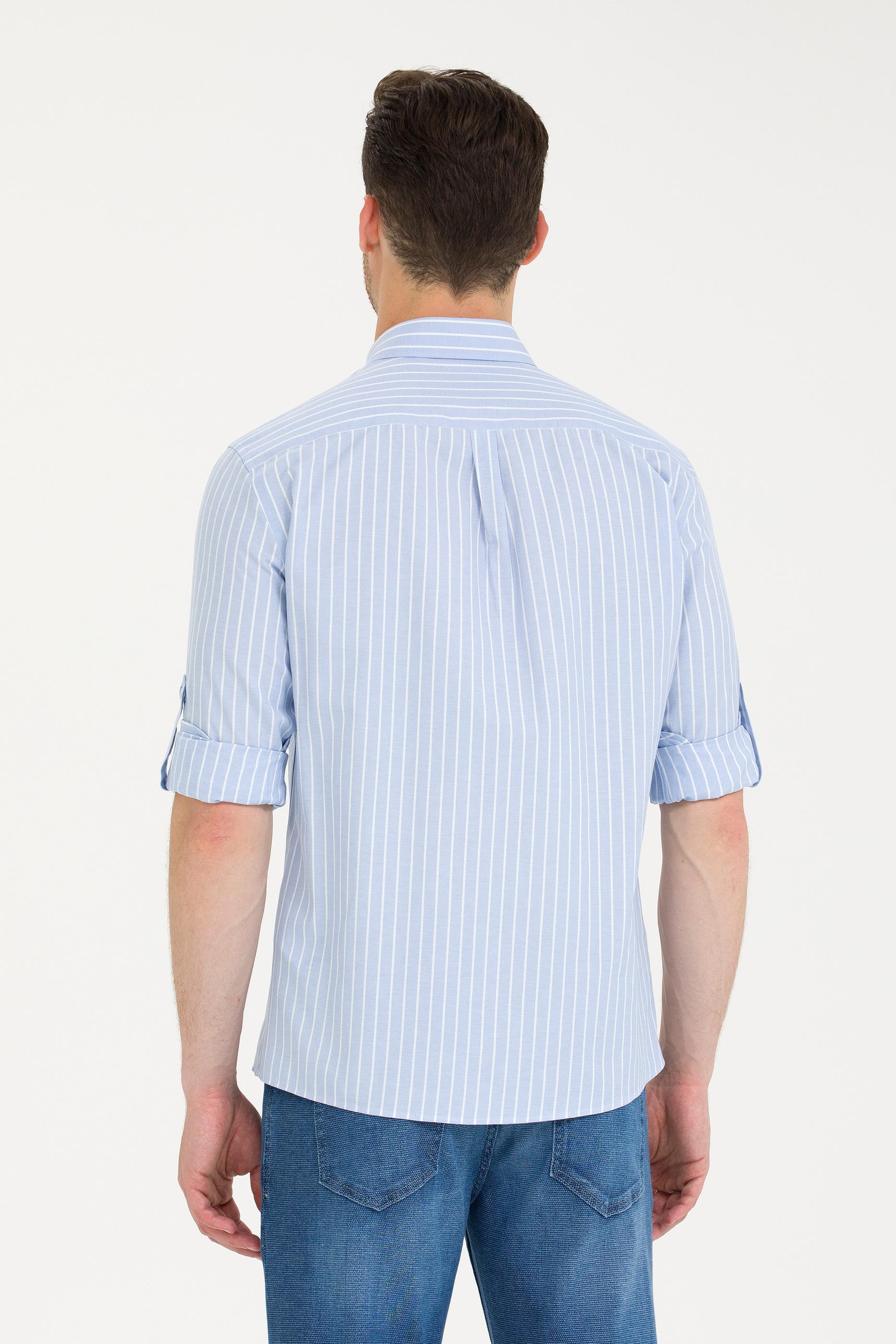 - Erkek Beyaz Çizgili Mavi Gömlek