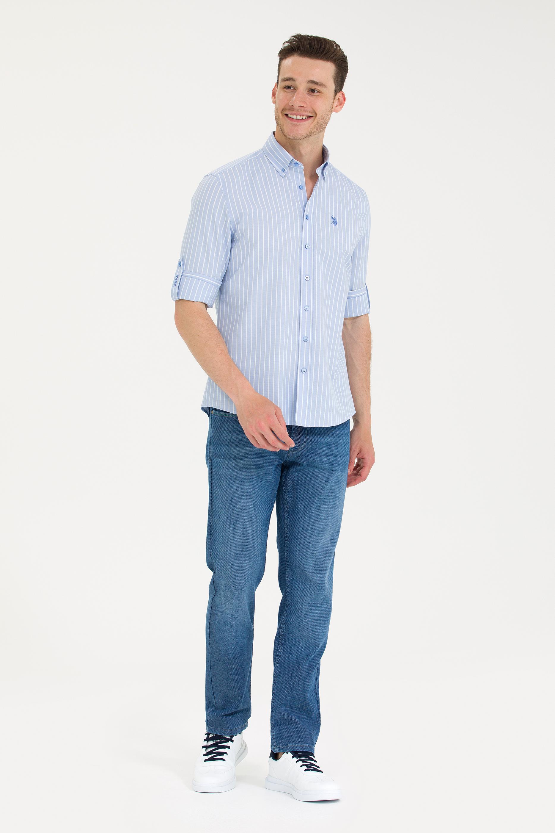 Erkek Beyaz Çizgili Mavi Gömlek