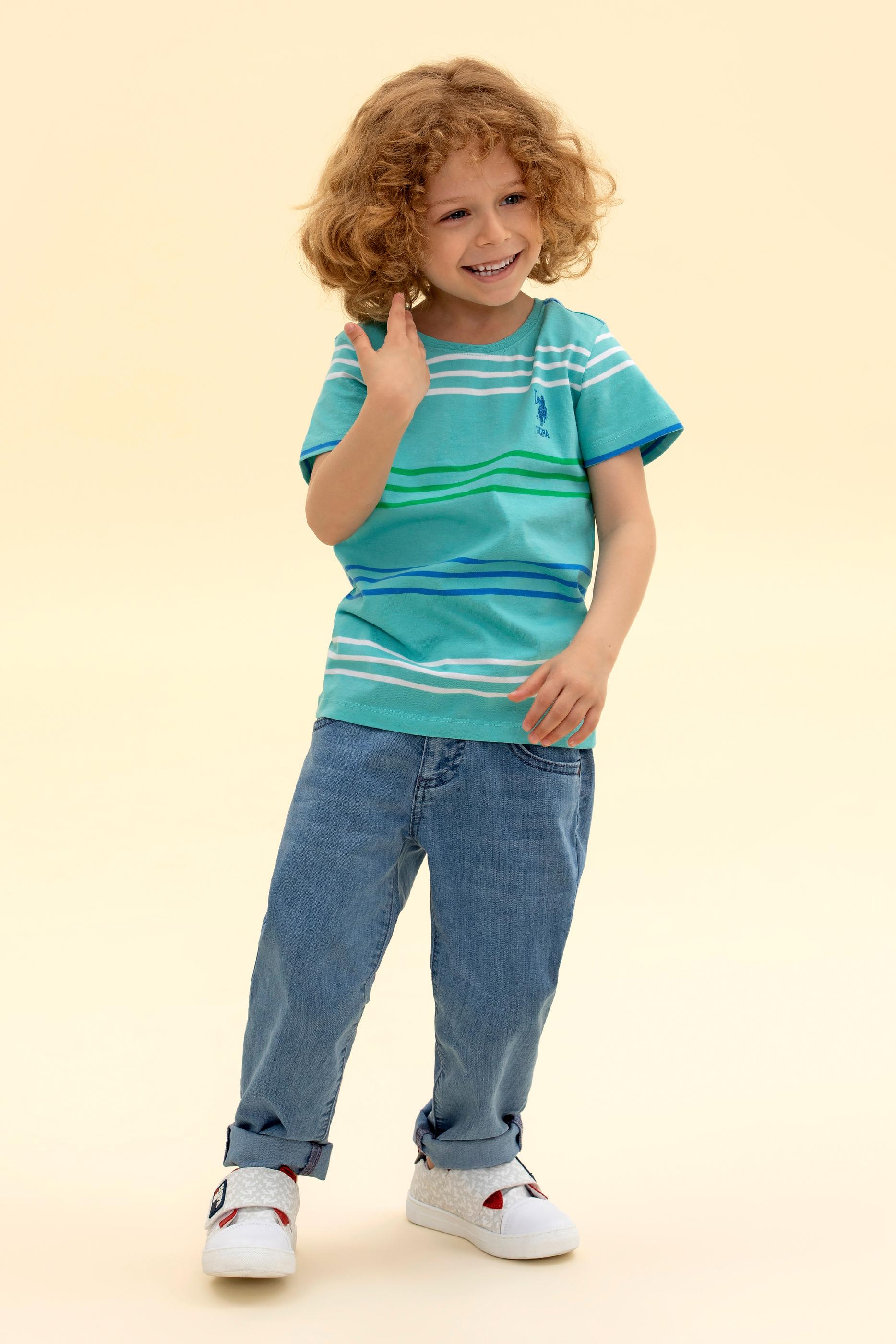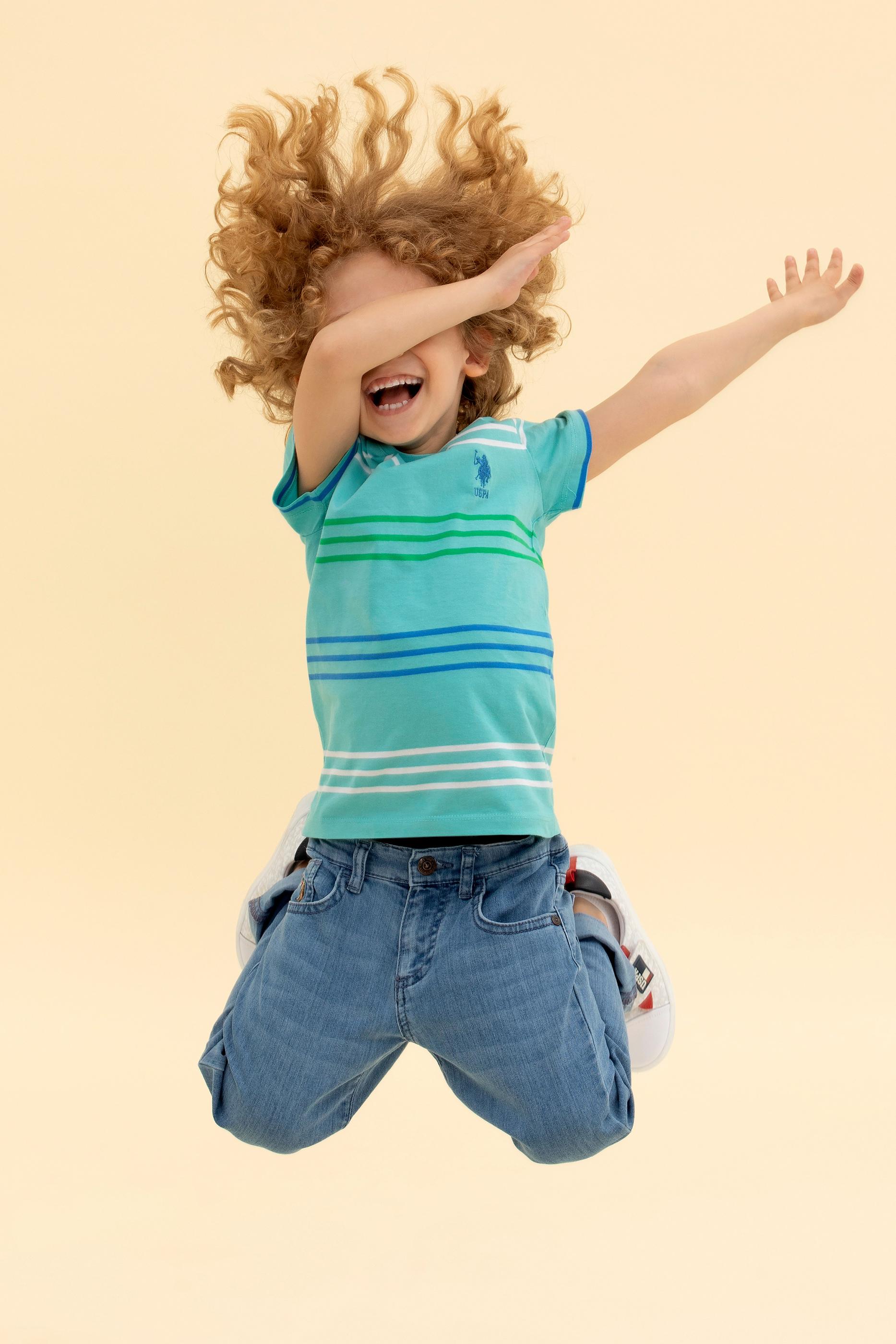 Erkek çocuk tişörtü çocuğunuzun enerjisini yansıtan canlı bir görünüme sahiptir. Çocuk tişörtün üzerindeki renkli çizgi detayları ise ona ekstra bir stil katmakta ve rengini tamamlamaktadır. %100 pamuk olan bu yazlık tişört cildi tahriş etmez ve serin tutar. Bisiklet yaka tişörtün standart fit kalıbı çocuğunuza tam oturmasını sağlar. Online alışverişe özel olarak sunulan bu ürün ile rahatlık, dayanıklılık ve şıklık bir arada.