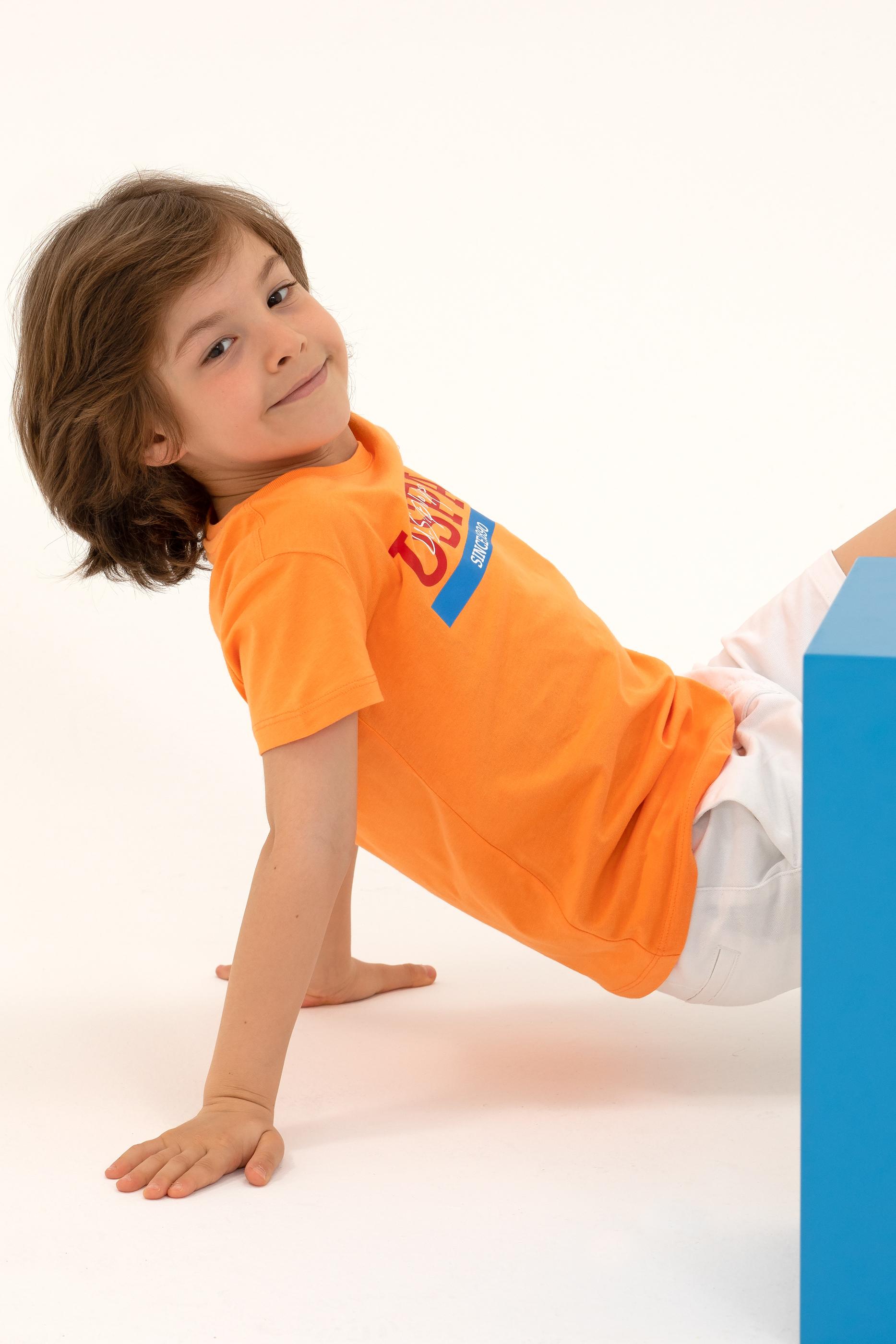 Çocuk Turuncu Bisiklet Yaka Tişört