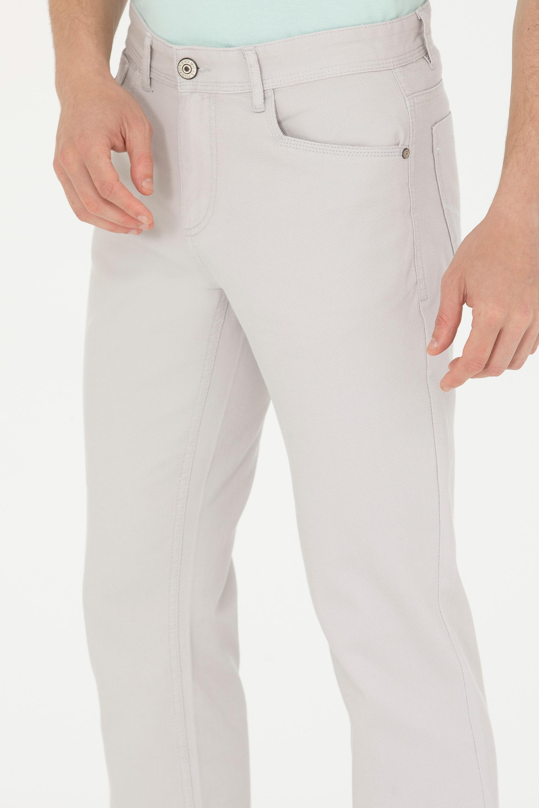 Erkek Regular Fit Açık Gri Kanvas / Chino Pantolon