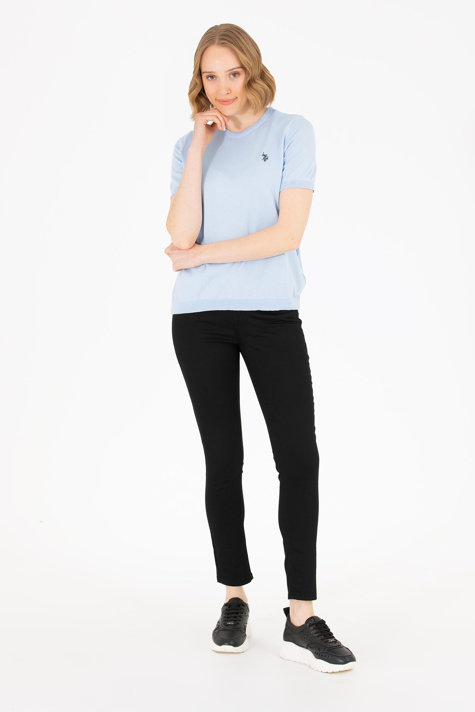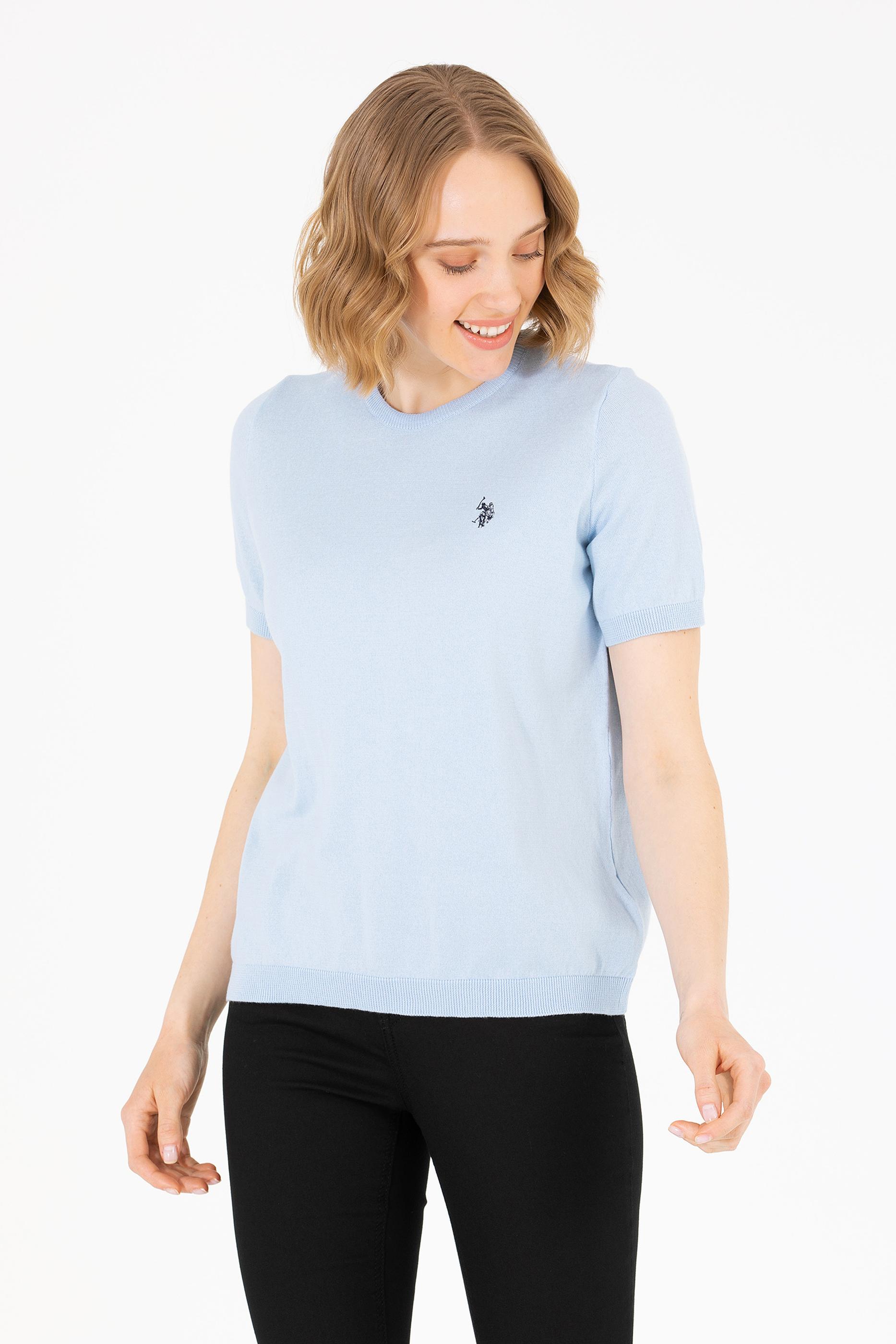 Kadın Açık Mavi Bisiklet Yaka Kazak