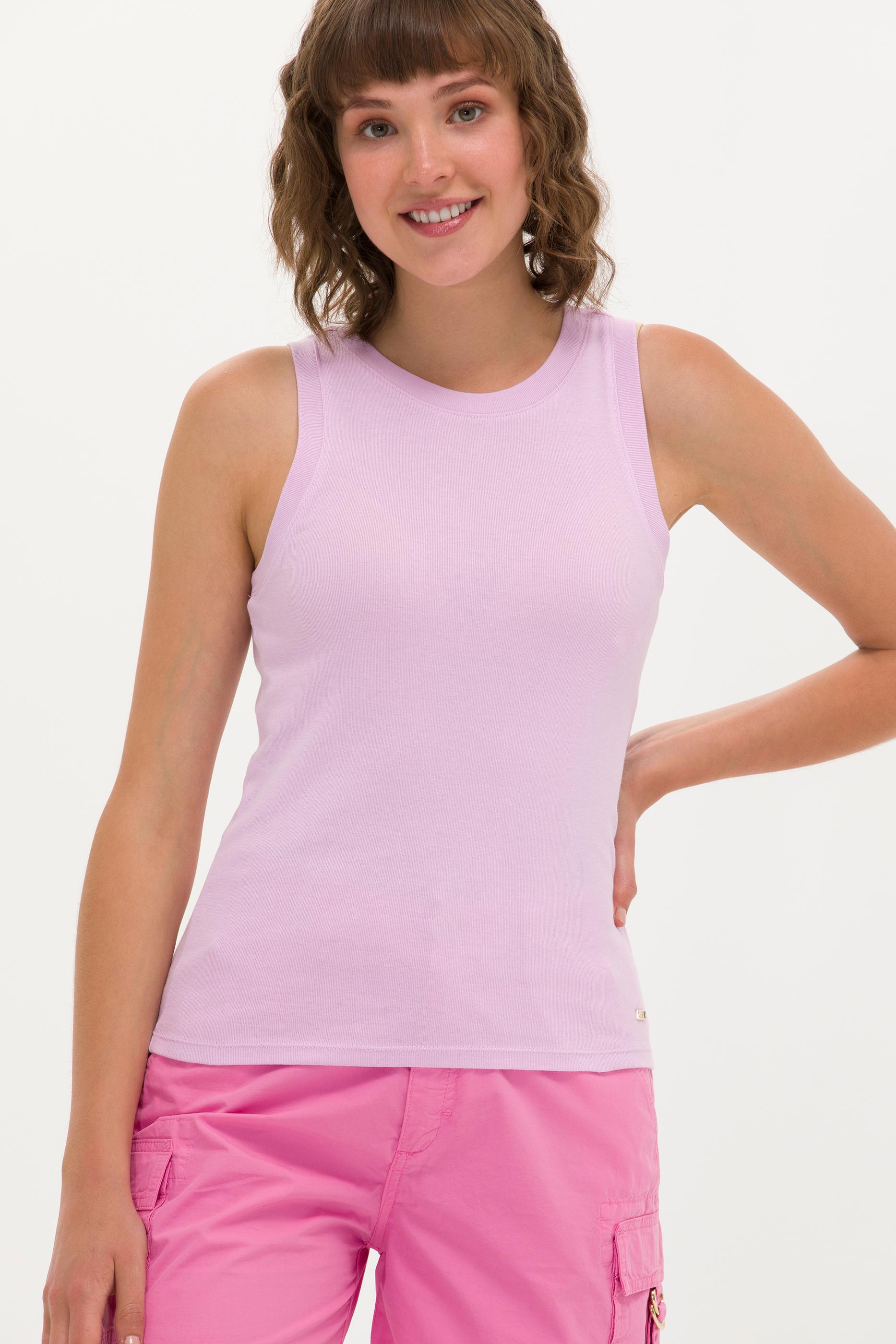 Kadın Manolya Bisiklet Yaka Kolsuz Tişört - 50266320073