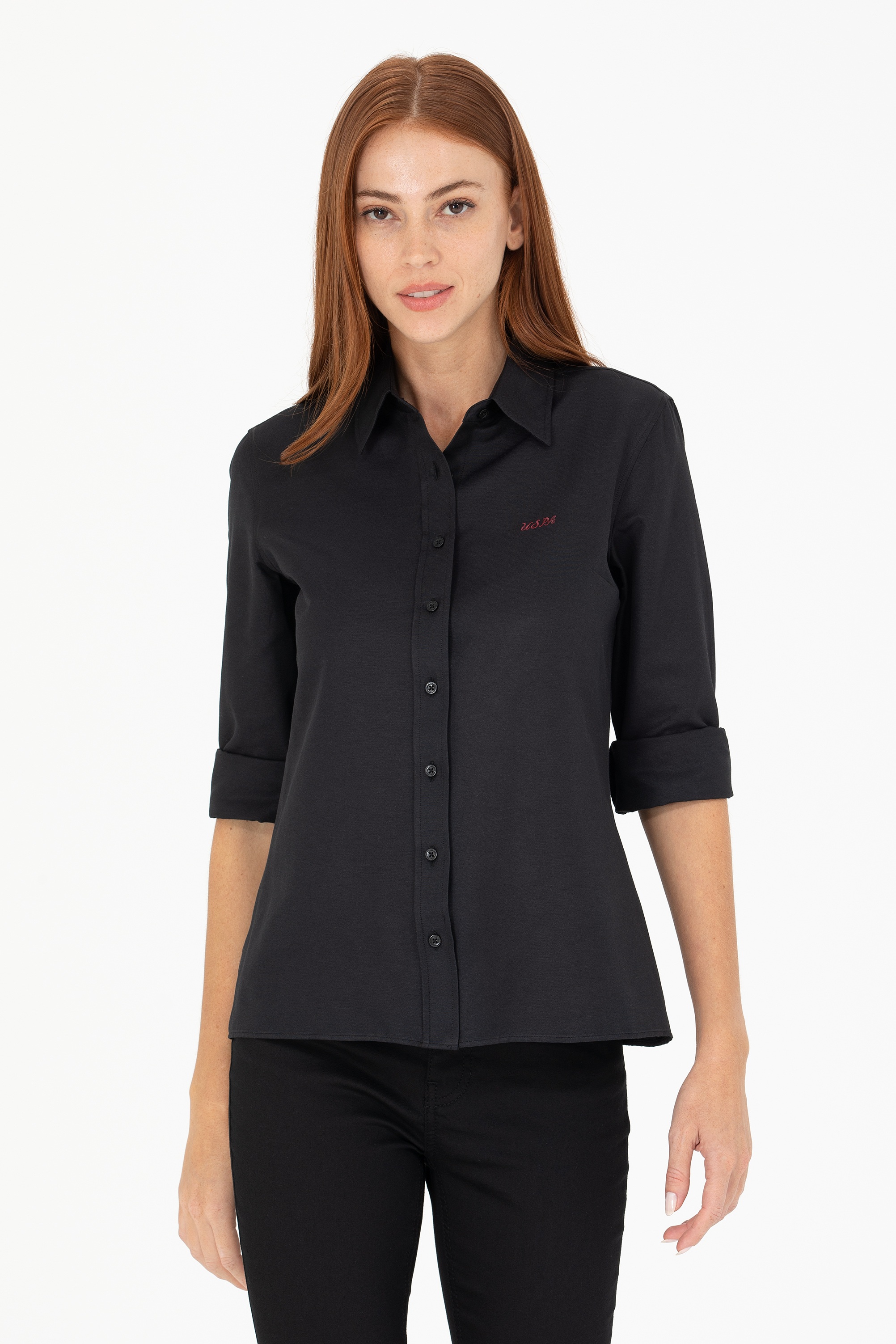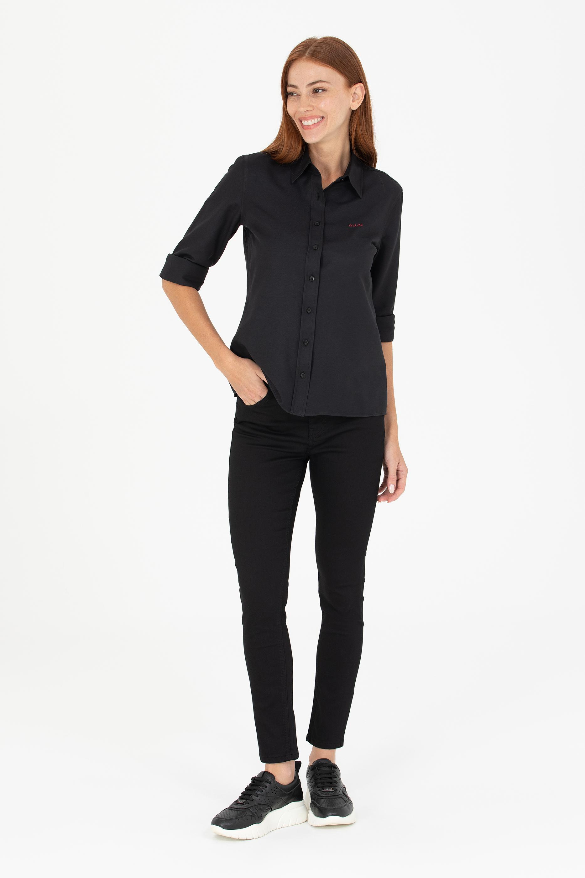 Kadın Siyah Uzun Kollu Basic Gömlek