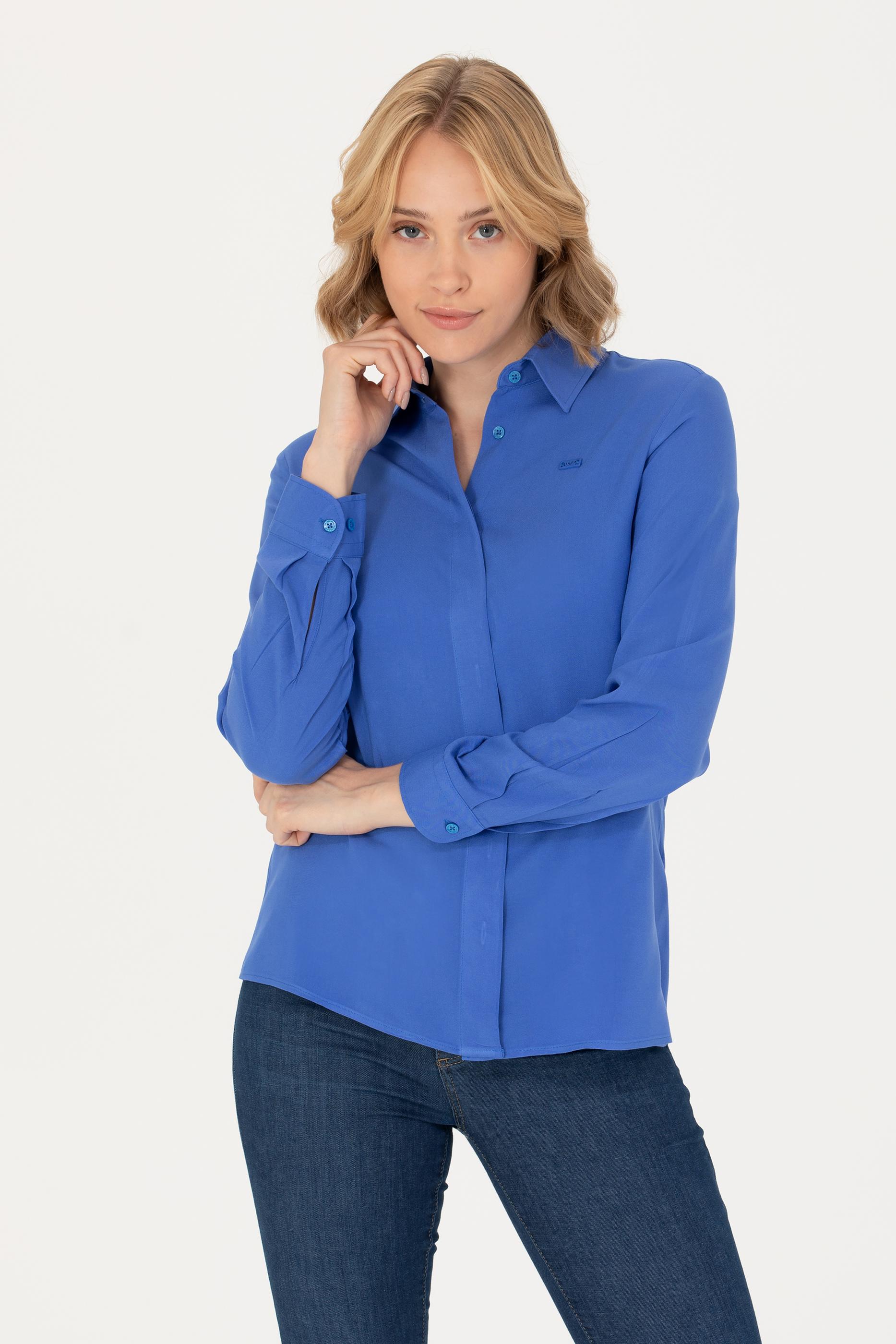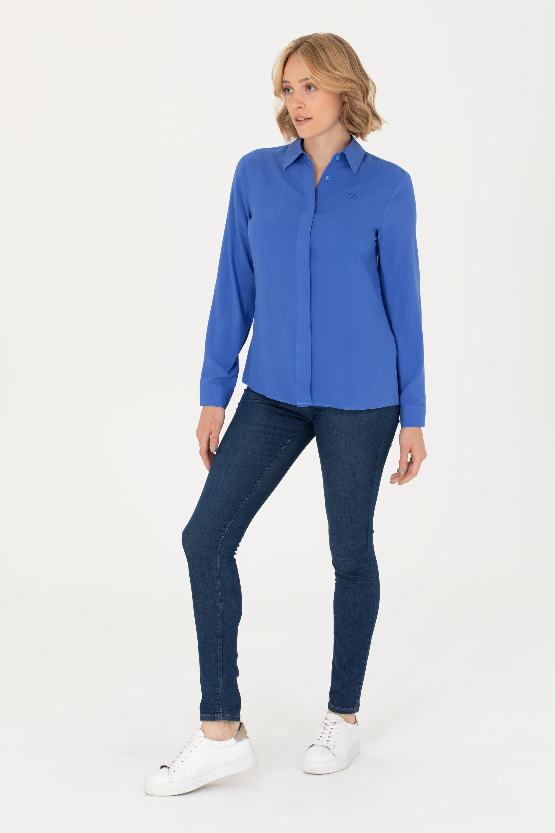 - Kadın Mavi Uzun Kollu Gömlek