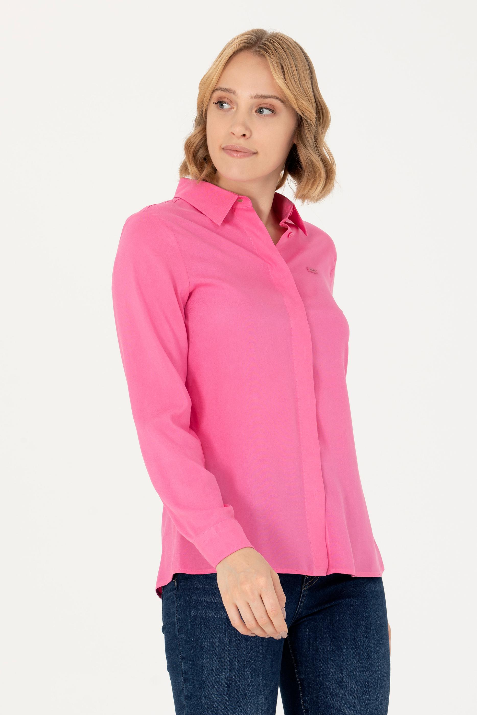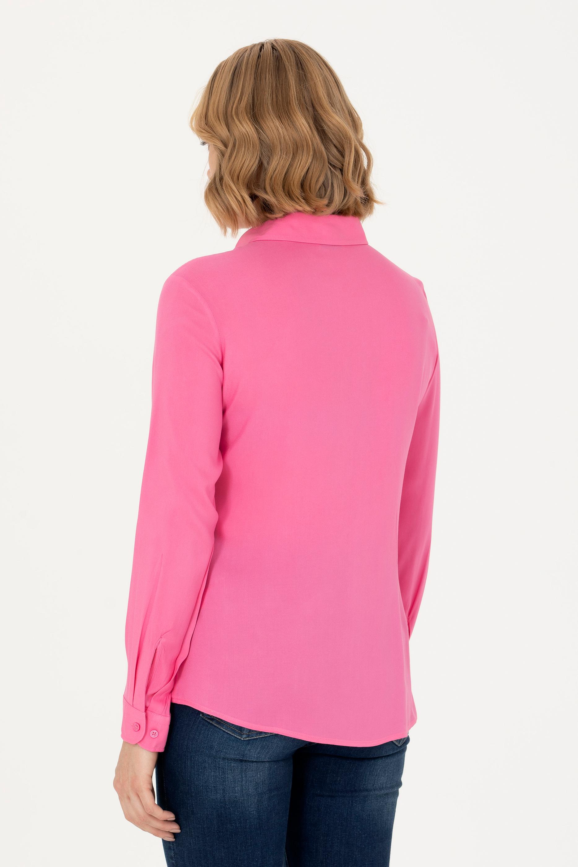 Online alışverişe özel sunulan kadın gömlekte kullanılan viskoz kumaş, yumuşak dokusuyla teninize hoş bir his verir. Lacivert renk bayan gömleklerine zamanın ötesinde şık bir görünüm sunar ve herhangi bir kombinde kolaylıkla kullanabileceğiniz uyumlu bir renktir. Slim kalıp sayesinde vücudunuza tam oturan bayan gömlek modelleri uzun kollu olmasıyla pek çok ortamda rahatlıkla giyilebilir.