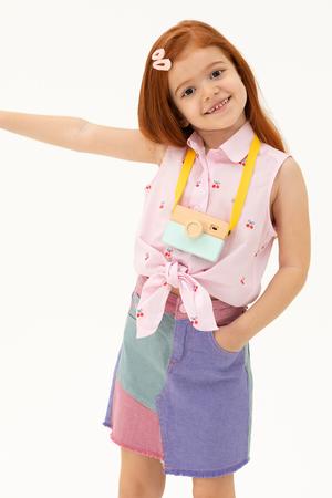Şık ve eğlenceli kombinlerinizin vazgeçilmezi olacak kiraz desenli kız çocuk gömlek modelimizle karşınızdayız. Eteklerle, pantolonlarla ve şortlarla rahatlıkla kombinleyebileceğiniz gömlek modelimiz, belden bağlamalı yapısı sayesinde, çocuğunuzun şıklığına eşsiz bir dokunuş yapar.