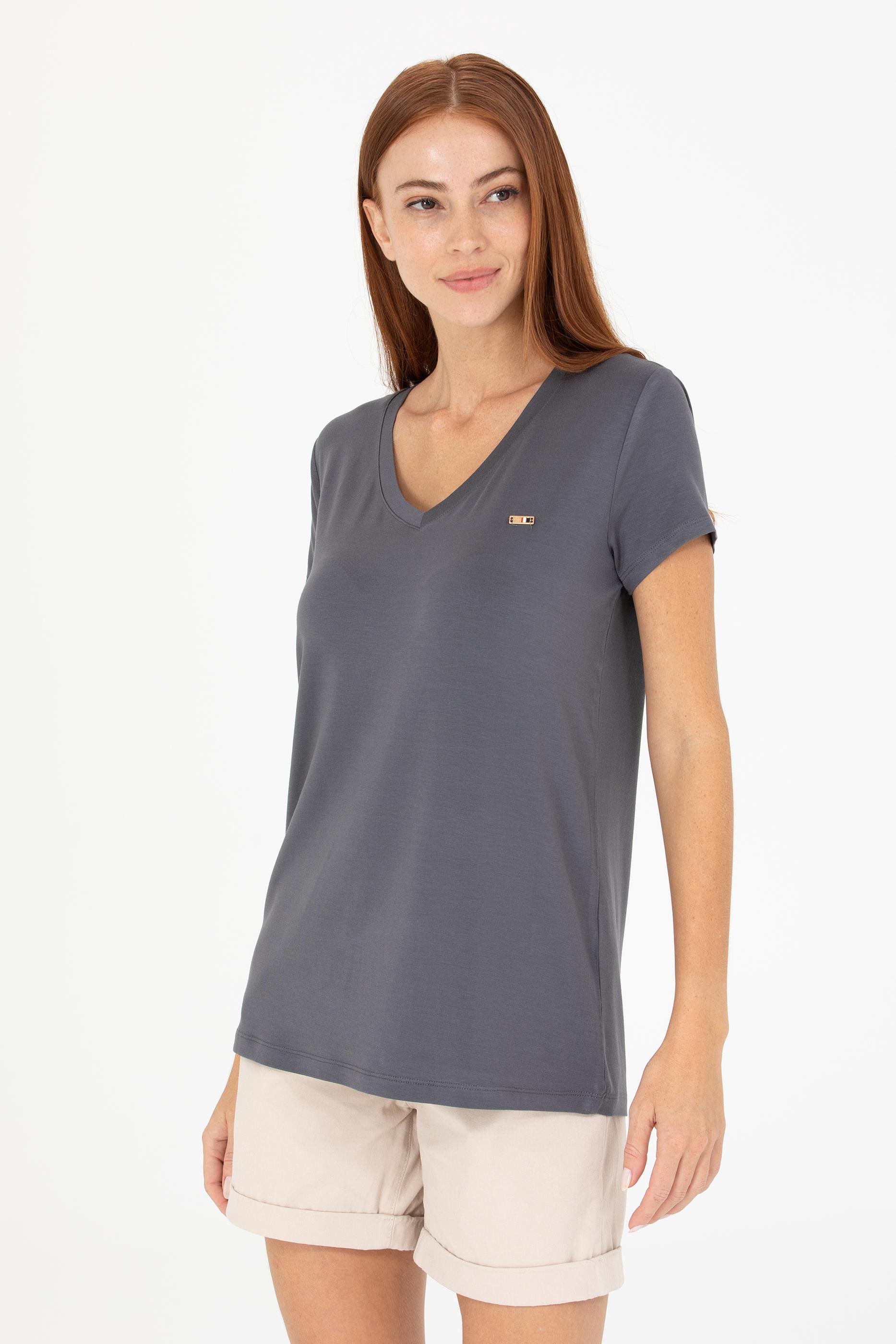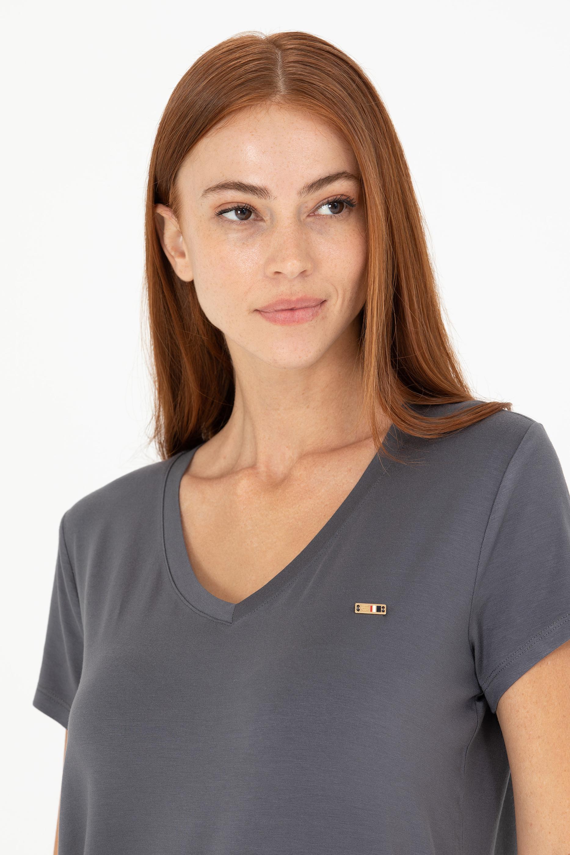 Kadın Antrasit V - Yaka Basic Tişört