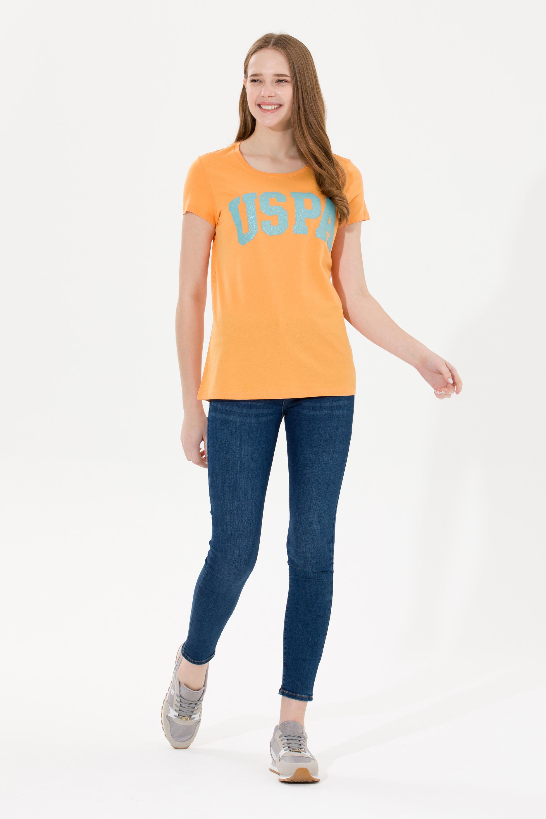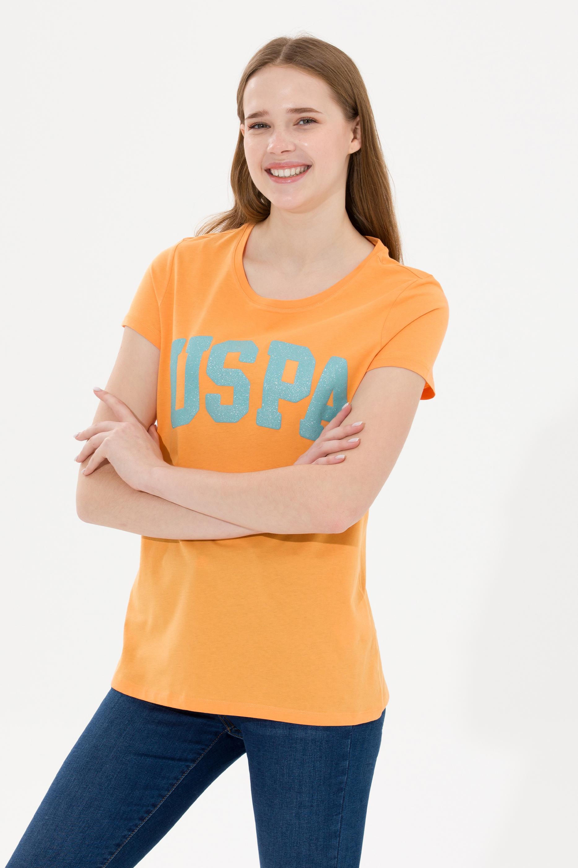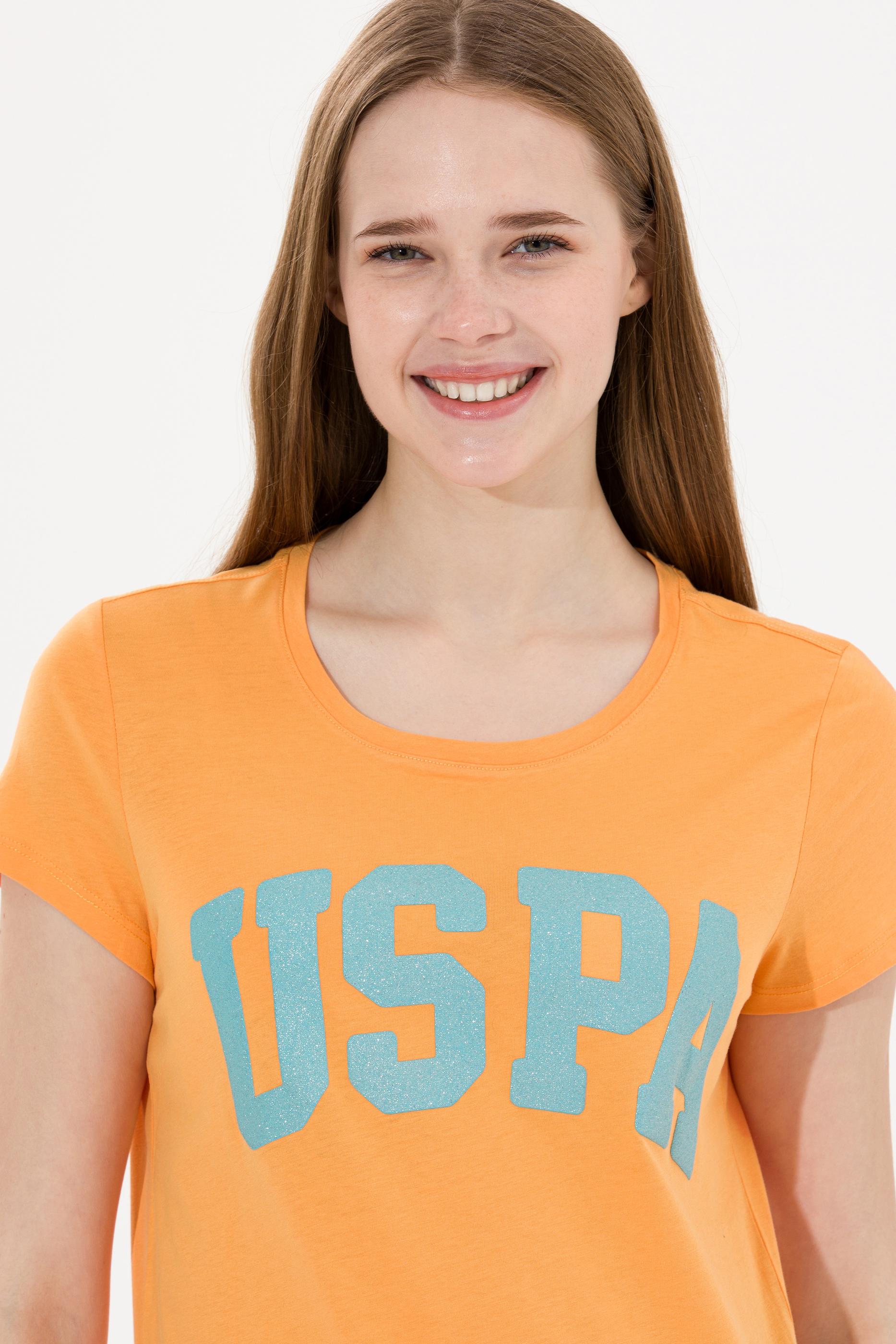 Kadın Turuncu Bisiklet Yaka Tişört