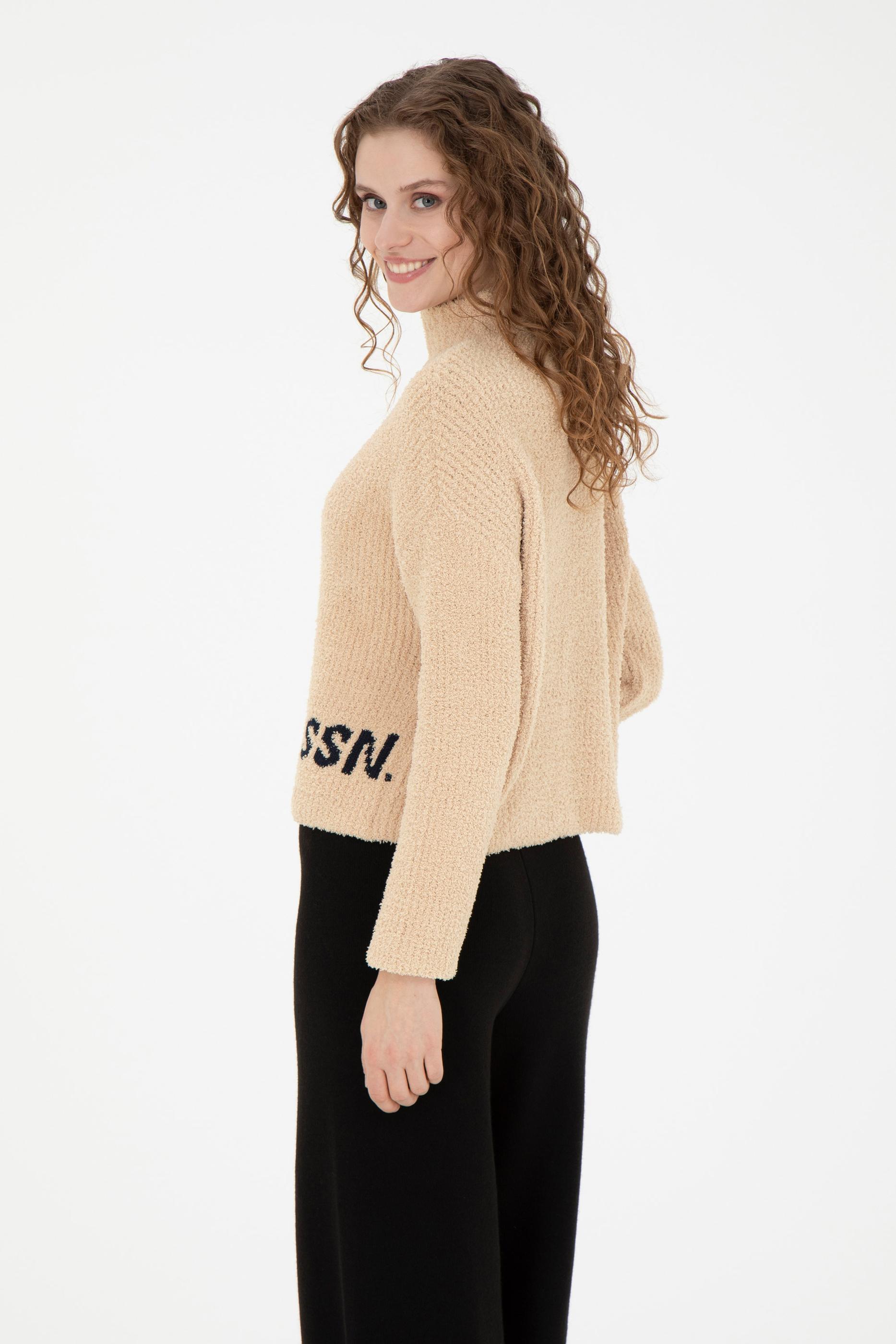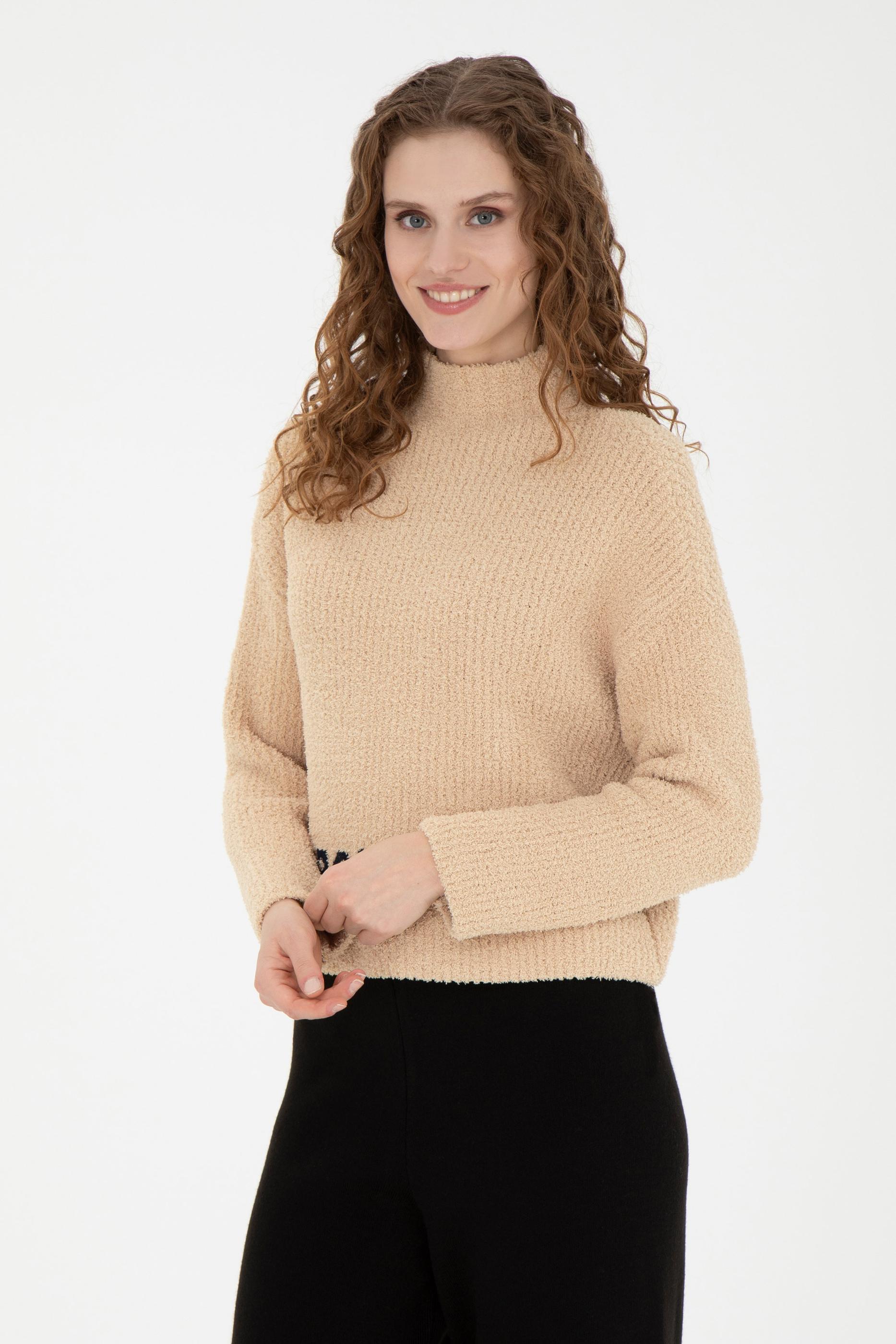 Kadın Kum Melanj Balıkçı Yaka Kazak