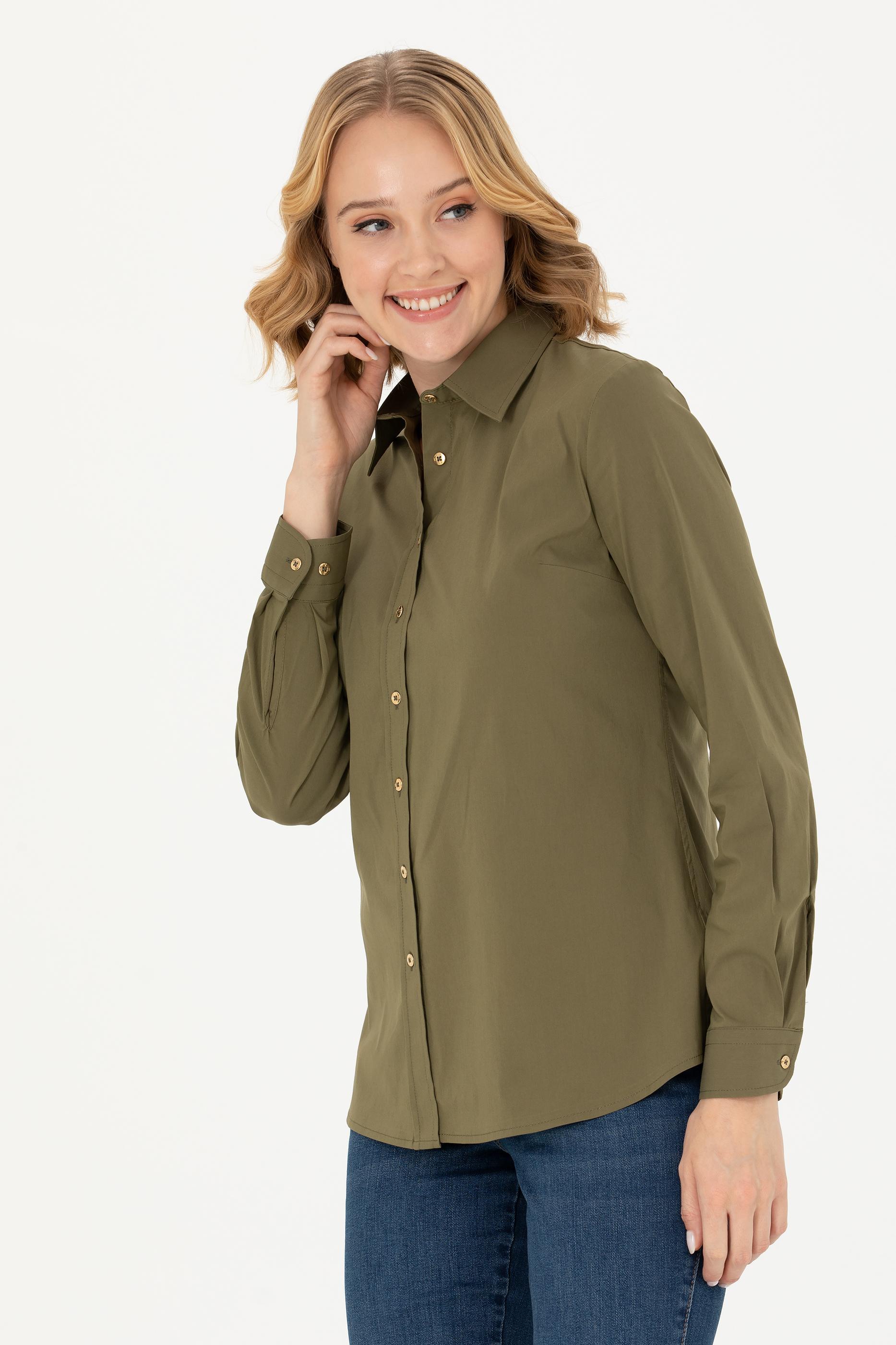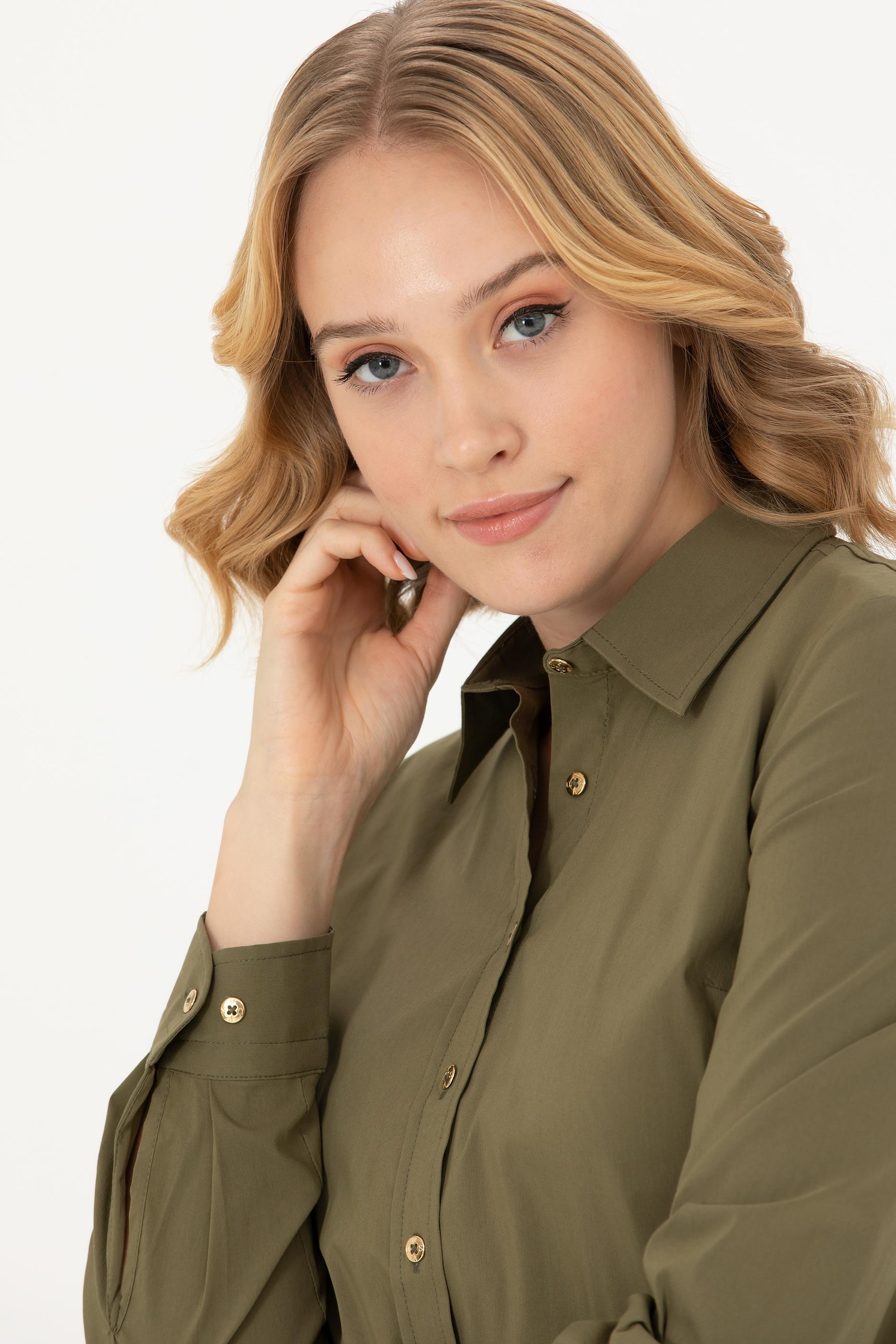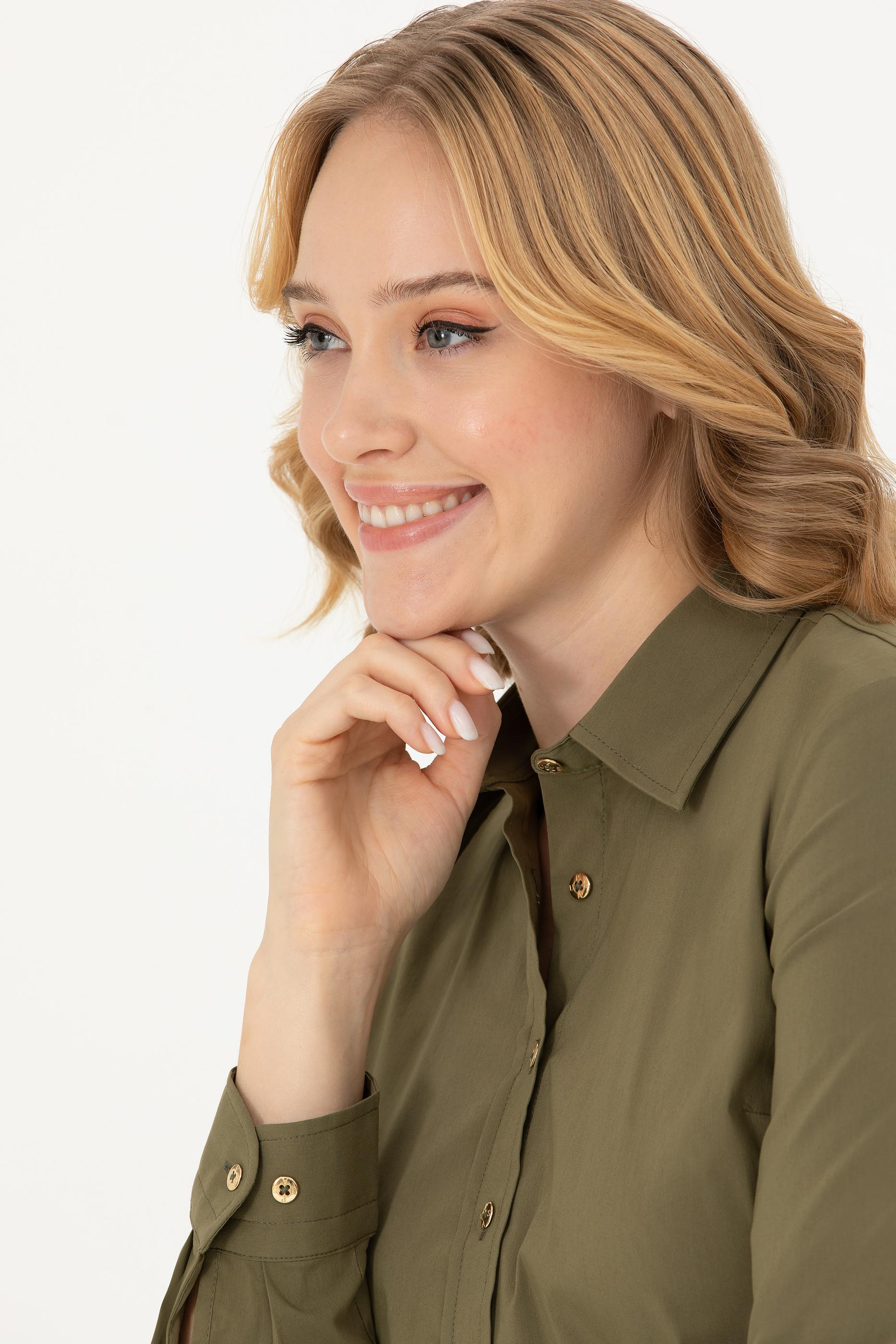 - Kadın Haki Uzun Kollu Basic Gömlek