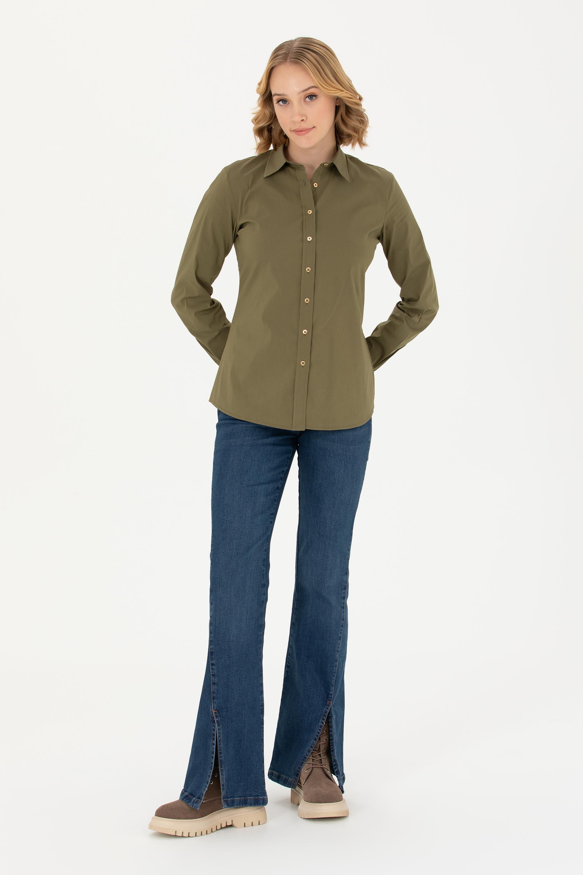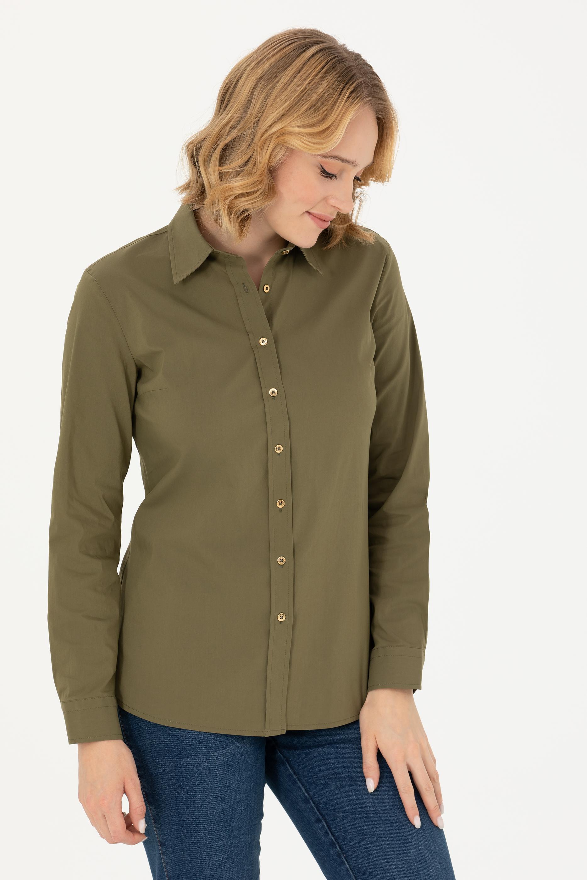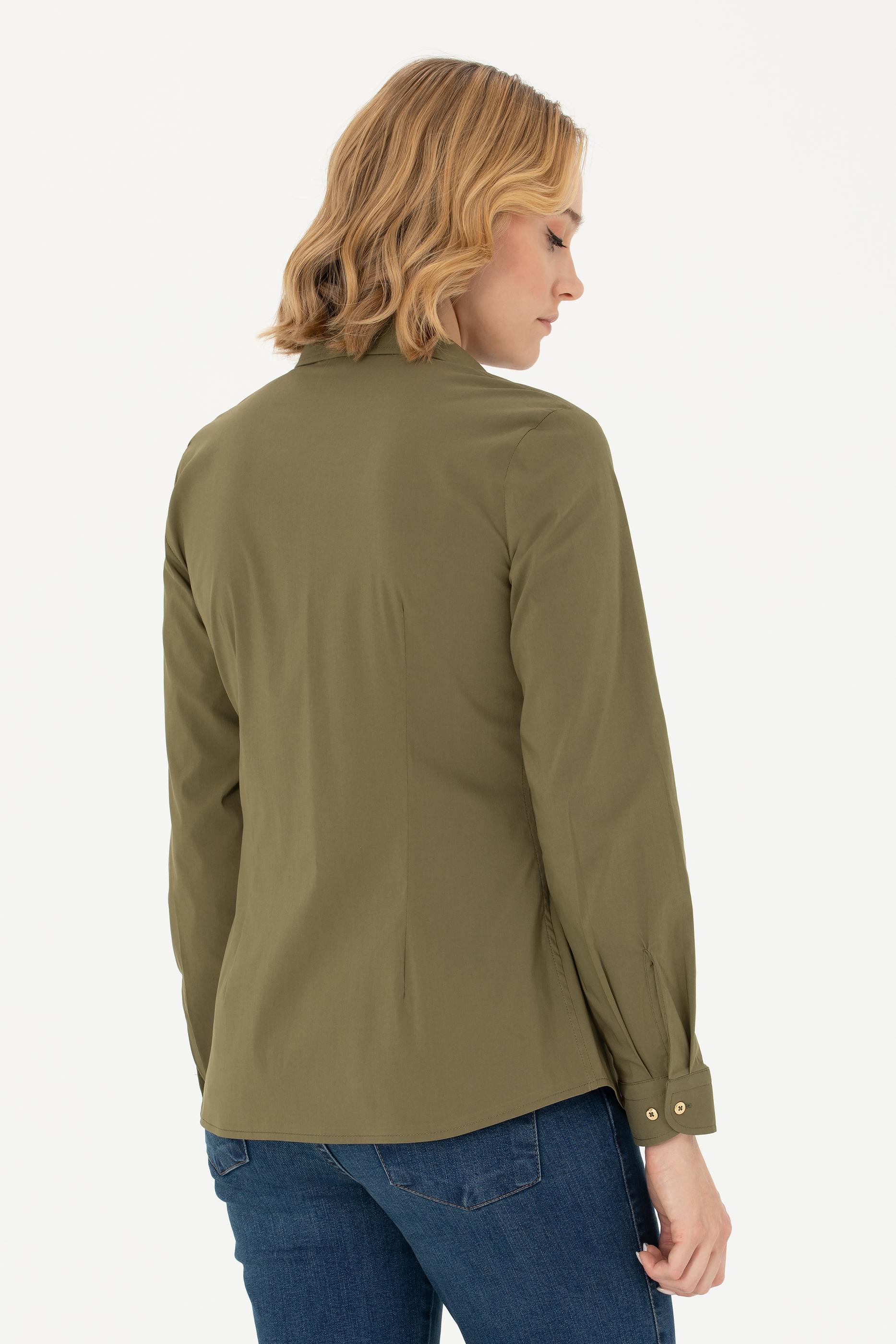 - Kadın Haki Uzun Kollu Basic Gömlek