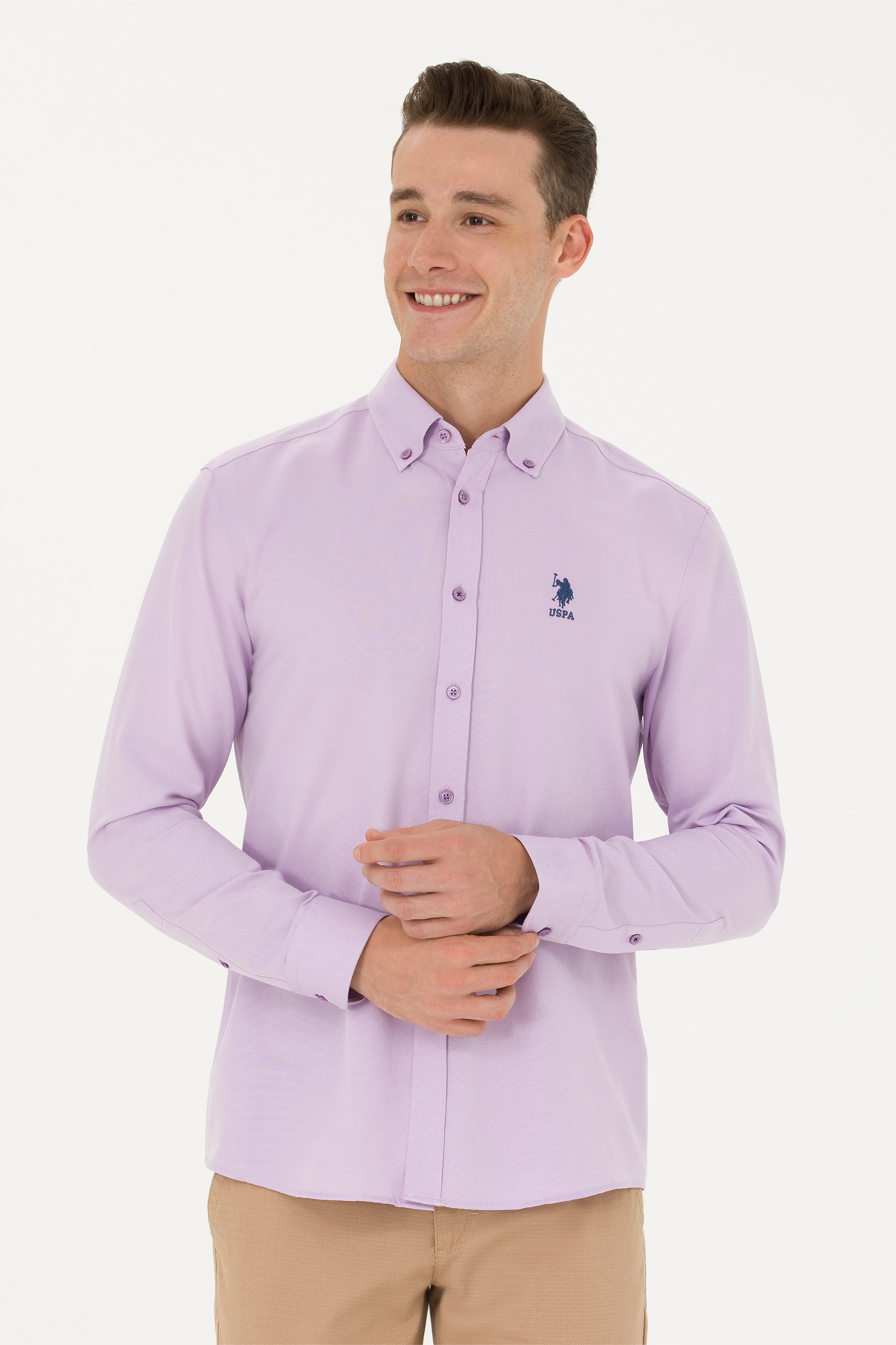 - Erkek Lila Uzun Kollu Basic Gömlek