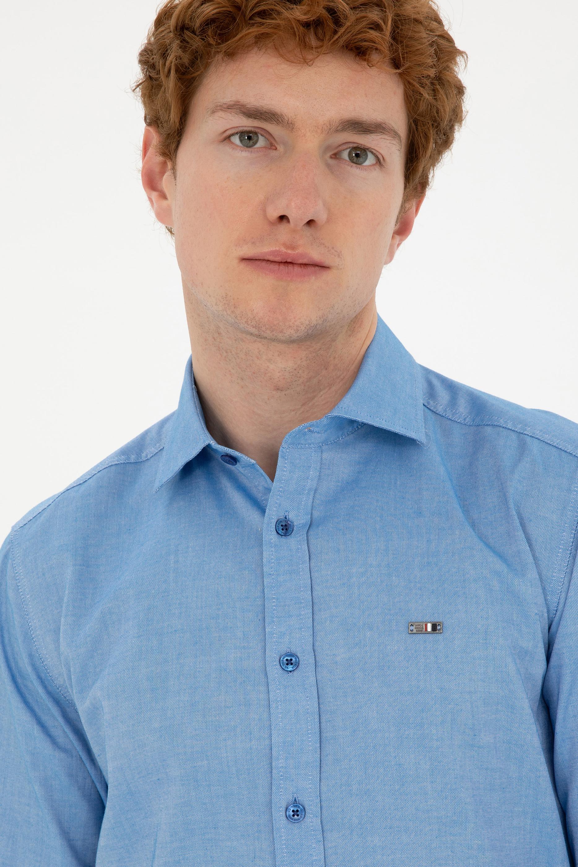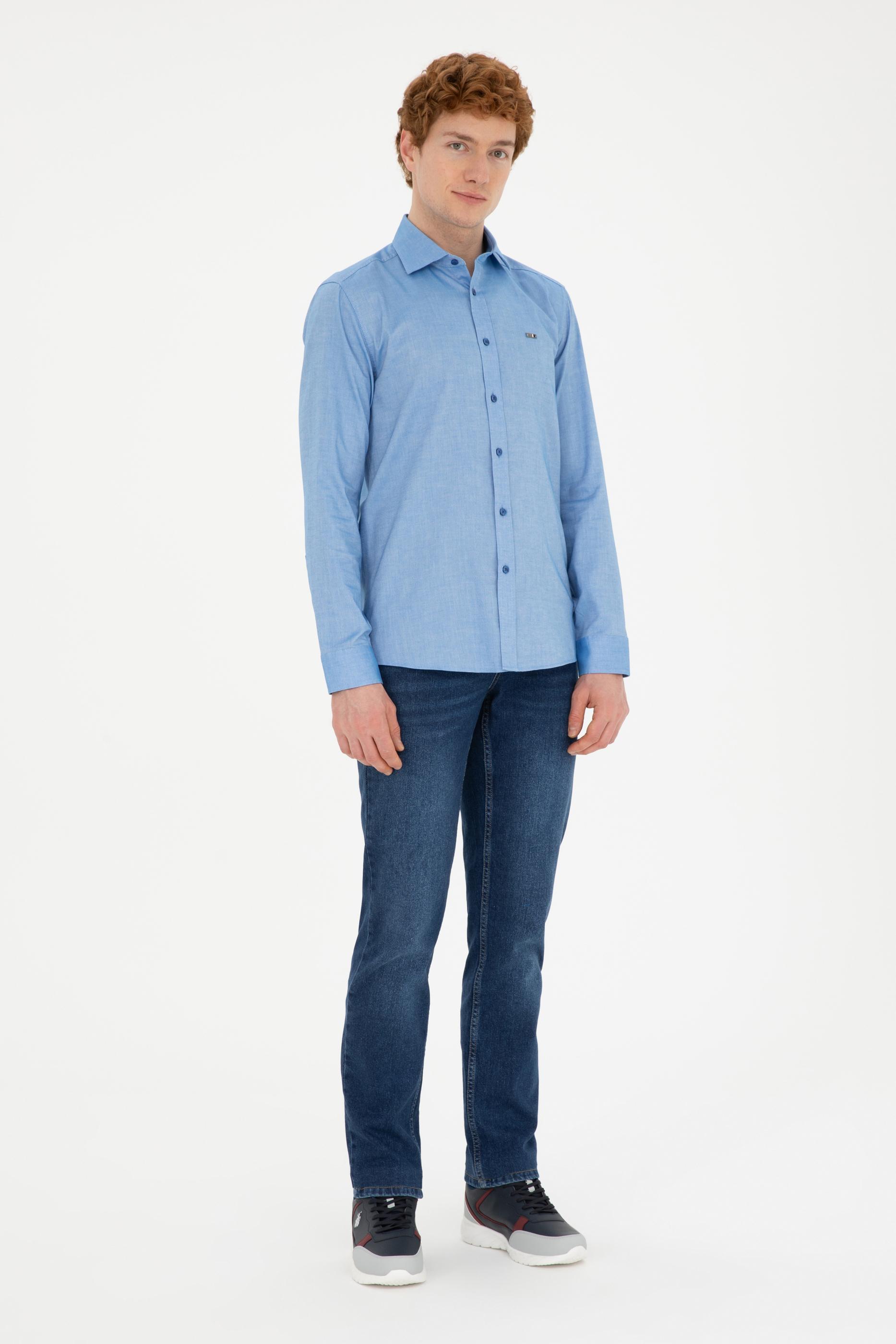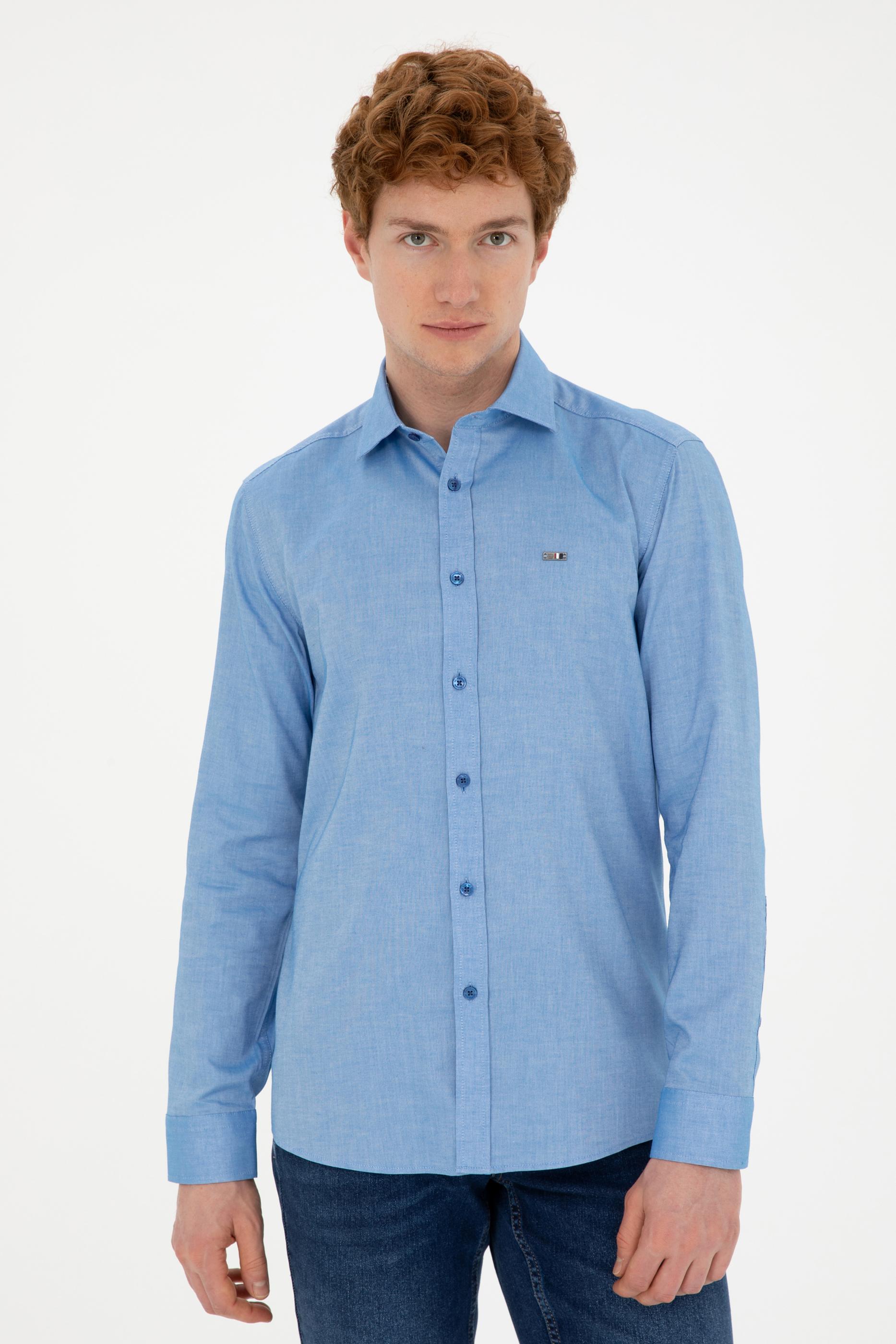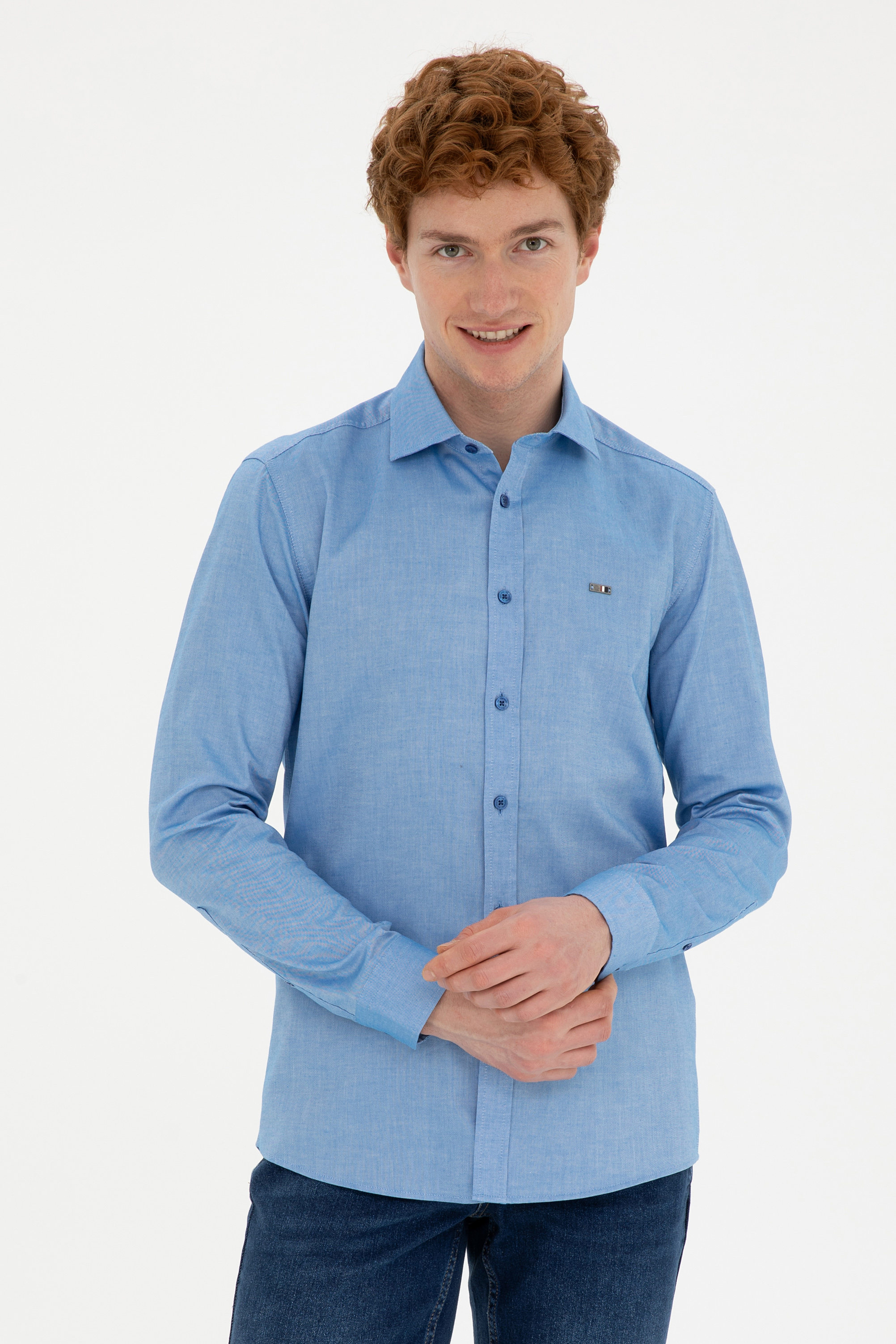 - Erkek Saks Uzun Kollu Basic Gömlek