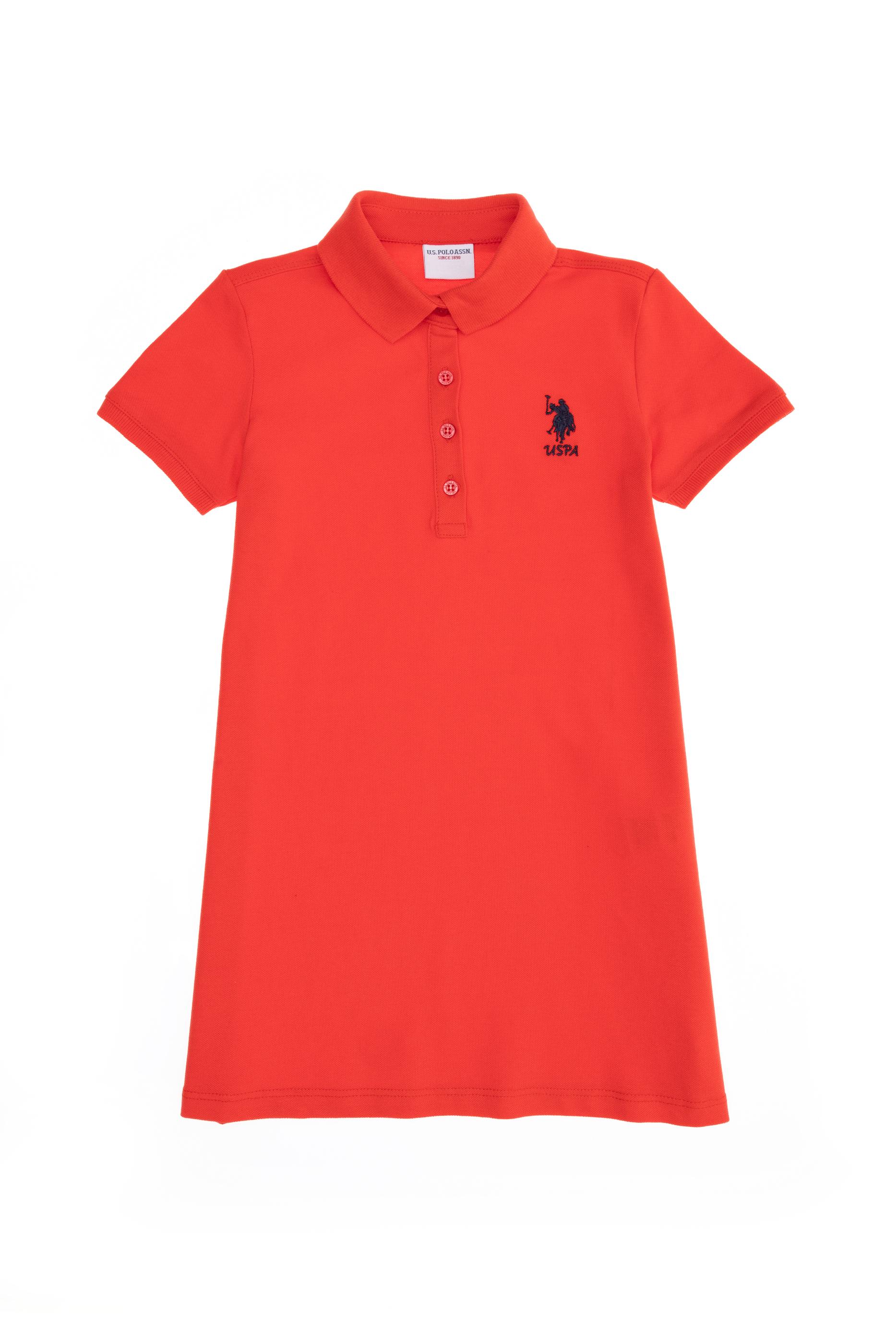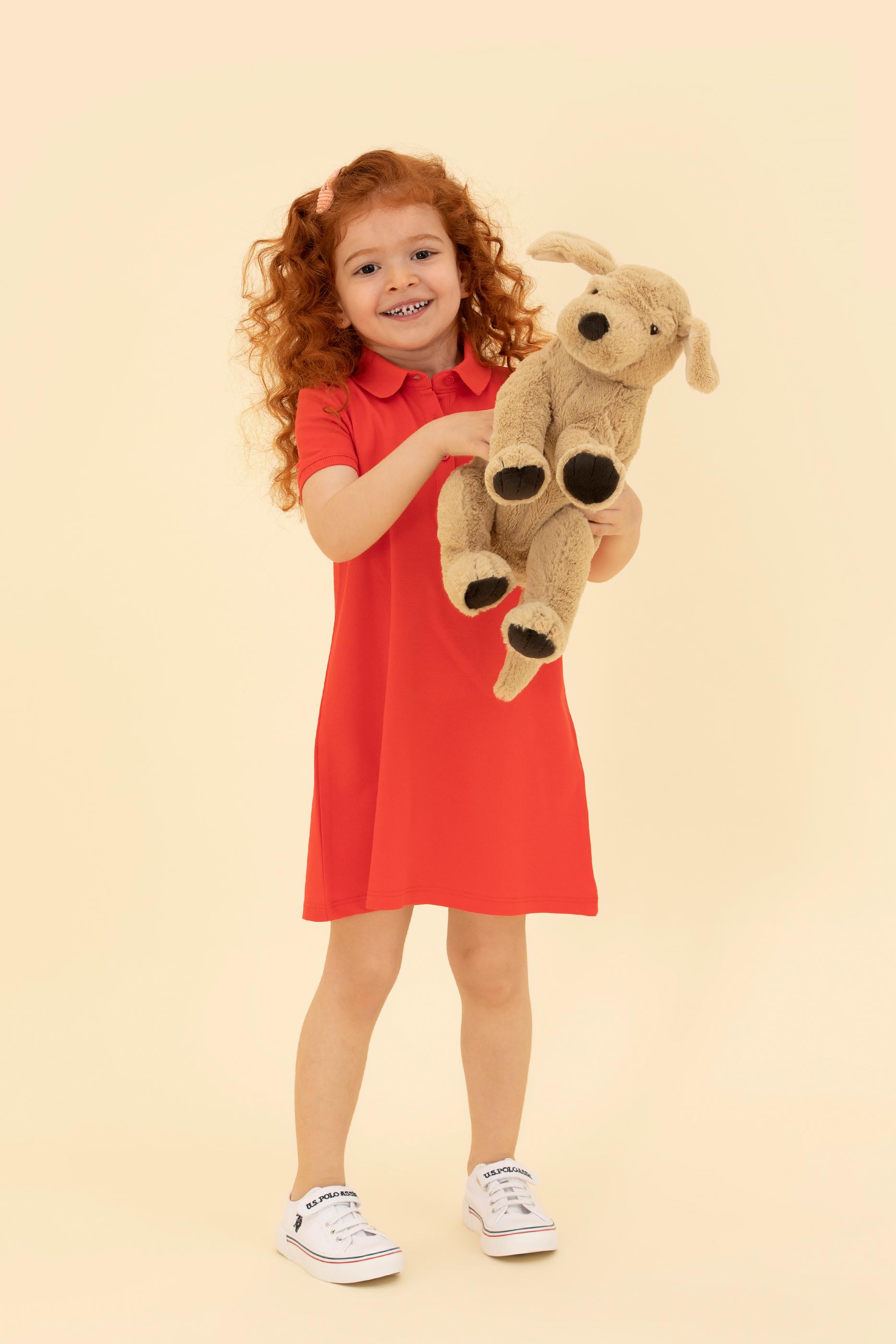 - Kız Çocuk Kırmızı Polo Yaka Örme Elbise