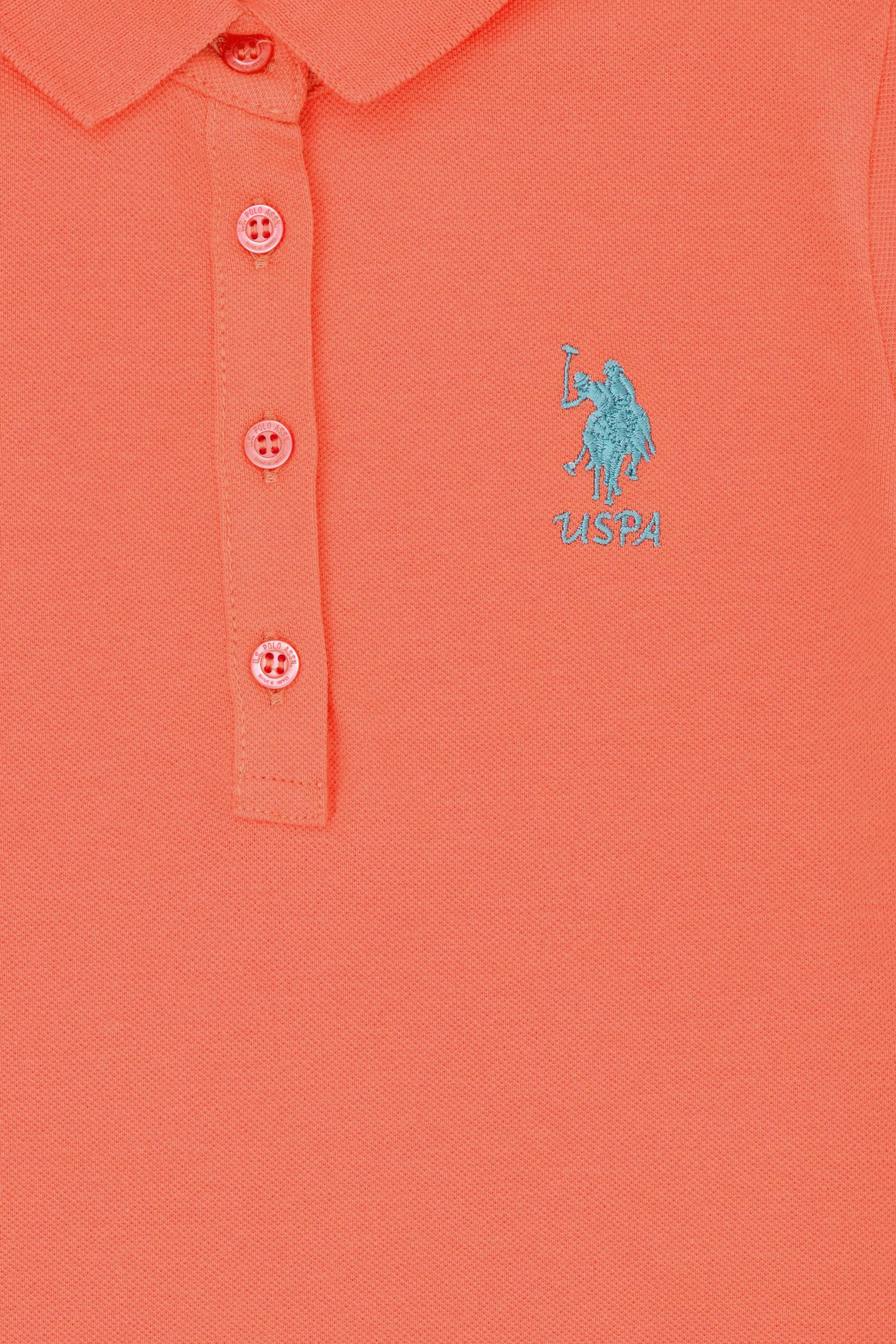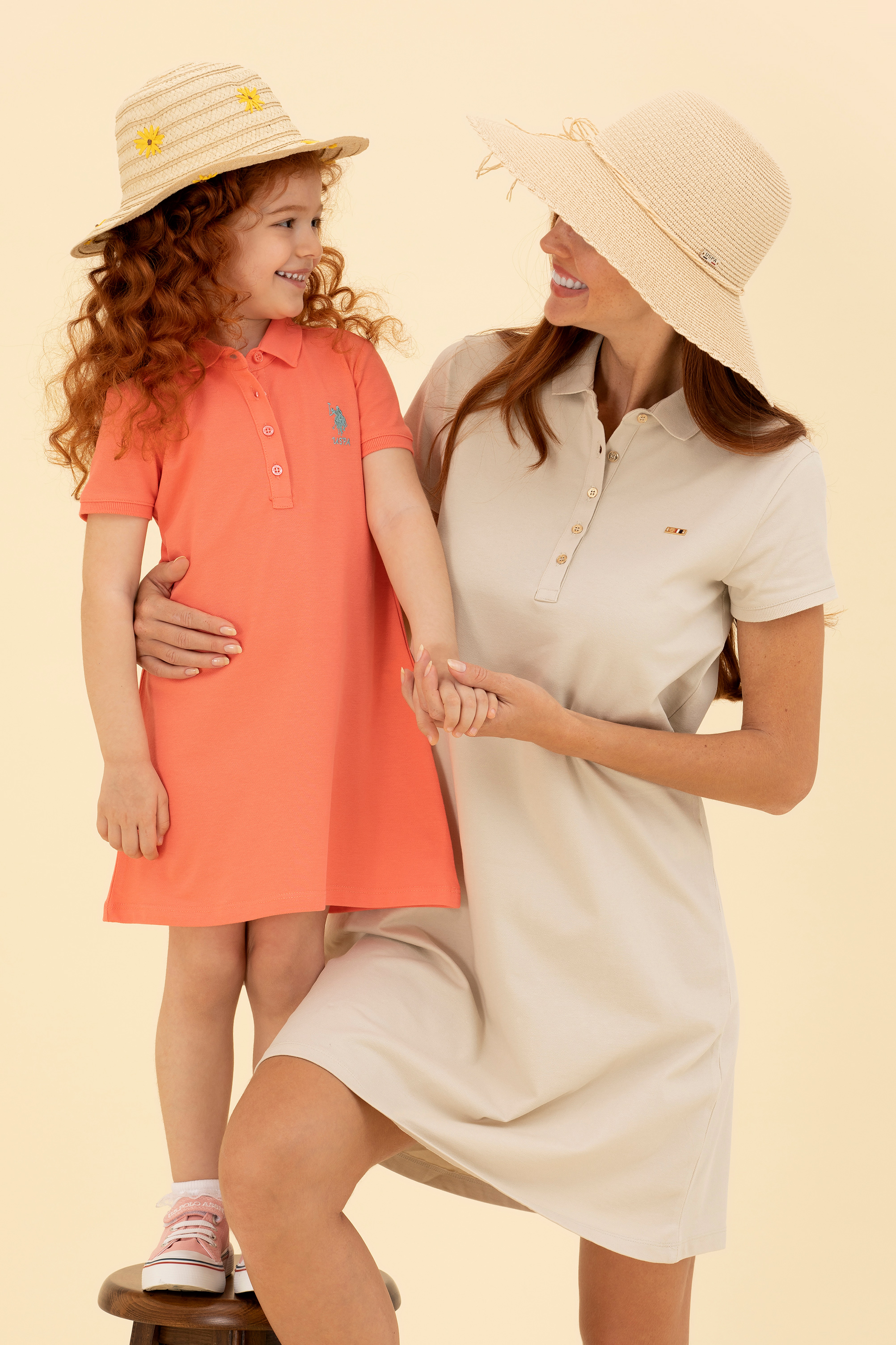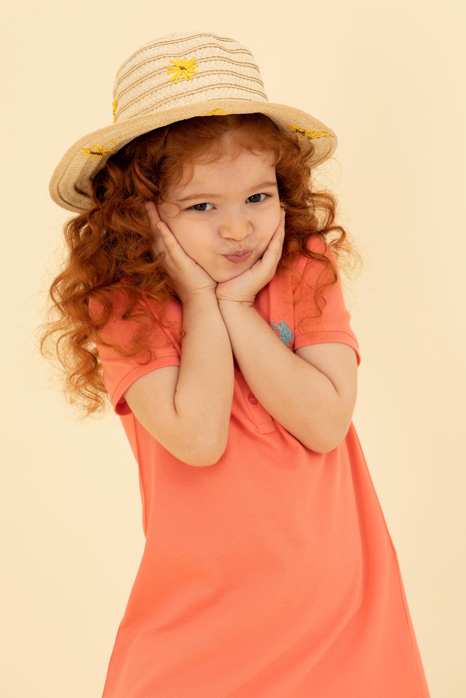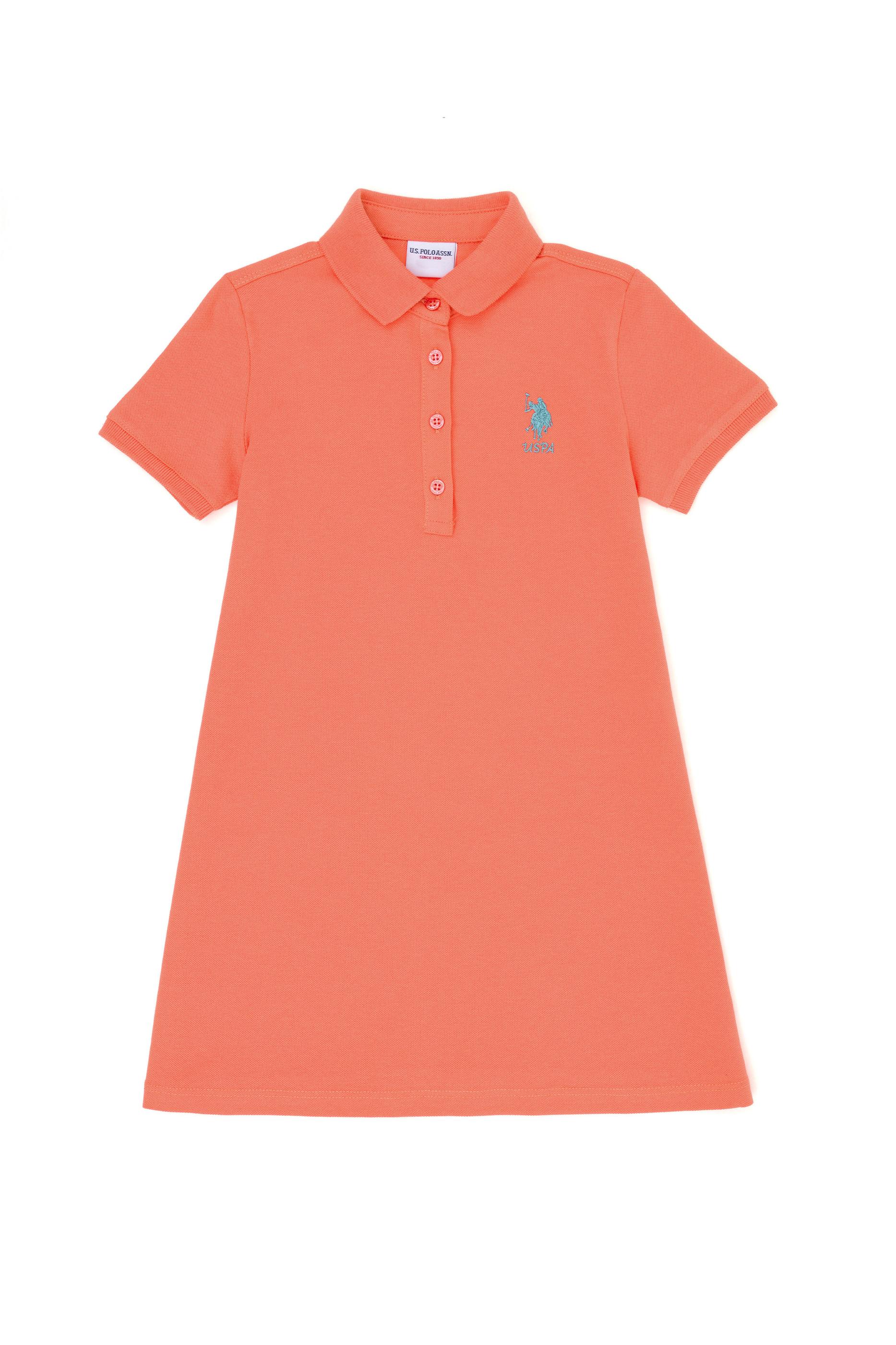 - Kız Çocuk Somon Polo Yaka Kısa Kol Örme Elbise