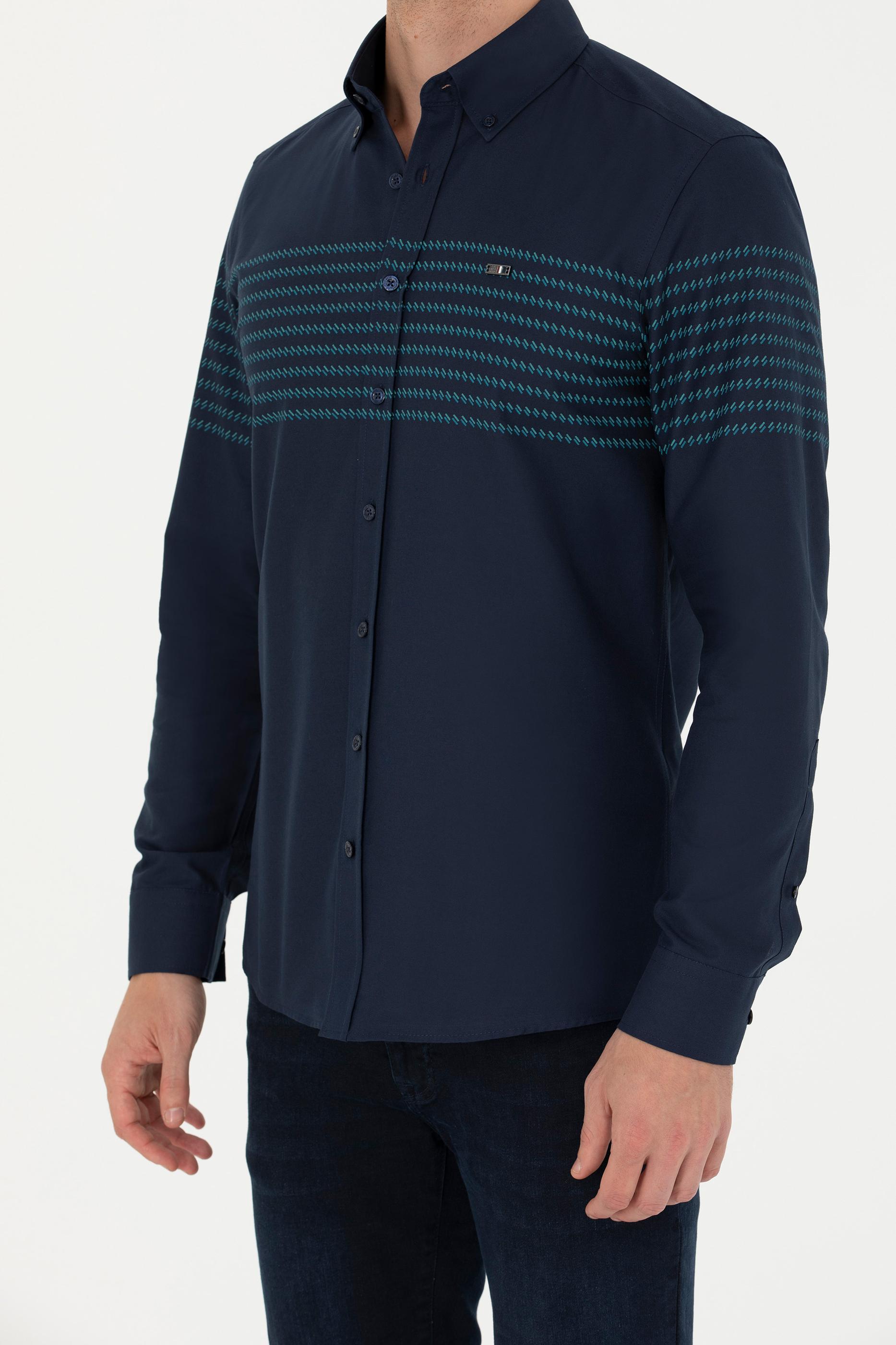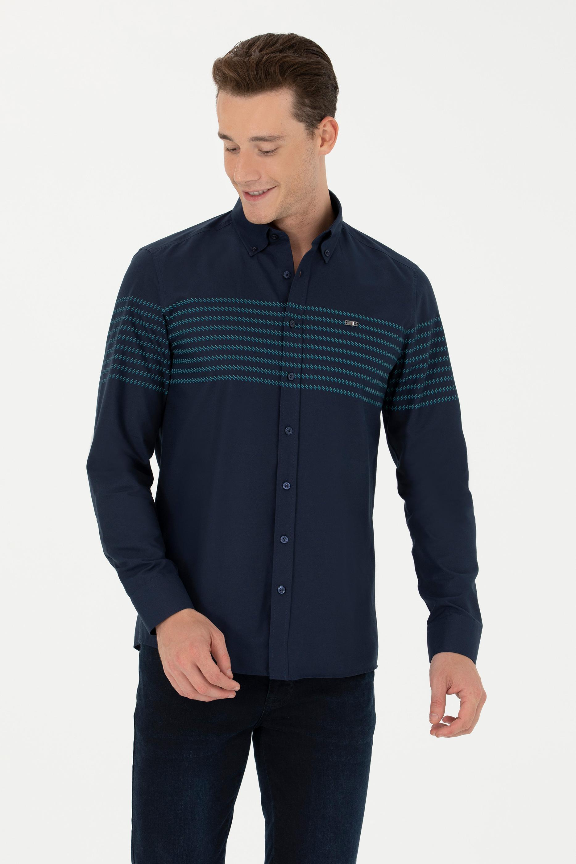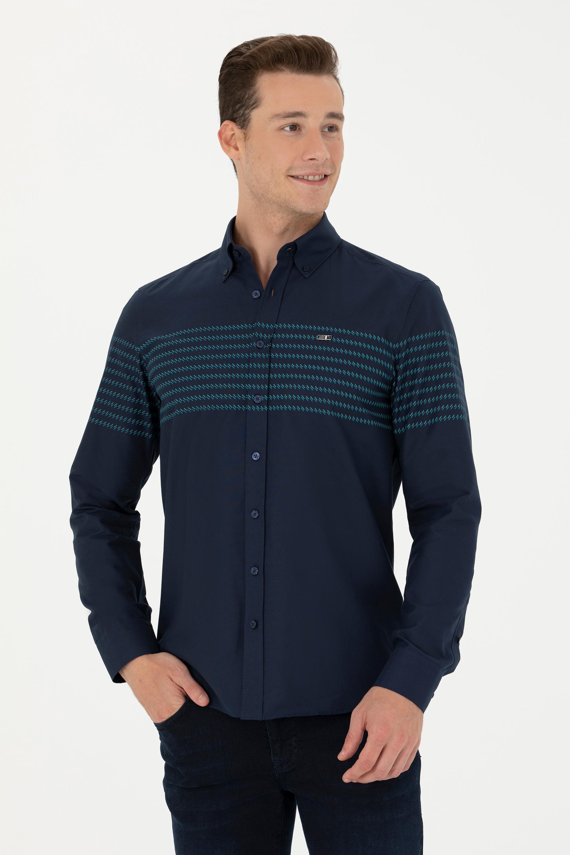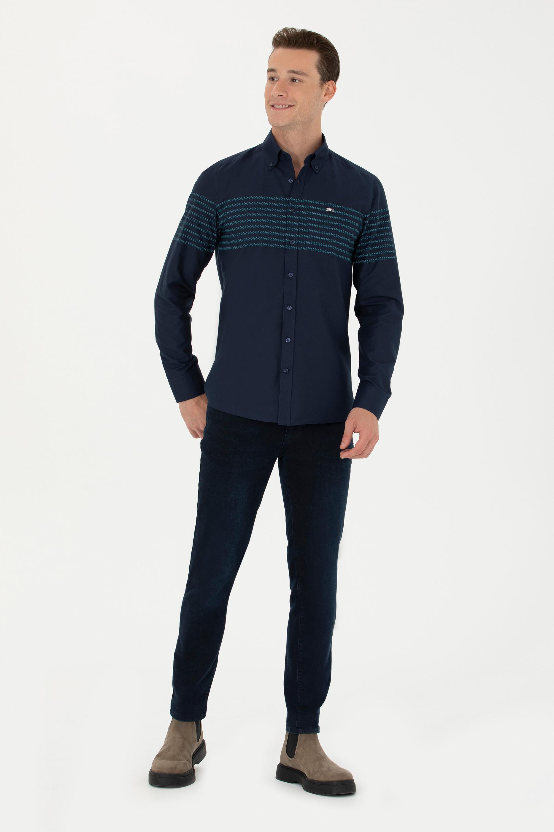 Erkek Lacivert Uzun Kollu Gömlek