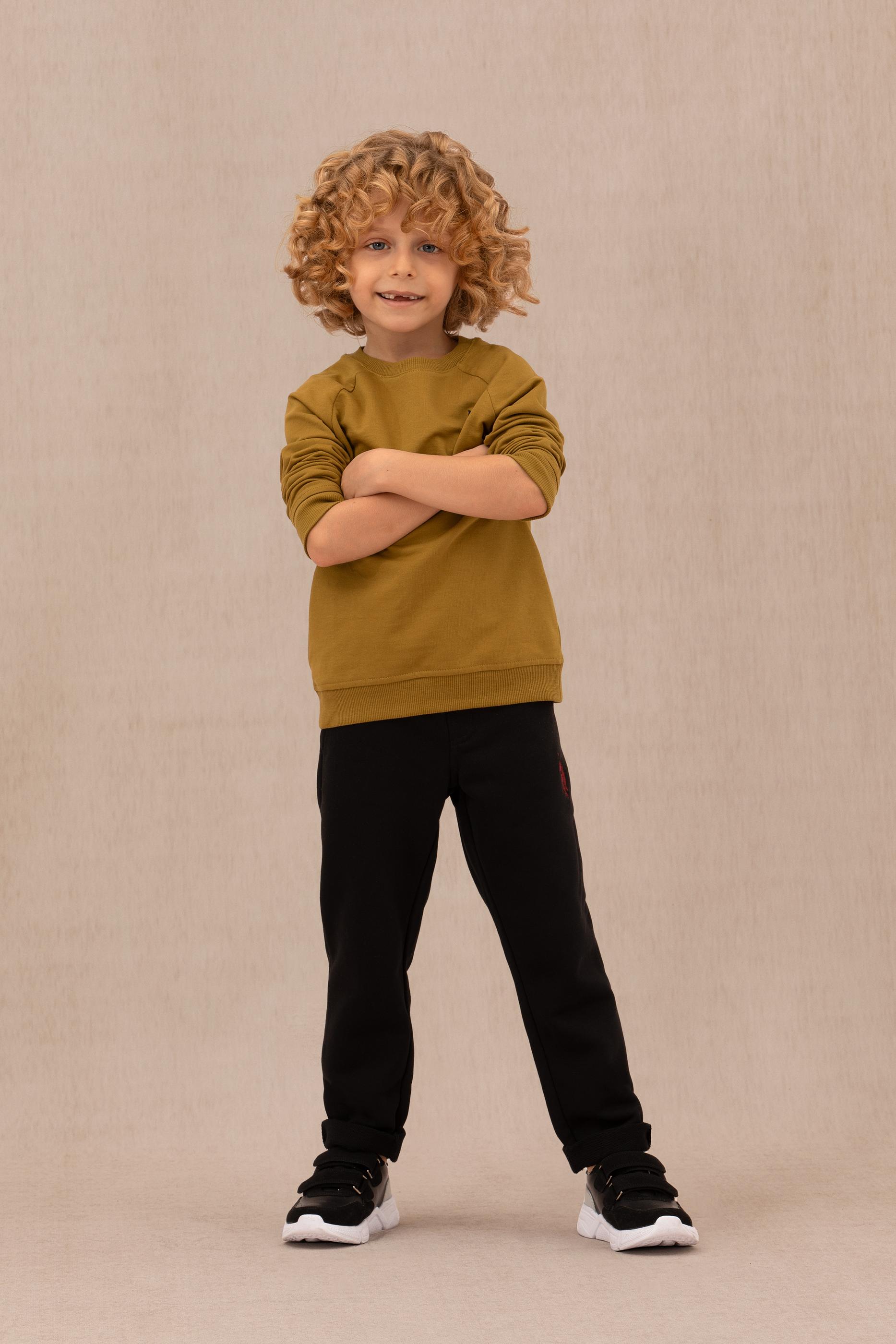 - Erkek Çocuk Açık Haki Basic Bisiklet Yaka Sweatshirt