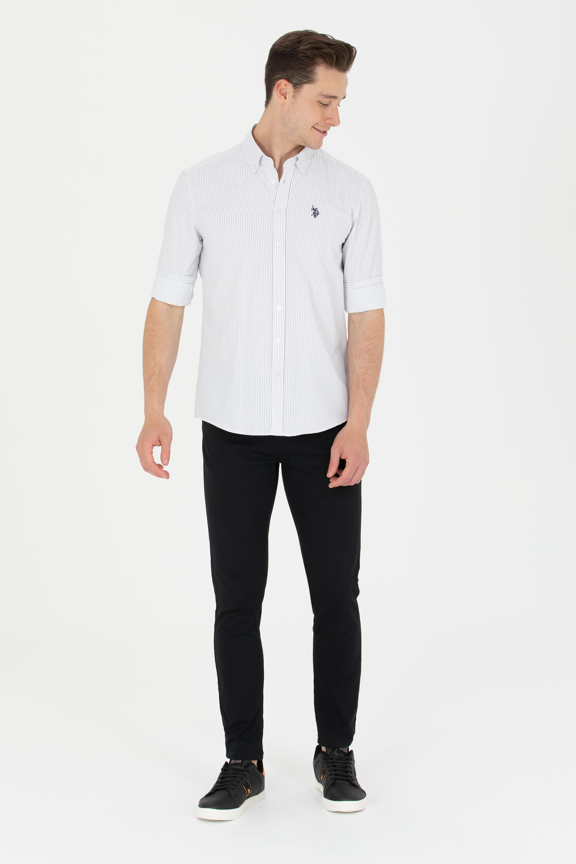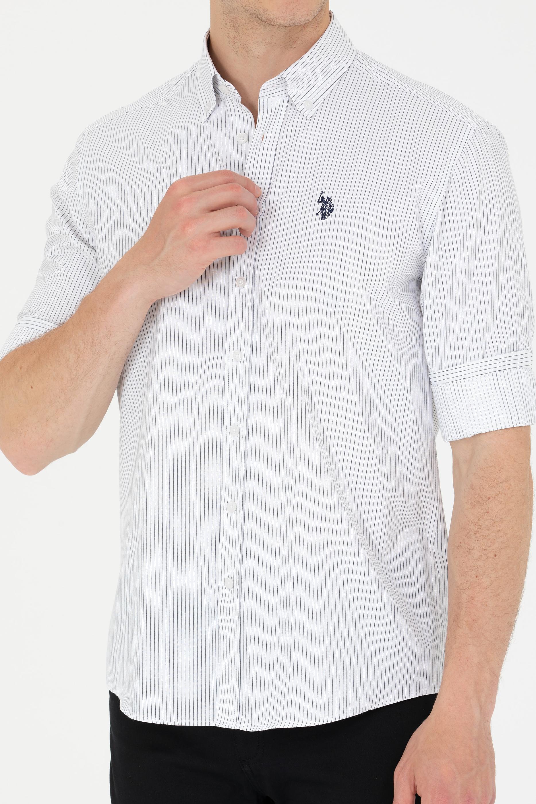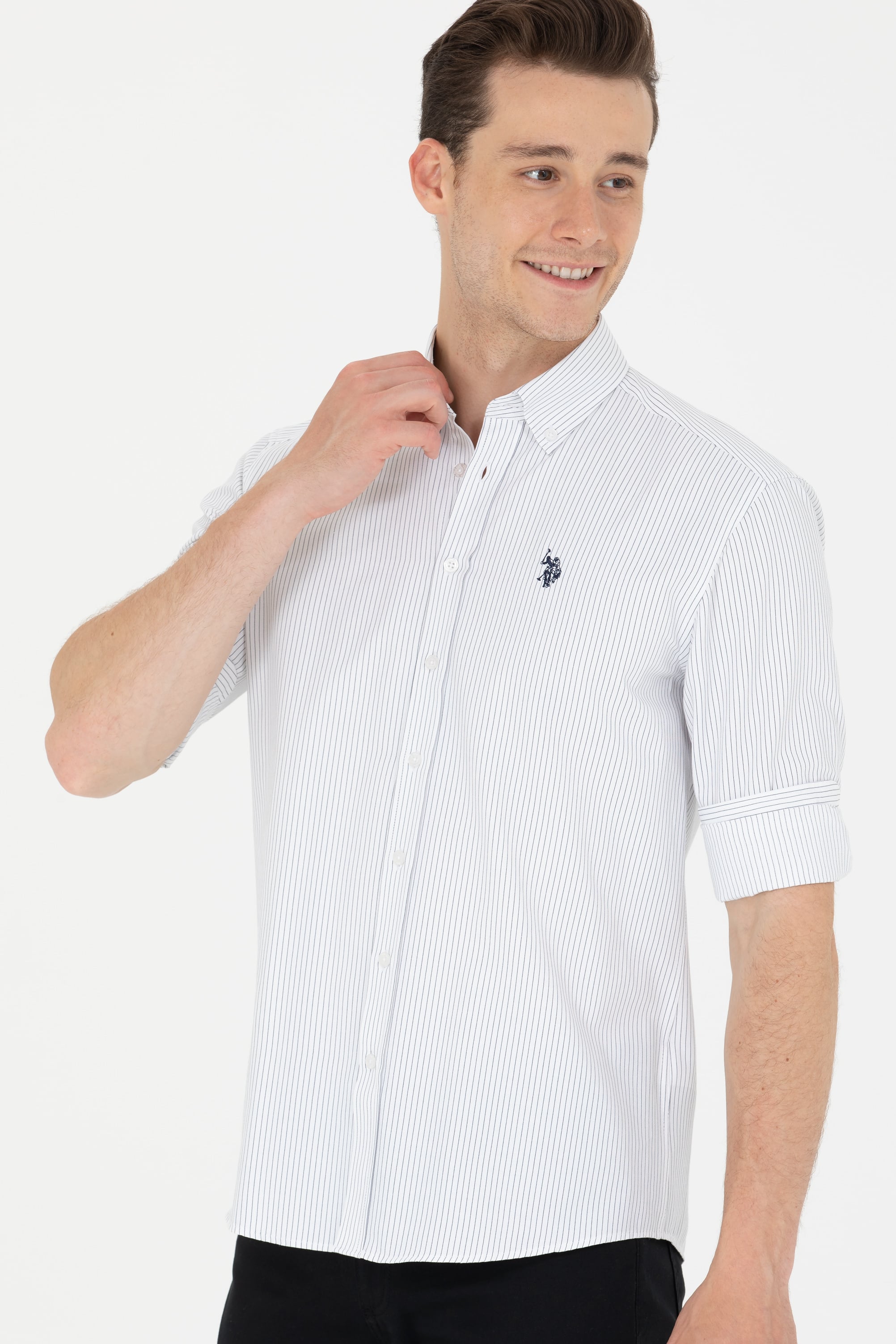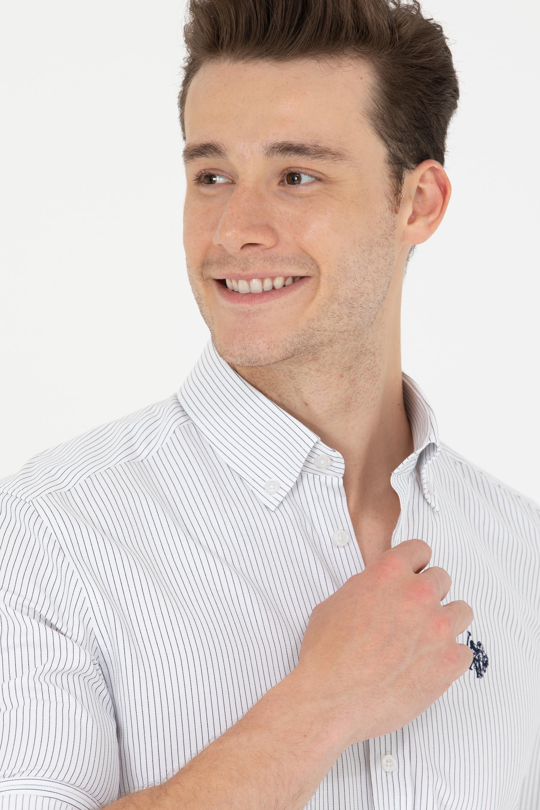 - Erkek Lacivert Çizgili Beyaz Gömlek